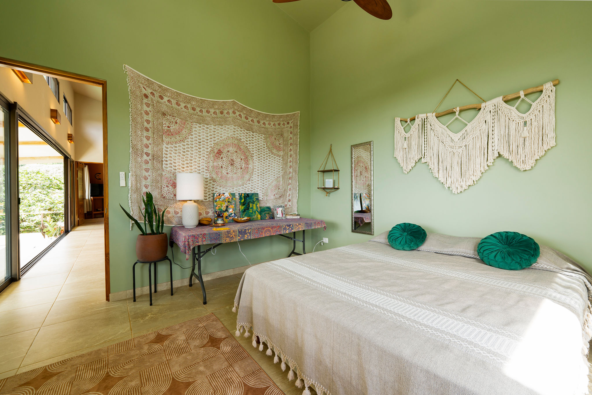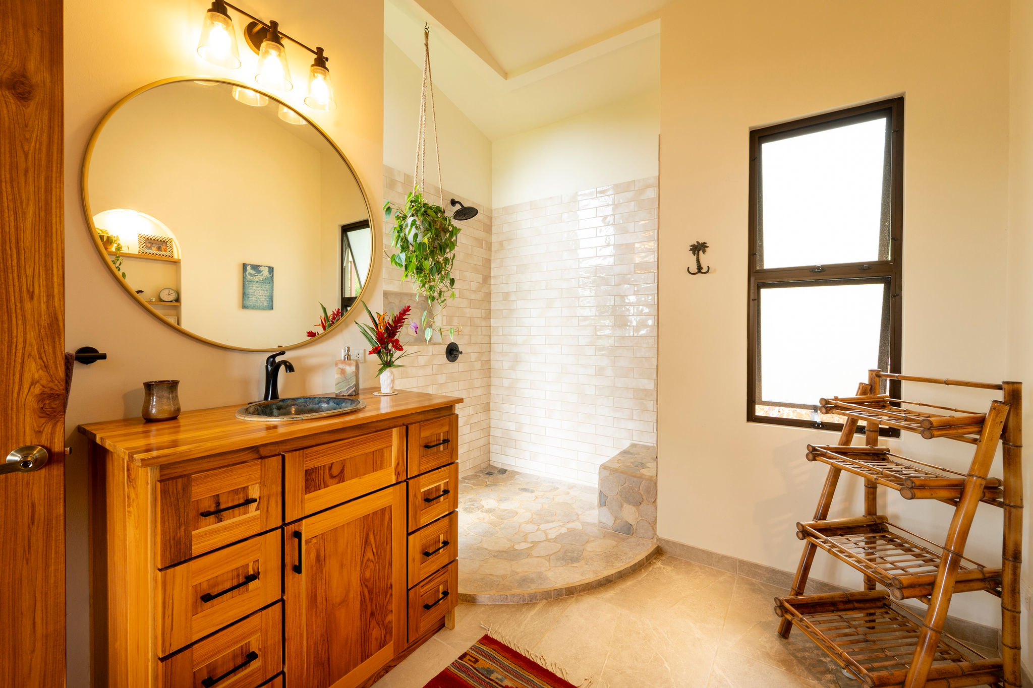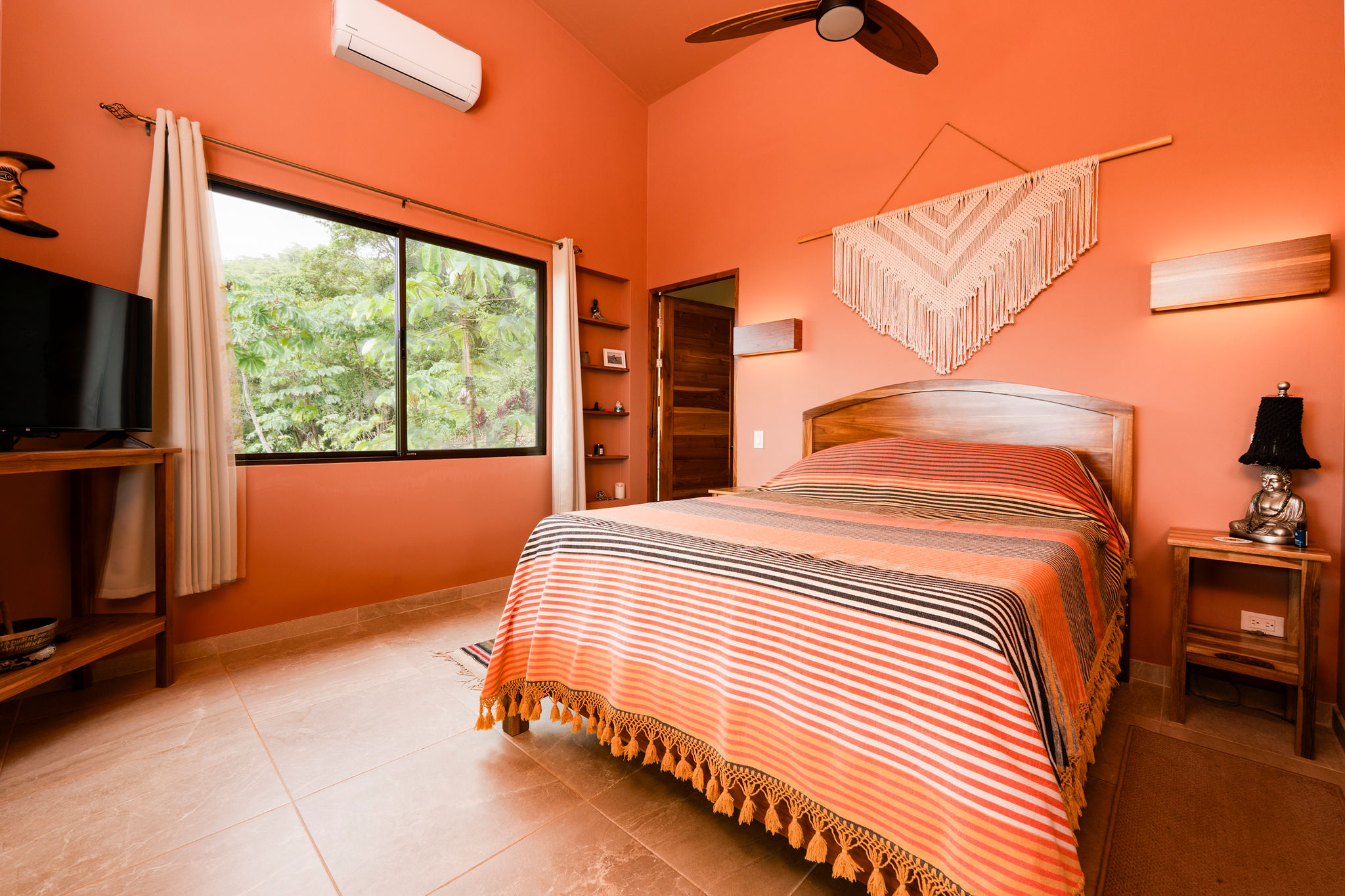 High-end finishes throughout the home with lots of creative artistic details. From Teak wood vanities in the bathrooms, handmade furniture and built in shelves, to mosaic tile inlay on terrace. The contemporary-modern design has a welcoming and open feeling while framing the view from every room. An immediate “wow-factor” as you enter the home looking out over the living room and view onto the pool area lets you know you are home every time you enter.