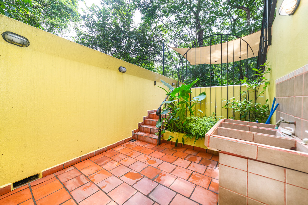 Entering through the metal gate, you’ll find ample space to comfortably park two vehicles, right in front of your plunge pool and outdoor shower. As you descend the steps, you’ll enter the covered, open-air kitchen, perfect for enjoying the outdoors while cooking. The downstairs bedroom features an en-suite bathroom and enough space to be adapted for future needs.