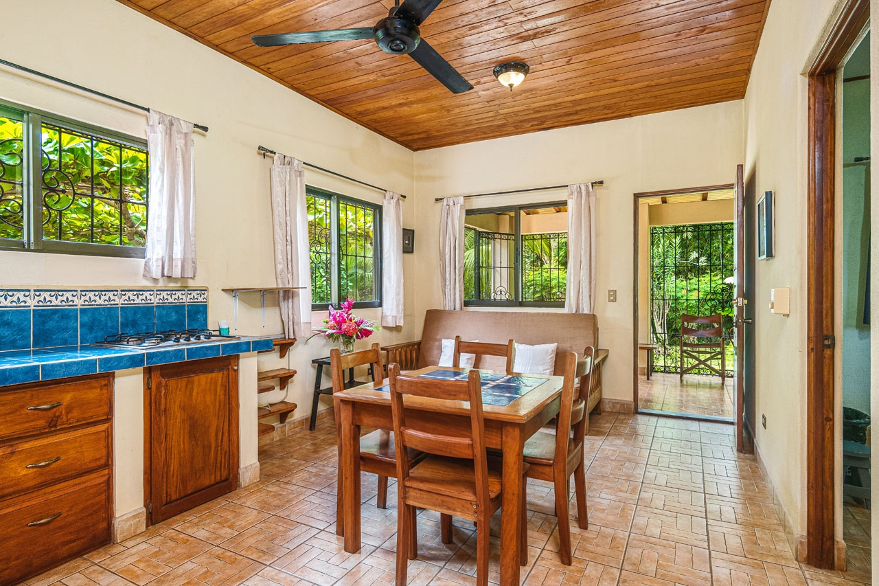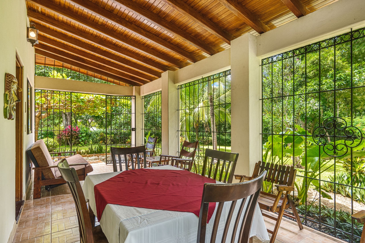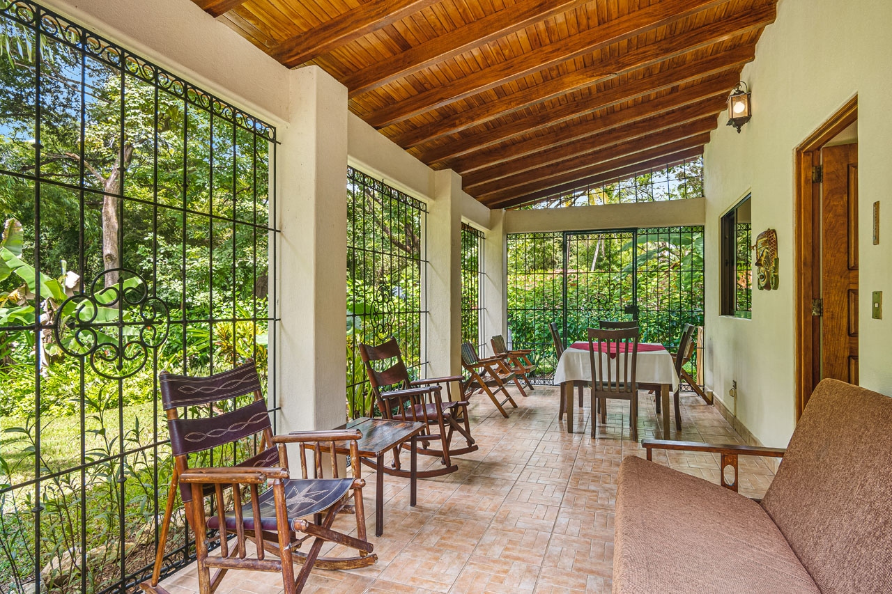 The home is simple and cozy, with an open design that allows for air flow when desired. It was built with solid concrete block construction, beautiful teak wood ceilings, tile floors and durable, high quality materials that stand the test of time. The tasteful iron work is a valuable feature and allows you to secure the home whenever you like. The property has established tropical gardens giving privacy to and beautiful views from your front terrace.