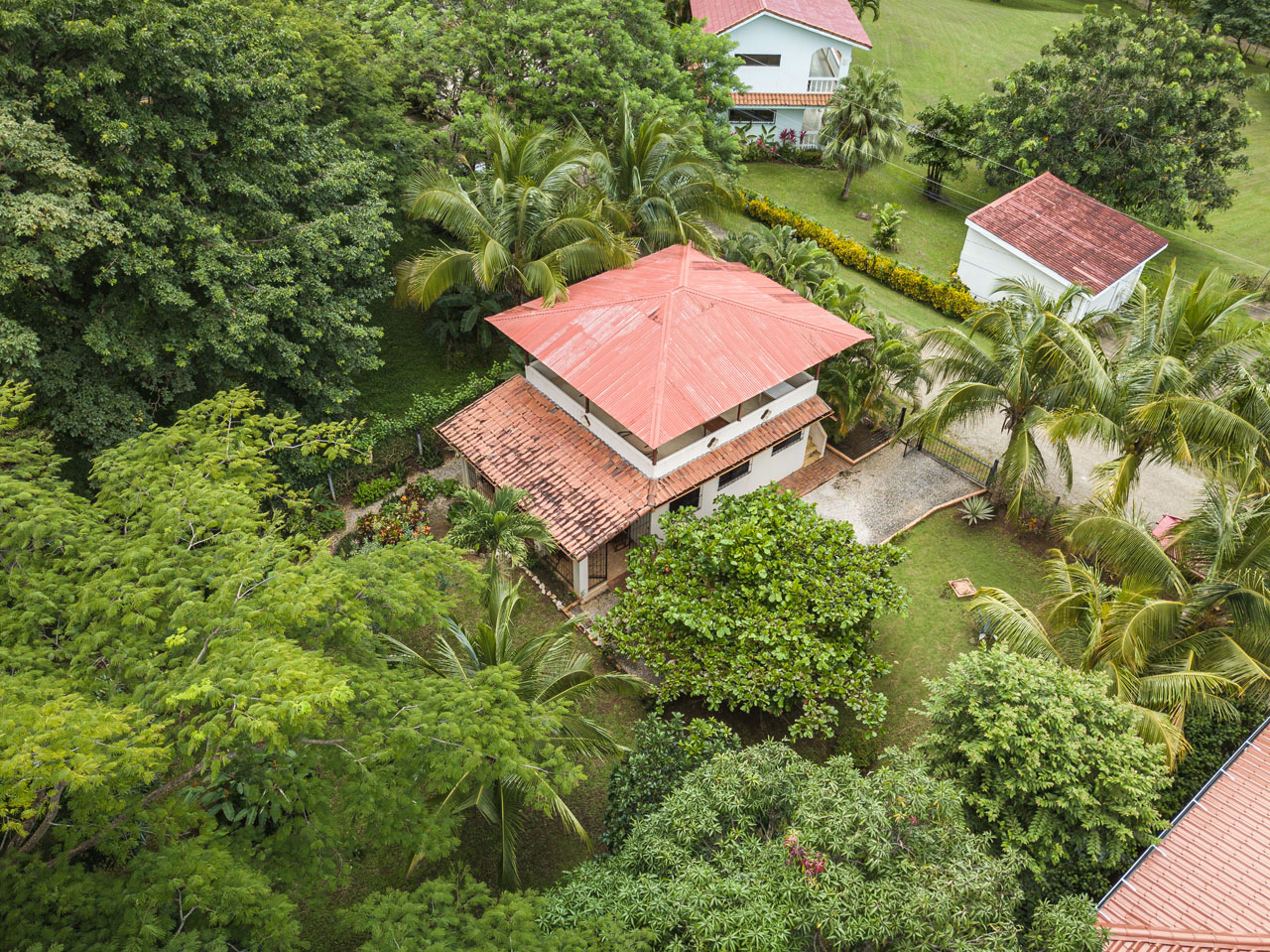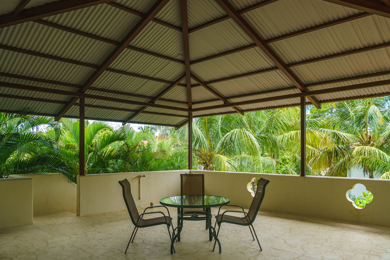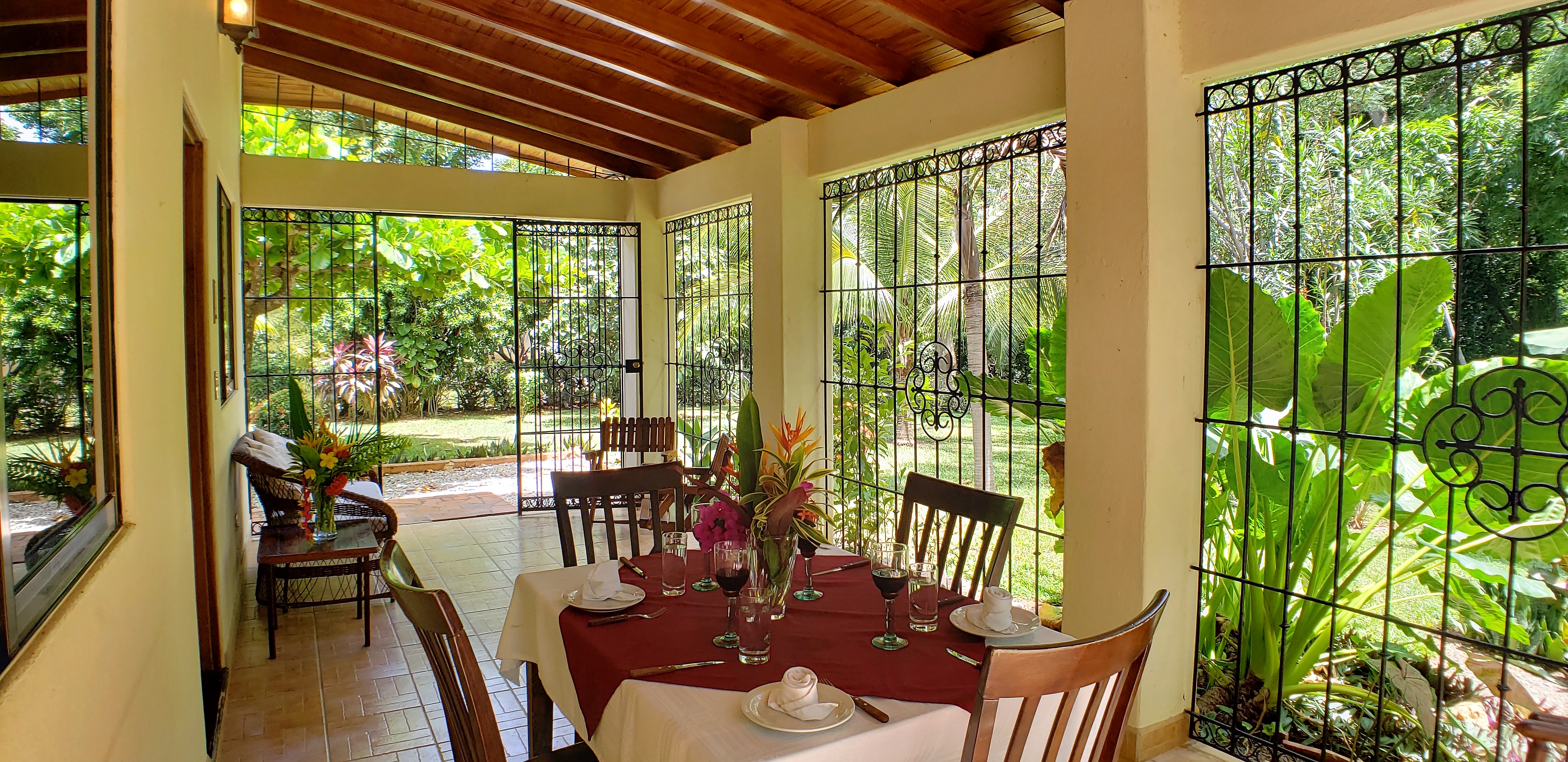 The home is simple and cozy, with an open design that allows for air flow when desired. It was built with solid concrete block construction, beautiful teak wood ceilings, tile floors and durable, high quality materials that stand the test of time. The tasteful iron work is a valuable feature and allows you to secure the home whenever you like. The property has established tropical gardens giving privacy to and beautiful views from your front terrace.