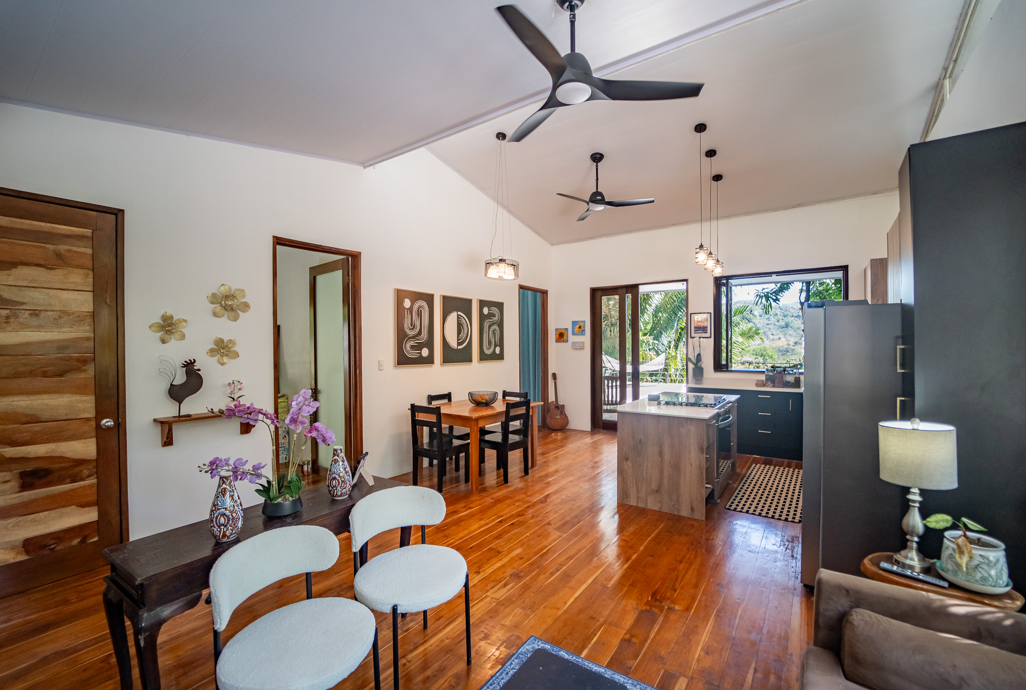Tucked away in the lush mountains above the Nicoya Peninsula and just 14 kms from Samara sits Monte Sereno, a tranquil and secure 2-bedroom, 2-bathroom retreat designed for those seeking privacy, connection to nature, and simple mountain living. This fully furnished 150m² home sits on a generous 5,700m² (1.41-acre) lot, blending comfort with stunning natural surroundings.