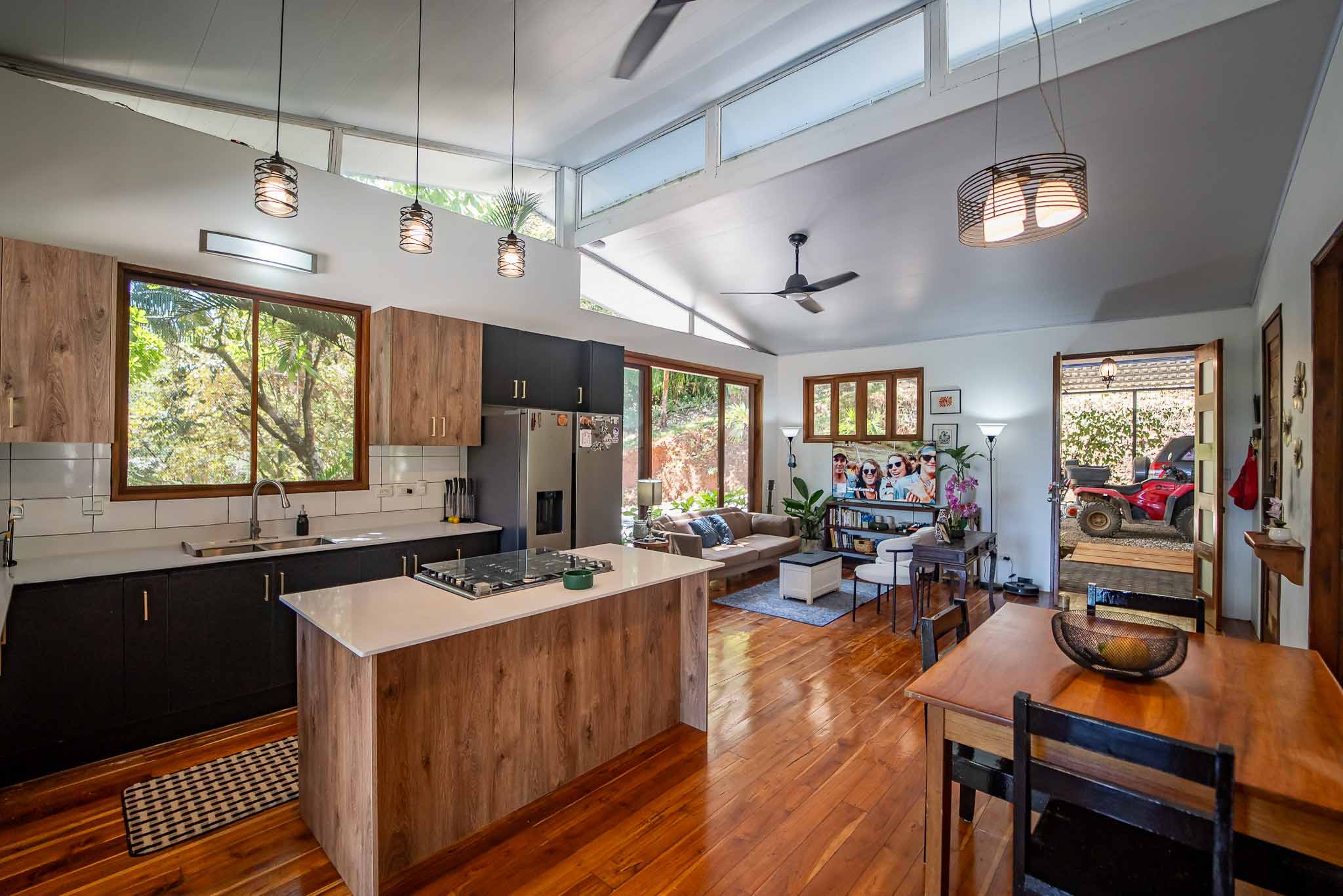 The open-concept layout features high ceilings and large windows that draw in light and frame mountain and jungle views from nearly every room. Enjoy the peace of mind that comes with a well-built 2015 home, featuring modern appliances, high-speed internet, and ample space to expand or garden. Whether you're sipping coffee on the patio at sunrise, enjoying the view, or stargazing under a clear night sky, Monte Sereno offers a daily reminder to slow down and breathe.