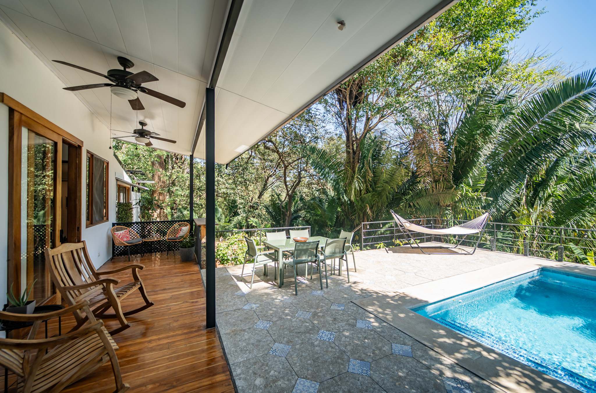 Highlights: • 2 bedrooms, 2 full bathrooms • 150m² (1,615 ft²) of living space • 5,700m² (1.41 acres) titled land • Stunning jungle and mountain views • Furnished and move-in ready • Salt water pool, internet, appliances included • Ample parking and privacy