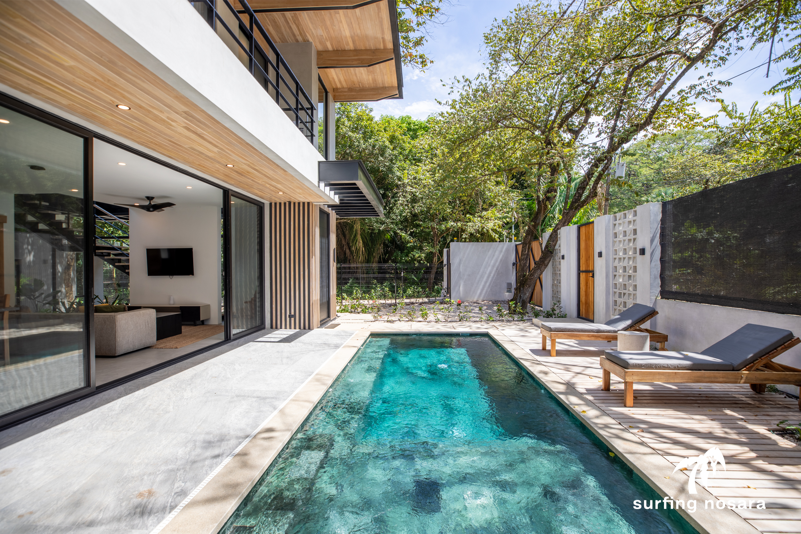 This beautifully new developed home Casa Malandra ,constructed in 2023 is located in the north of Guiones. This home features two bedrooms, 2,5 bathrooms, laundry room,powder room and additionally fully furnished. In addition, a private pool, and patio with a outdoor dining table and bbq ready to enjoy the beautiful surroundings. Situated just a five minute walk from the heart of Guiones where a variety of restaurants, shops, cafes and boutiques are to offer. A short 8 minute walk to the shores of playa Guiones, where this property offers both convenience and lifestyle
