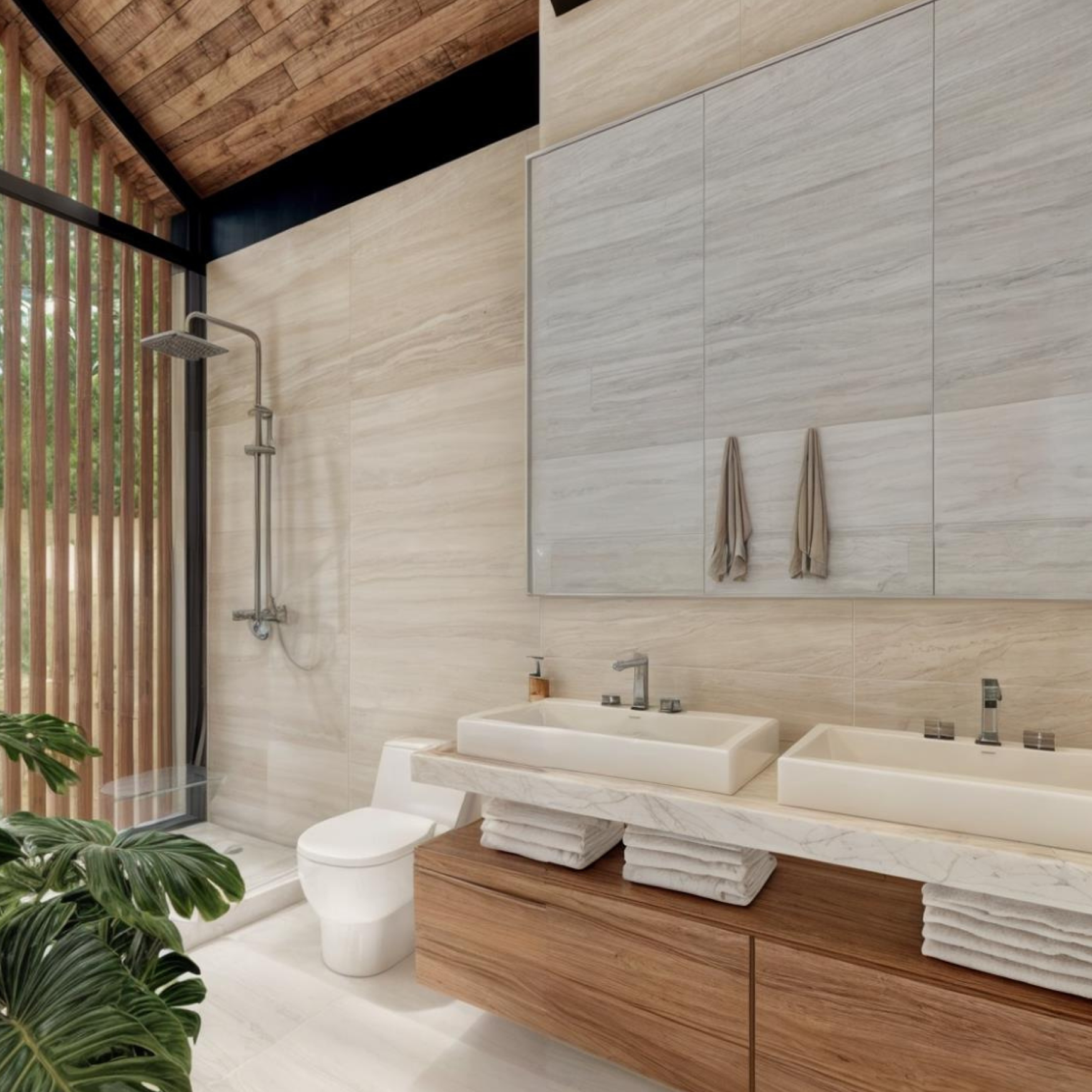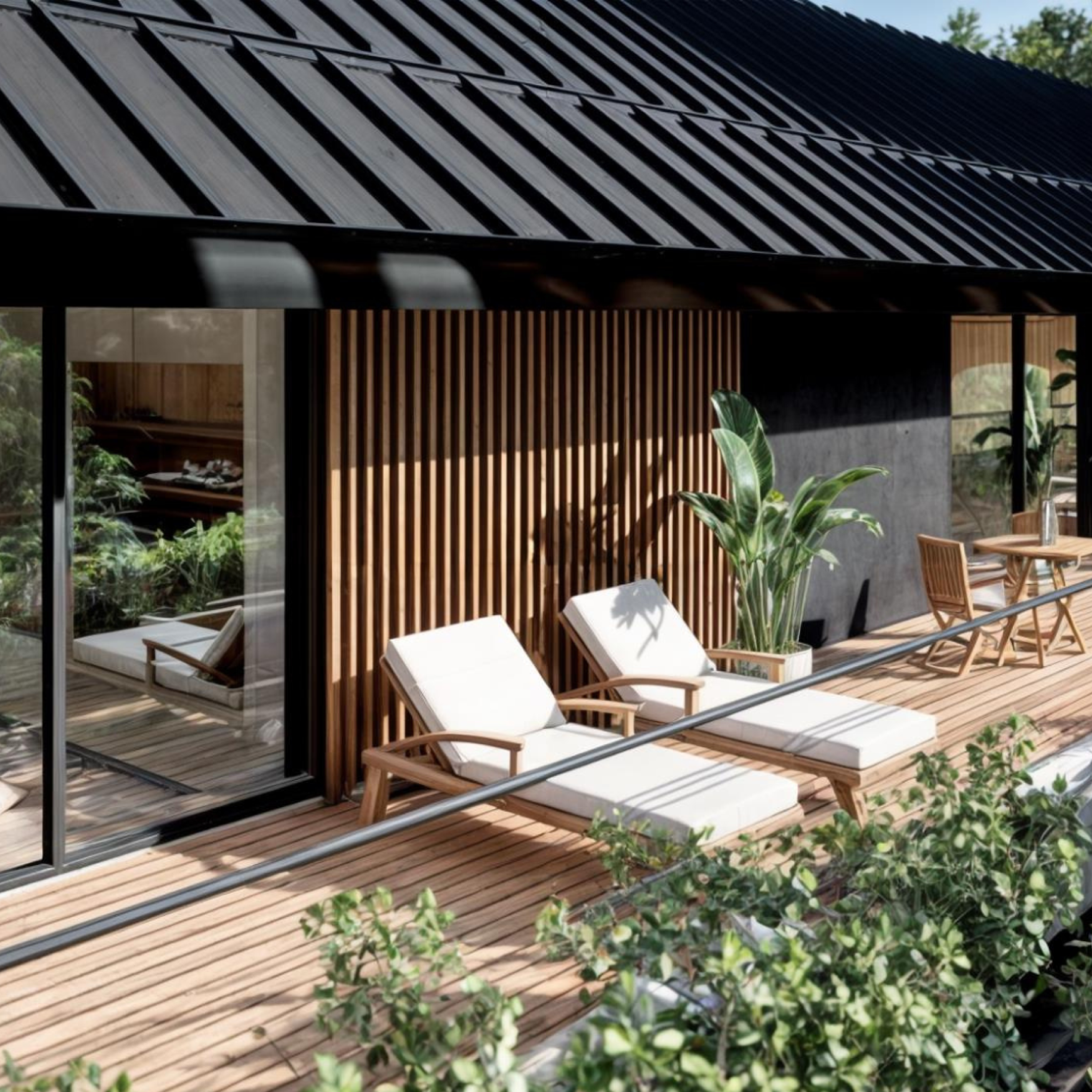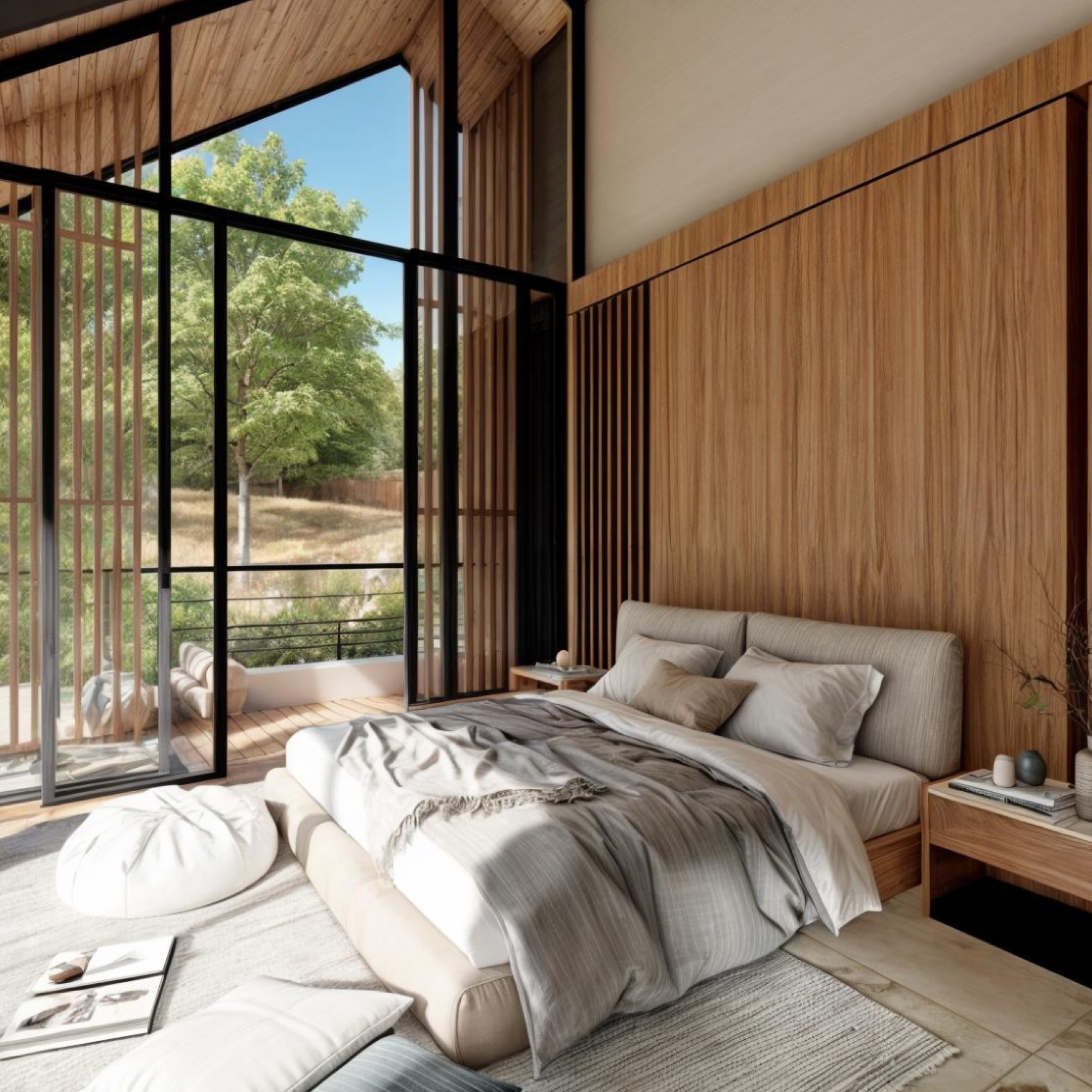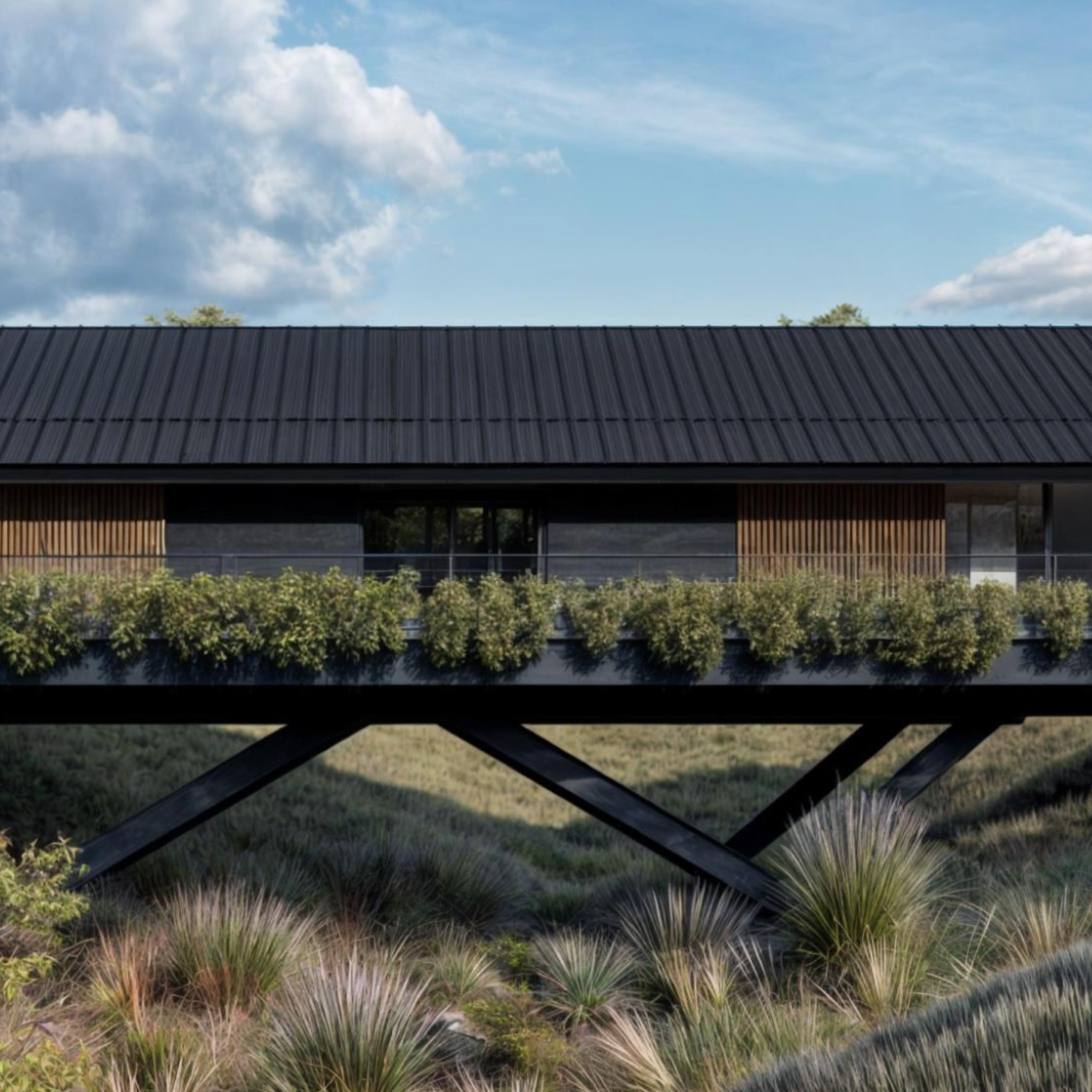 • Includes solar panels and battery systems for energy efficiency. • Rainwater Management: The sloped roof and landscaping efficiently direct rainwater to reduce soil erosion and support local biodiversity. • Minimal Land Disruption: Construction and site planning prioritize the preservation of existing flora and fauna. • Optimized Natural Lighting: Floor-to-ceiling windows and open layouts reduce the need for artificial lighting during the day. • Durable Finishes: Use of high-quality, long-lasting materials such as porcelain tile and teak wood, ensuring longevity and reducing waste. • Thermal Comfort: Designed for the tropical climate with materials and architectural solutions that naturally moderate interior temperatures. • Passive Cooling Design: Strategically positioned to leverage natural airflow and cross-ventilation, minimizing the need for artificial cooling systems. • Movable Architectural Elements: Adaptable walls allow control over natural light, shade, and airflow to enhance energy efficiency. • Elevated Structure: Designed on a raised platform to adapt to the site’s terrain while protecting the natural ecosystem beneath. • Energy Efficiency: The home’s layout and design reduce reliance on energy-intensive systems, supporting a lower carbon footprint. • Sustainable Materials: Utilization of natural and locally sourced materials such as teak wood and stone, reducing transportation emissions.