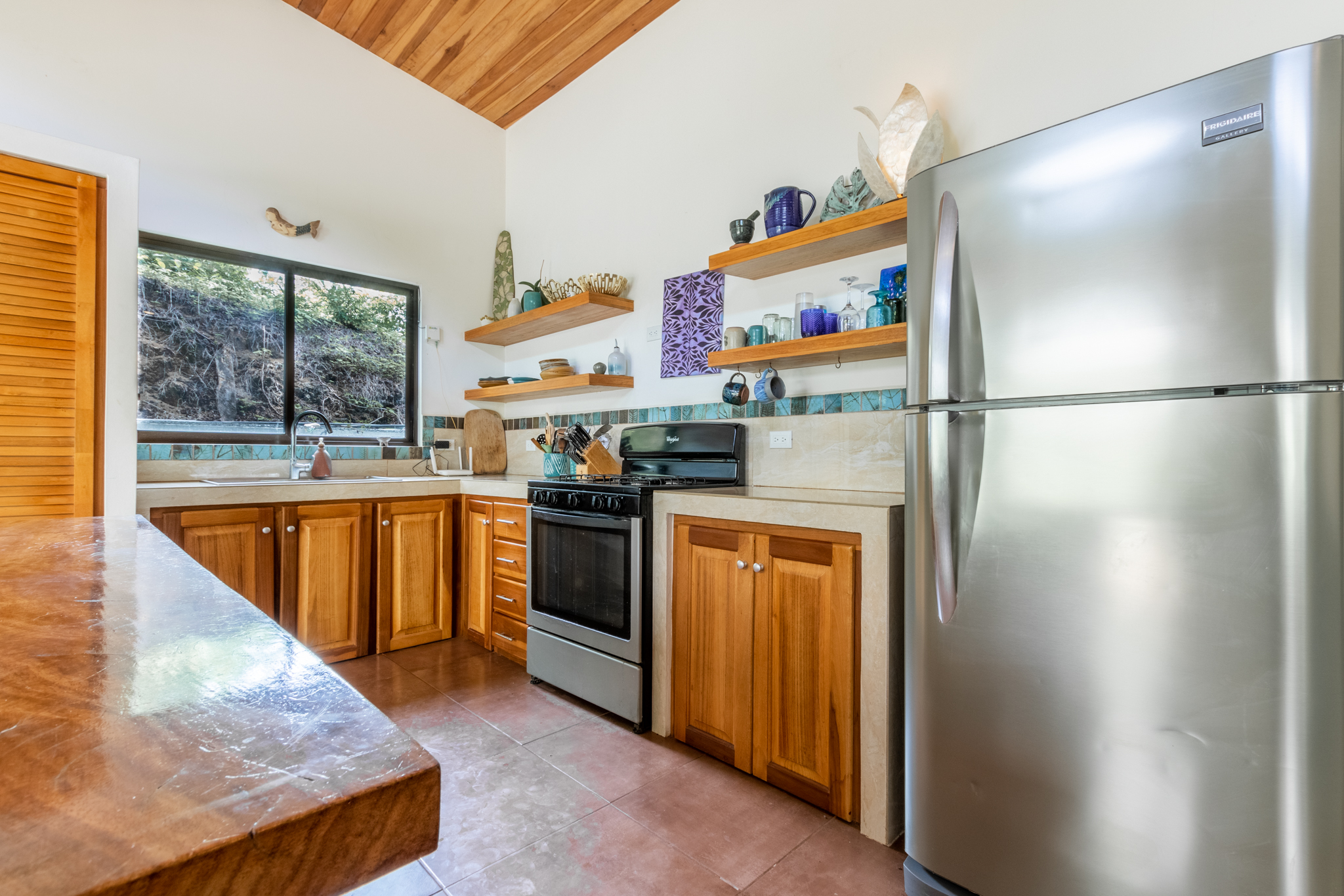 Selva Verde has a gated entry with a long driveway through the front pasture area. As you enter you are greeted with a large Banana crop to the left just before heading to the hilltop with a 2 bedroom home overlooking the property. The home is constructed of all concrete and was built in 2019 by the owner. All public services are available. For more information about this spectacular property contact Brian@surfingnosara.com or come by our office located in Down Town Playa Guiones next to Banco Popular and Olo Alaia Surf & Brew!