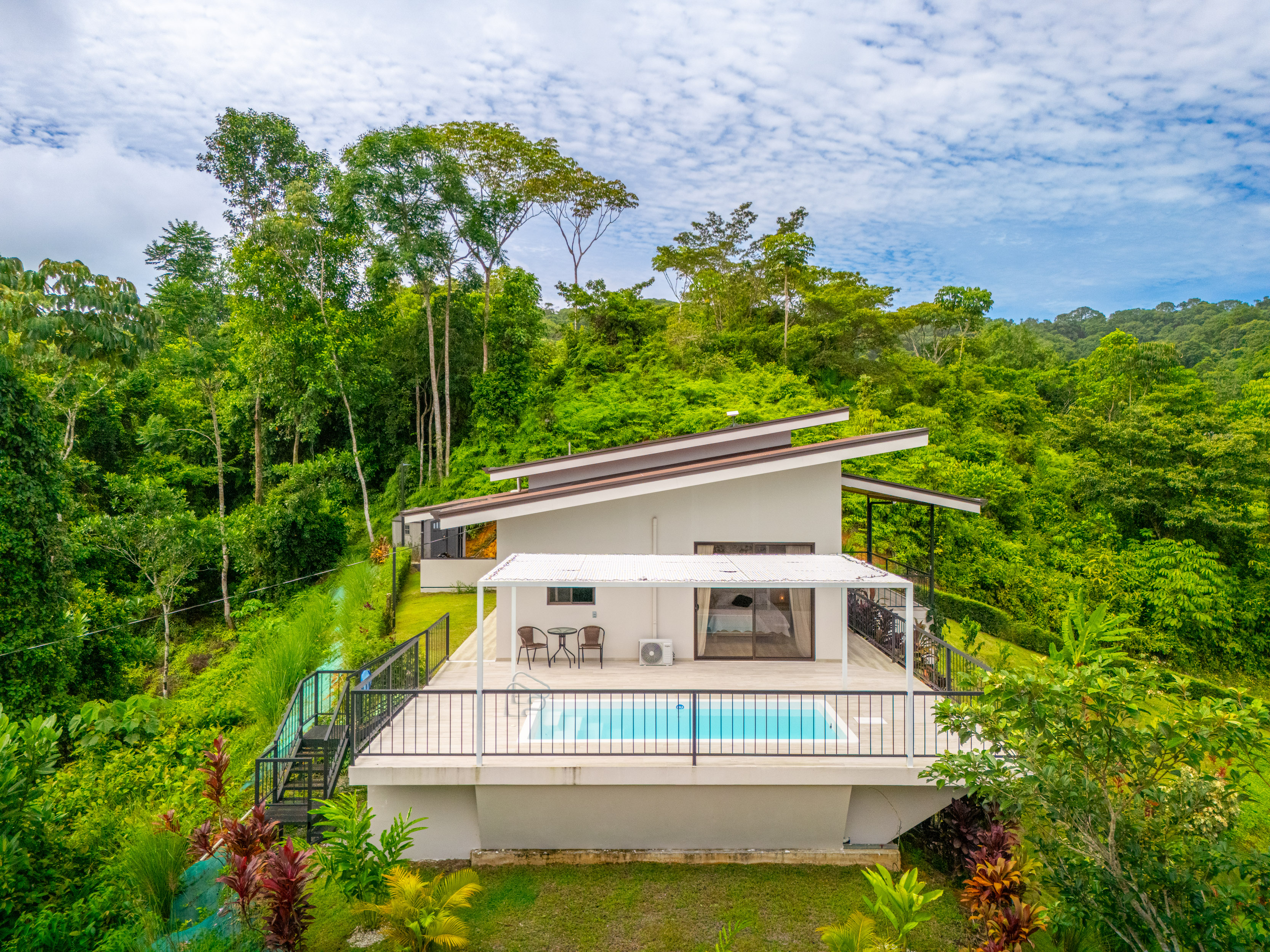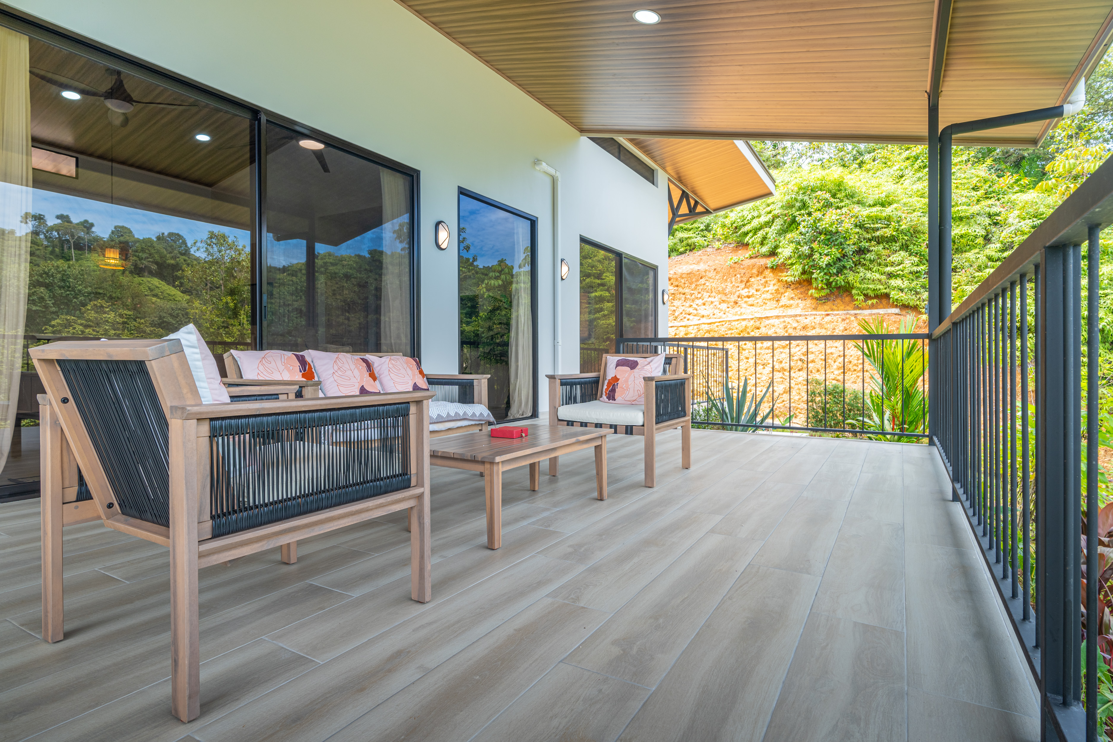 Expansive Covered Deck: Ideal for dining, lounging, and soaking in panoramic jungle and mountain views.