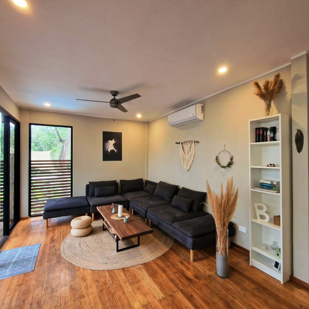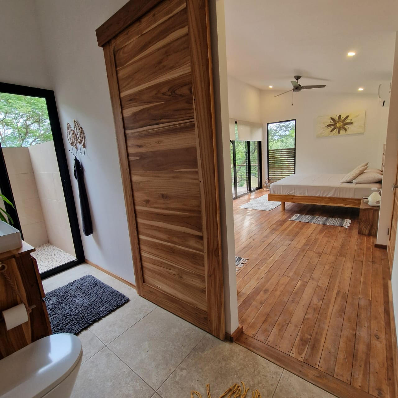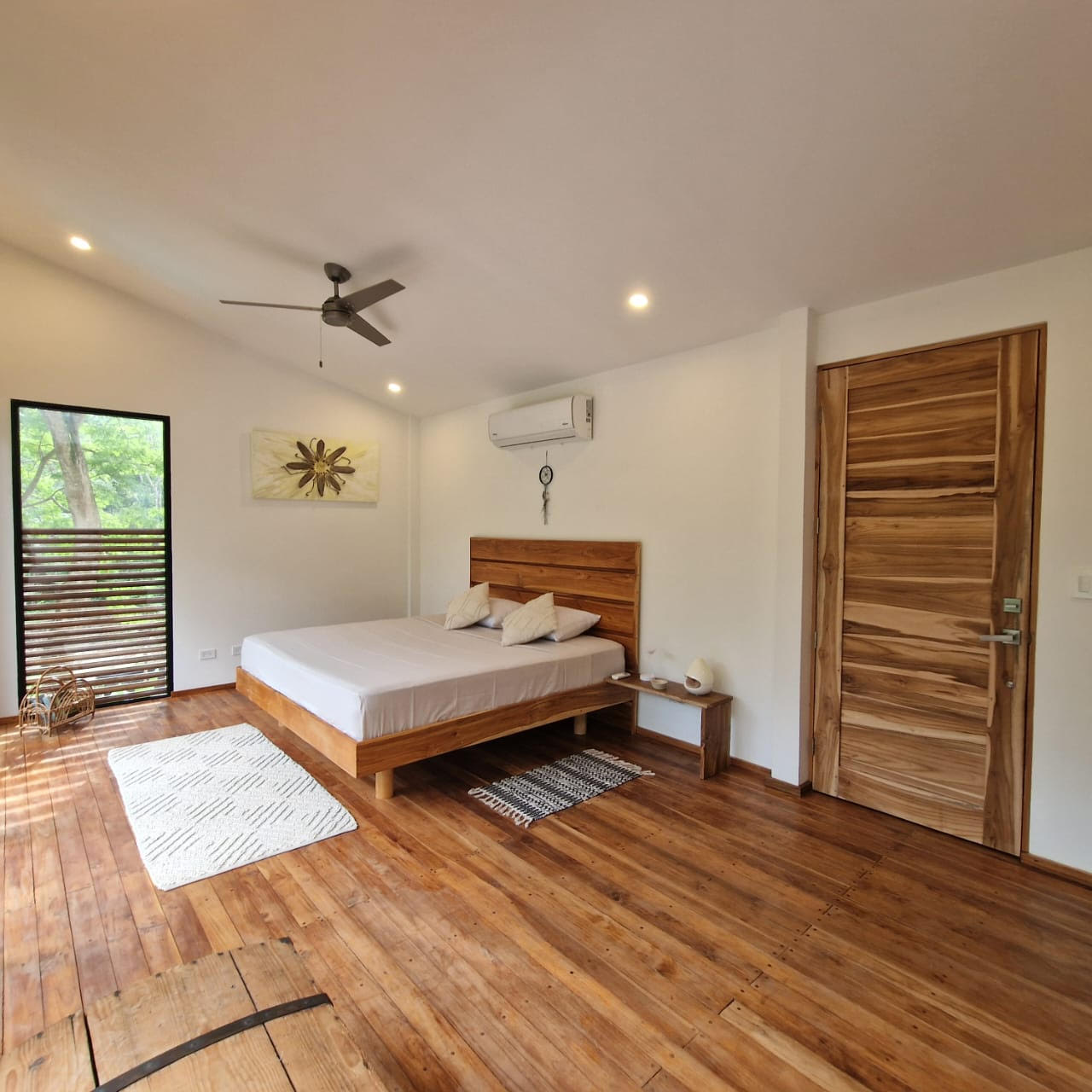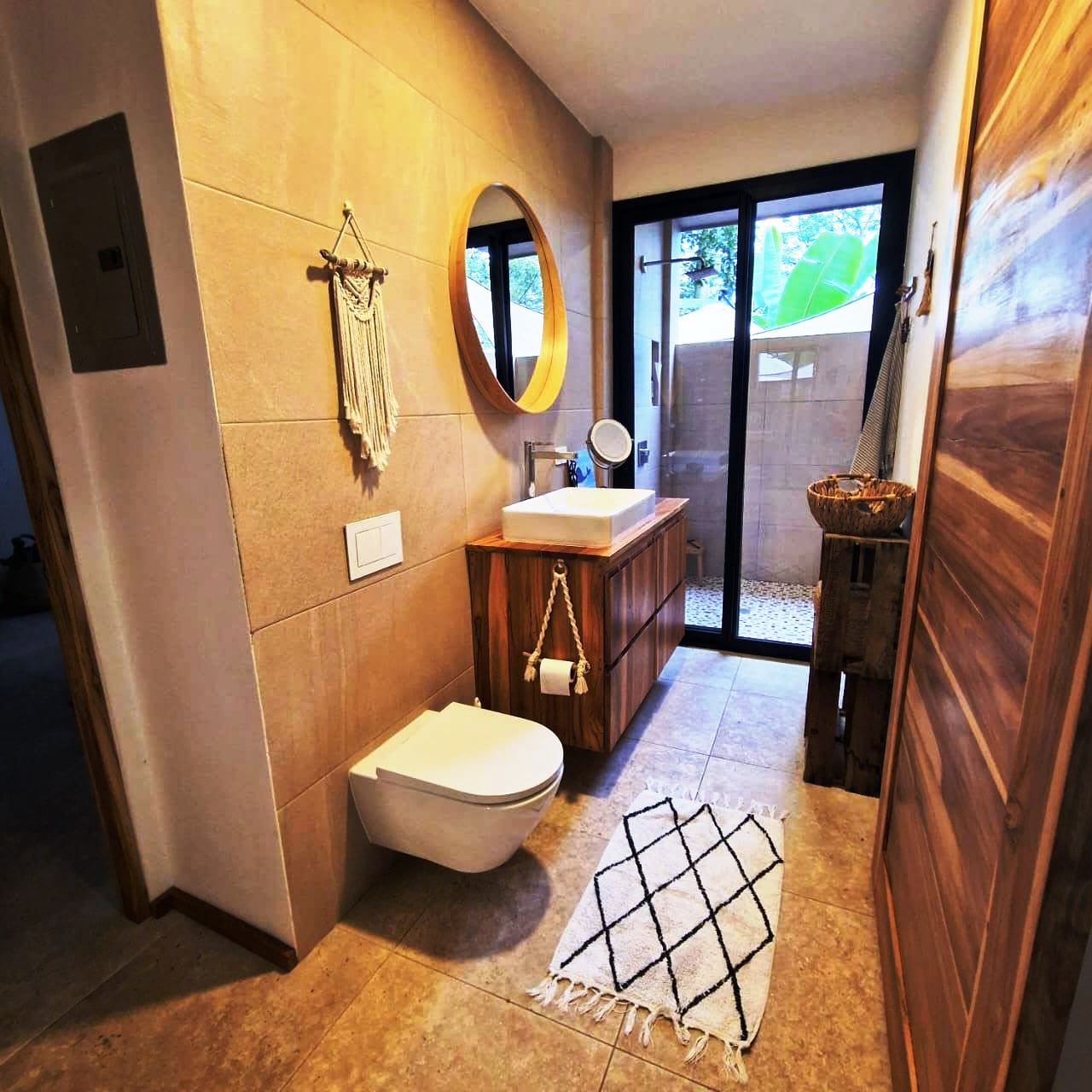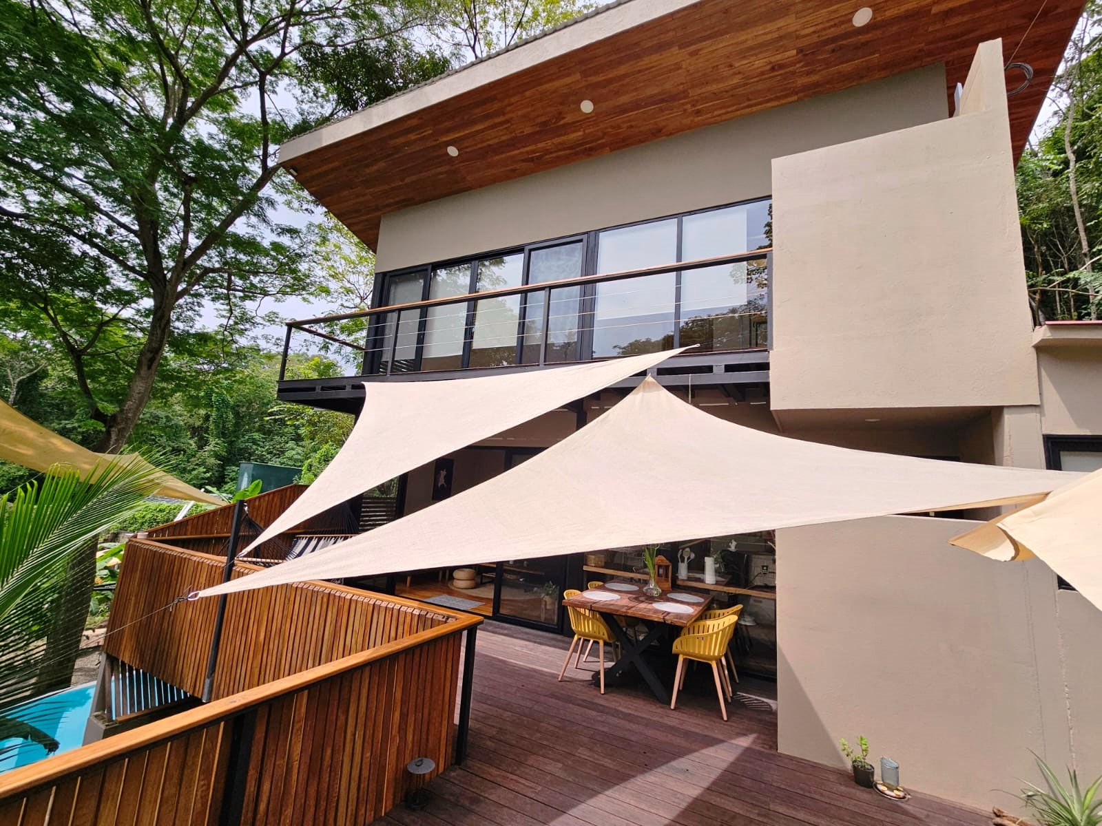 . A New Home in a New Beachside Community – Best of Tropical Living! Recently completed, this home is located in the newly established beach-side community of Playa Organos. This creative 3-level home offers the the best in tropical coastal living. Not only can you walk to the uncrowded, sandy beach but you are also surrounded by hundreds of acres of undeveloped forest land, home to parrots, monkeys, coatis, squirrels and dozens of other typs of birds. The home itself is designed for spacious socializing while maintaining the privacy and intimacy of a personal home. The first level has a small pool on a large deck and a kitchen area to provide for the poolside guests. On the second level there is another large deck with shading leading into the living room kitchen area. Also on this level, there is a large bedroom and bath. The stairs lead up to the 3rd level and the spacious bedroom and private deck. On the deck you have the views of the surrounding forests leading down to the nearby beach. Enjoy the jacuzzi on this deck, just off the bedroom. The custom bathroom adjoining this bedroom is complete with an outdoor open-to-the-sky, shower. A comfortable home while providing a variety of social options for entertaining or complete privacy. The Playa Organos beach is over a kilometer long and protected from large surf by the nearby Isla Tortuga islands. Swim in the 82-degree water, body surf or take a ride to the white sands of nearby Isla Tortuga. Just a few miles down the coast is the National Reserve of Curu with paths, tours and great opportunity to take pictures of the domesticated monkeys and deer there. A ten-minute drive from this home you will arrive in the small town of Paquera. Small, but complete with supermarkets, restaurants, hotels, a 24/7 hospital, hardware stores, a gas station and much more. Crime is almost non exixtent here and the local people are said to be the friendliest in Costa Rica.