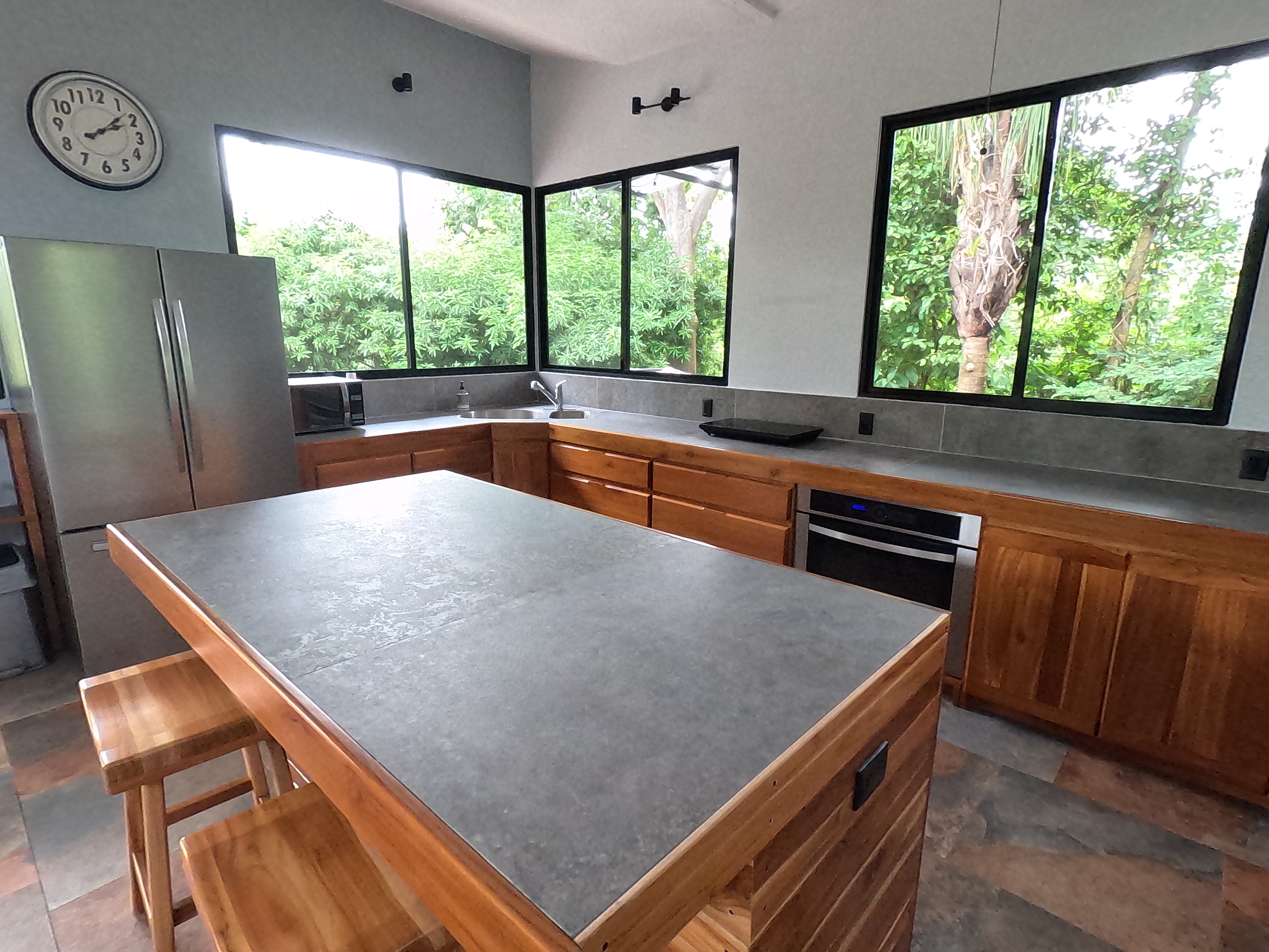This lower level also has a large living room and beautiful teak wood terraces all around with an outdoor kitchen and grill area on one side and beautiful nature observation area on the other, along with a chicken coop for daily fresh eggs! You will delight in watching two species of monkeys frolic nearby, majestic scarlet macaws, toucans, hummingbirds and all sorts of tropical birds and butterflies!