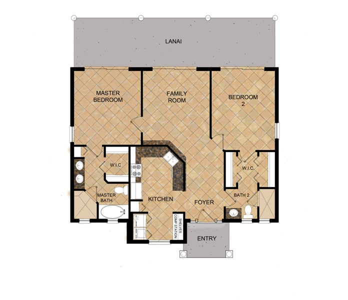 This semi-custom 2 bedroom, 2 bath homes has a great-room, gourmet kitchen and large covered patios, as well as two master suites, and a kitchen, laundry area and built in computer station. The standard finishes include, stainless steel kitchen appliances, granite counter tops, custom hardwood cabinets, ceramic tile, vinyl clad windows, and kiln dried doors. The home will be concrete block construction with a stucco exterior including stone accent, and a Spanish tile roof. The construction time on this home is under 6 months and can be built on the lot of your choice. Price includes all plans, permits and engineering. The price includes a lot allowance of $49,500 and for an additional $20,000 you can add a basic landscape and pool package.