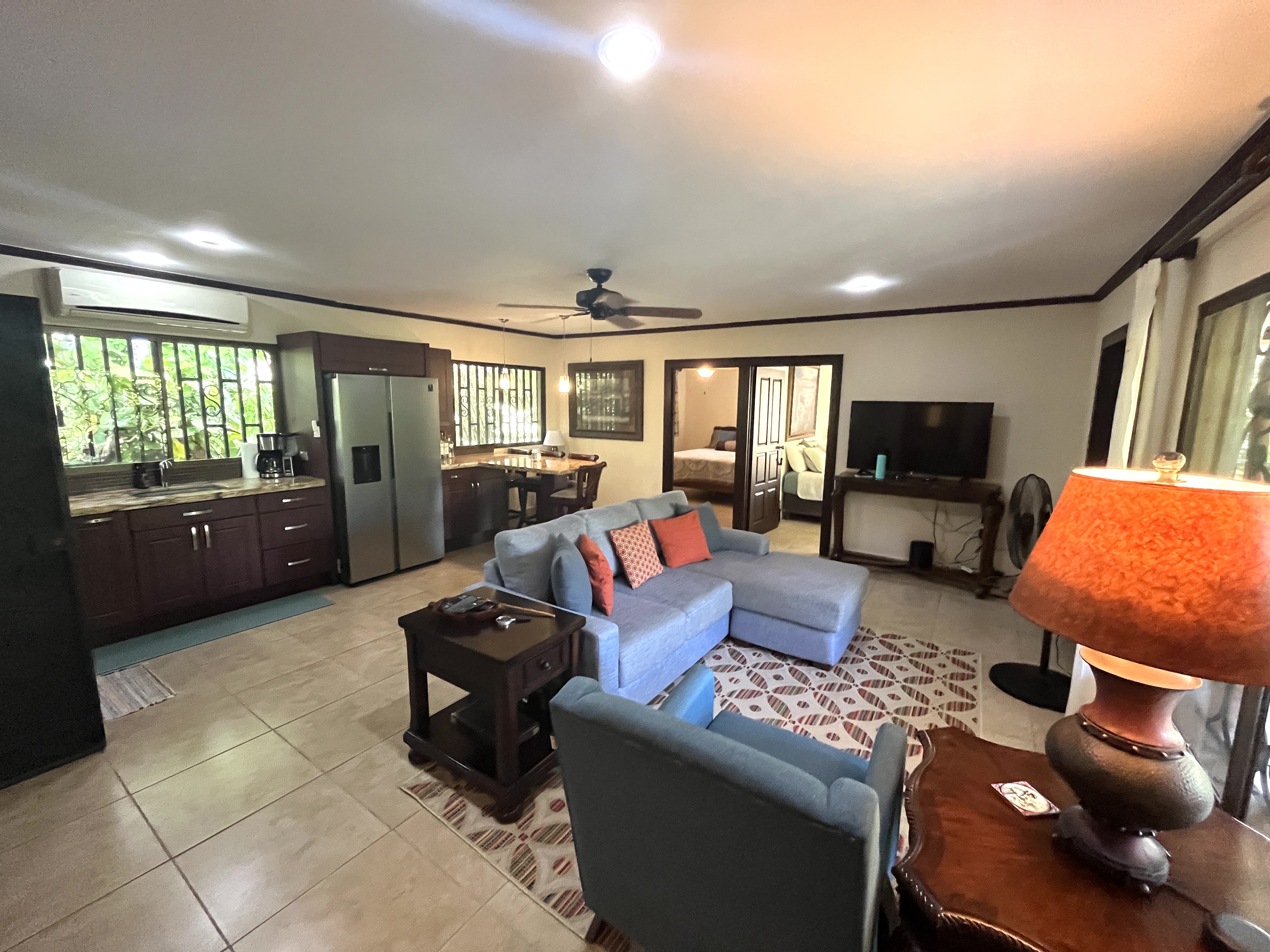 Dreaming of Living in Costa Rica? This charming home sits on over an acre of lush tropical vegetation, surrounded by fruit trees and immersed with the nature and wildlife that is iconic Costa Rica. Enjoy the peaceful setting on of the many hammocks or from your private pool as you see Scarlett macaws, white-faced monkeys come through your property. The 2 bedroom, 2 bath home is perfect for both full-time living or could be used as a vacation rental property. The one bedroom pool suite can easily be expanded to a larger guest house. Fully fenced with cameras, the property is in a secure neighborhood just across one of the areas most private private schools. Located just one mile from the famous waves of Hermosa beach and a 10 minute drive to Jaco. This is a rare find to see this much land this close to the beach, home is sold fully furnished.
