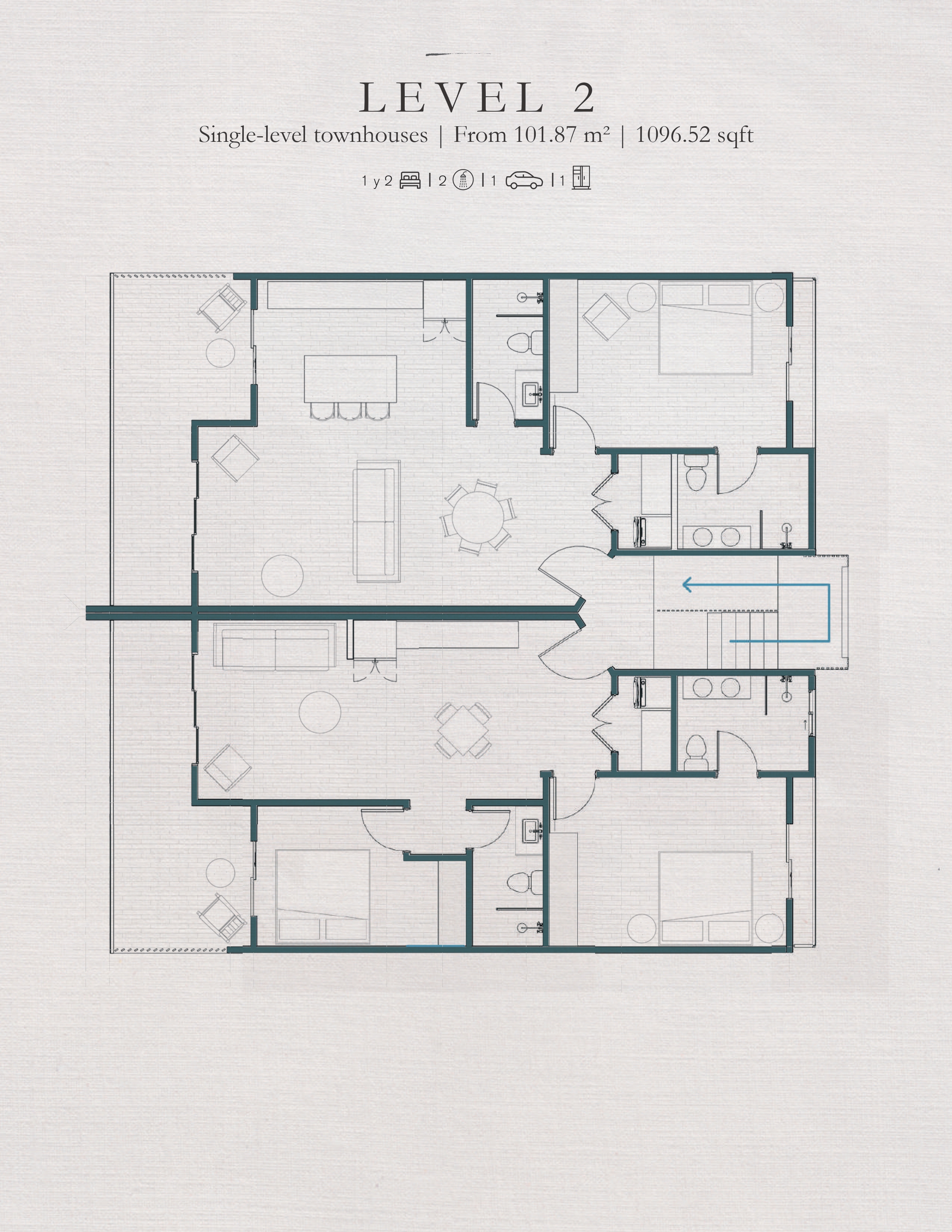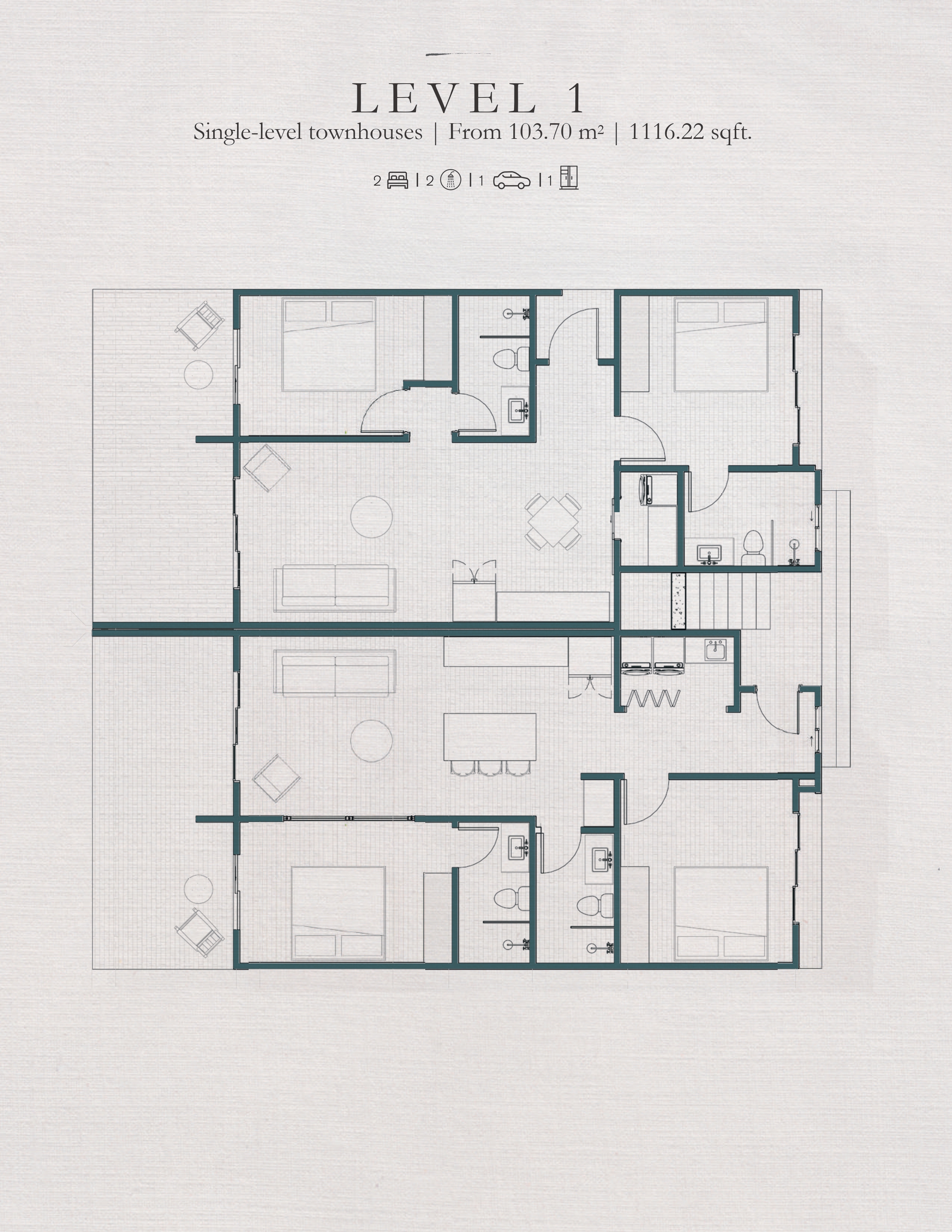 🏡 Property Features 1 and 2-bedroom single-level townhouses Starting at 103 m² (1,116 sq. ft.) of construction Prices from $289,000 USD Integrated kitchen, living, and dining area Two full bathrooms Laundry room Terrace and one parking space