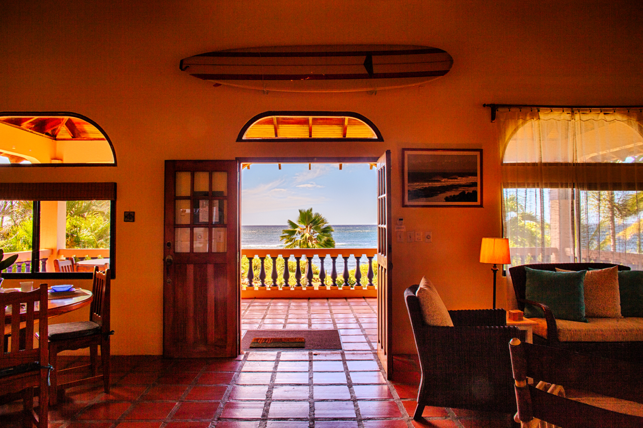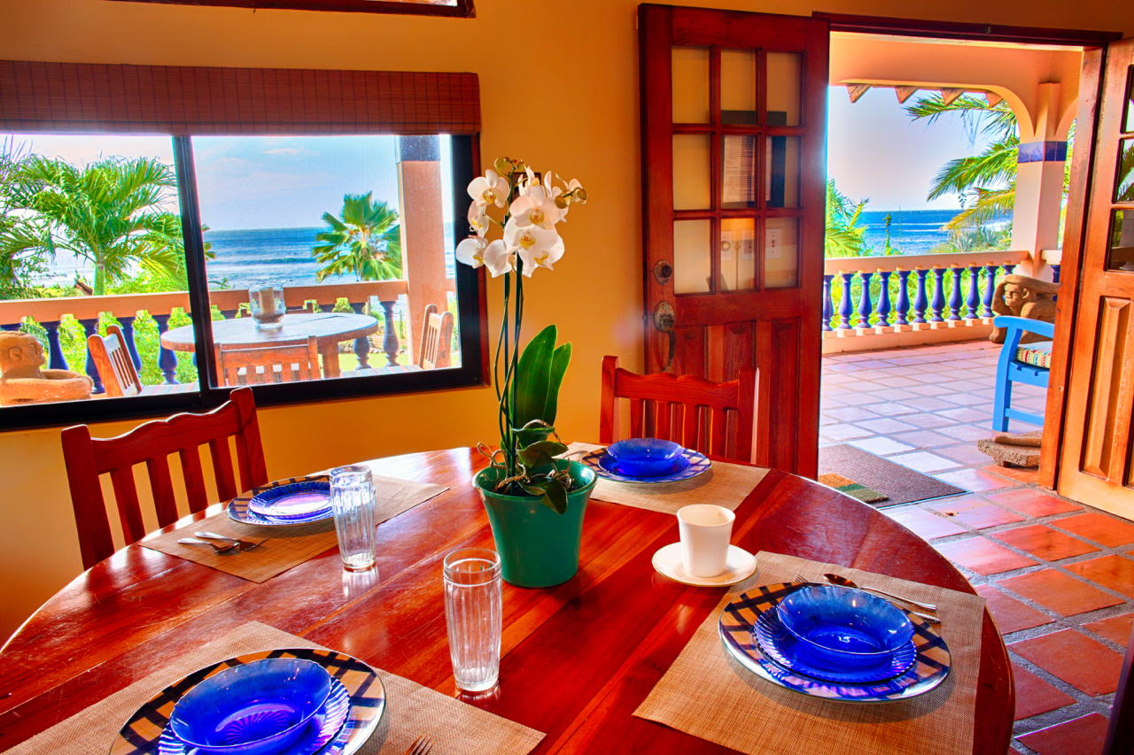 This happy home The current owners of this home are those that bought the lot and built it to their needs. They are moving up in age now and are ready to complete this 20 year cycle of their lives. They designed the home in combination with their lifestyle. Playa Negra's surf was the key to the design, construction and realization of this dream for them. This cute and cozy home is simple and cohesive. When entering the driveway of the 1/3 acre beachfront, one feels like they have come home. It is a simple two story home. On the first floor, the pool awaits on the south side of the home and welcomes you as you enter the stairs to get to the living spaces. Additionally, on this ground level is a secure garage with ample storage and a separate lockable storage space to boot. Step by step as you glide up the stairs the ocean view increases further and greets you as the warm tropical breeze cuddles you. You arrive to a large beachfront covered terrace where the tropical green palms and the deep dark pacific play with the senses. Walk inside the home and you find a cozy kitchen and dining area on the right and a nice living on the left. There are two bedrooms that share a bathroom here as well. This home comes furnished and rental ready.