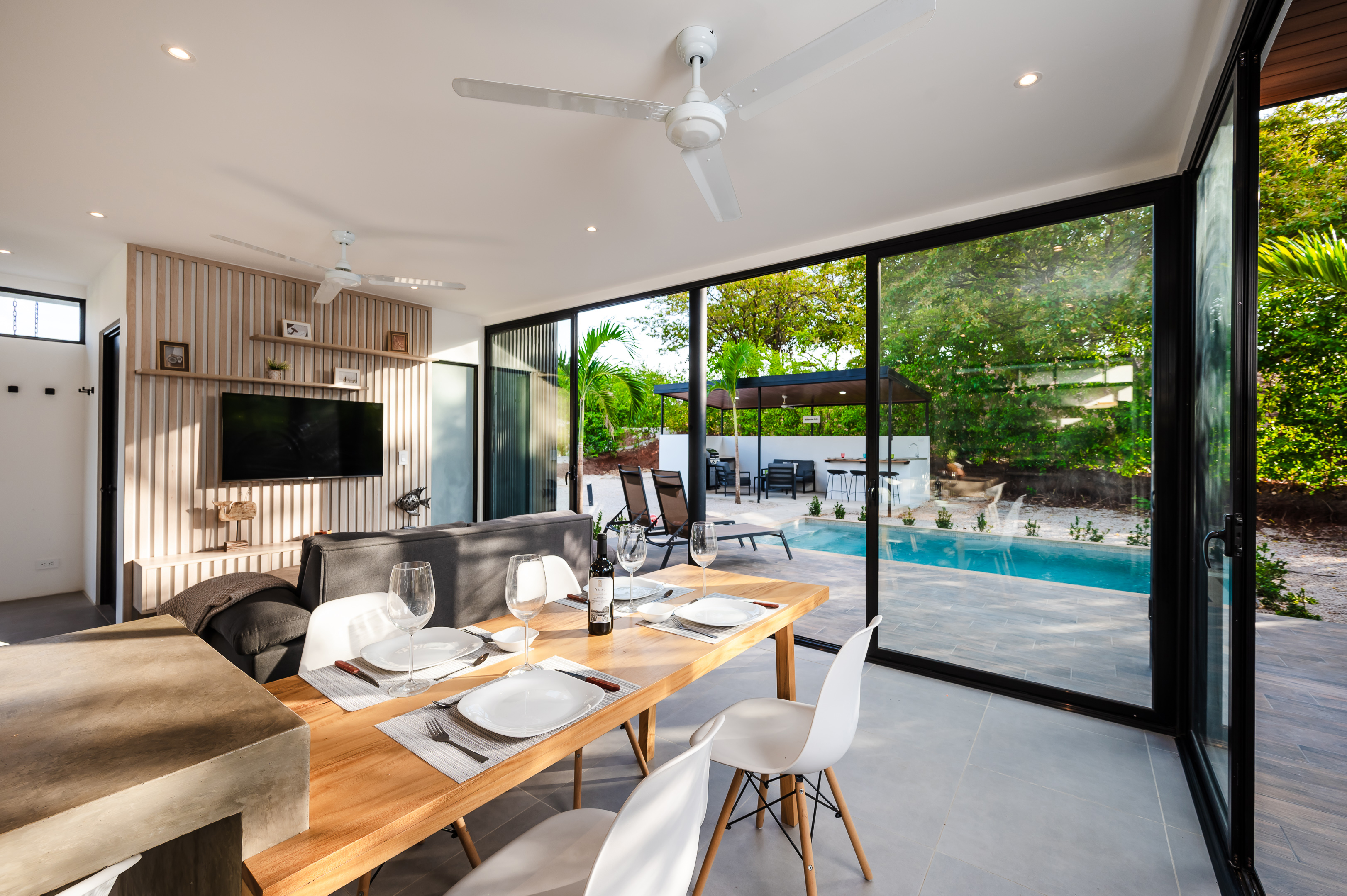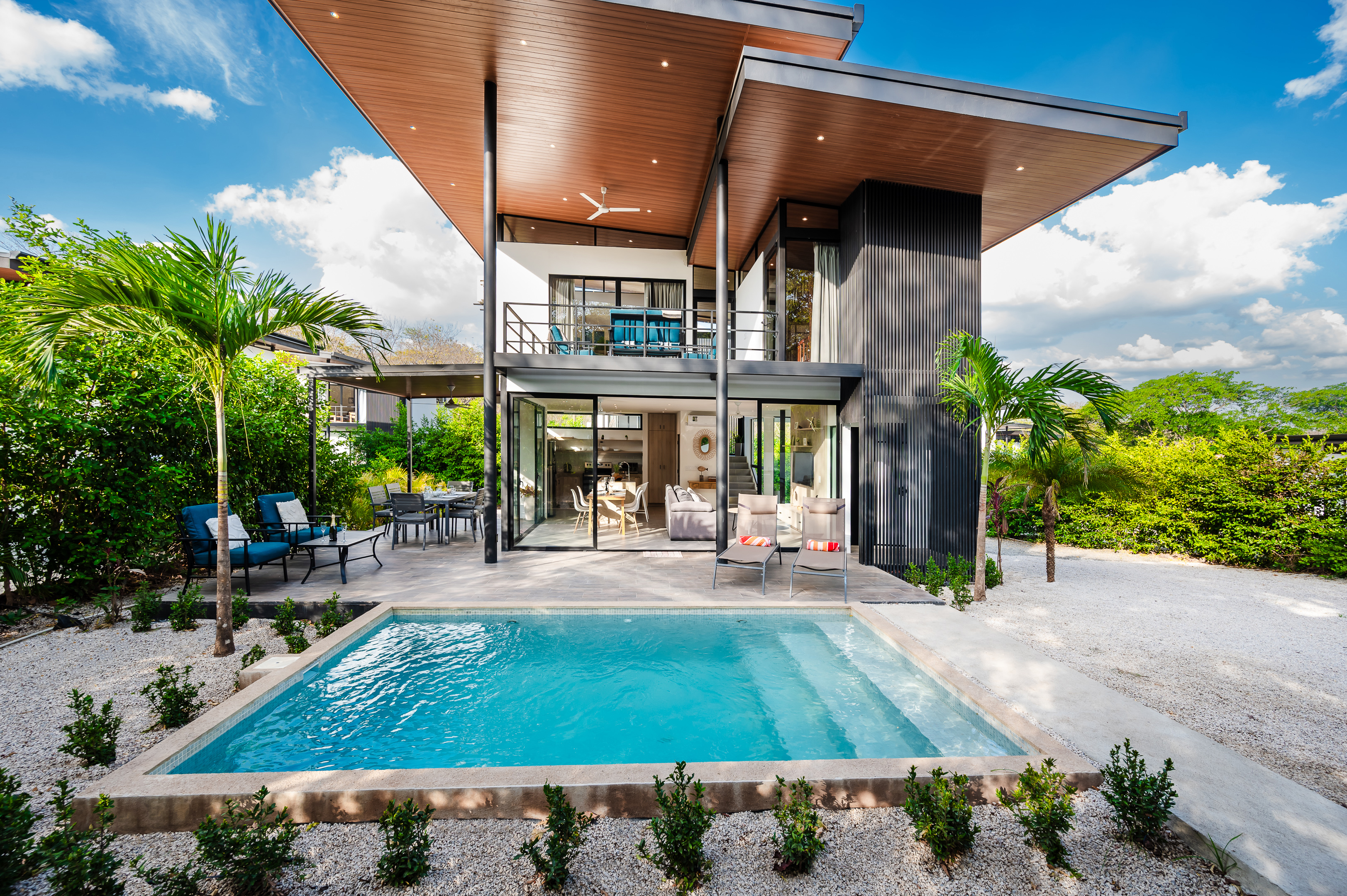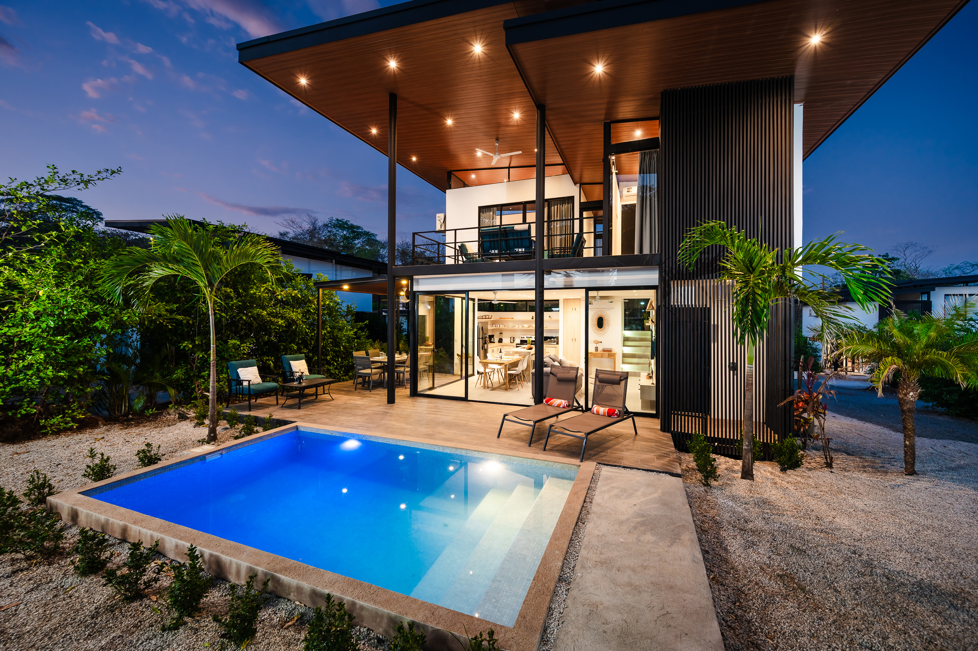 Discover this unique villa with an original architectural style, created in collaboration with local designers. Nestled within an exclusive community near Playa Conchal and Playa Grande, and surrounded by lush greenery, the property offers the perfect balance of elegance, comfort, and location. Just a short walk from both the beach and nearby shops, it provides the ideal mix of tranquility and convenience. The home includes 2 bedrooms, 2 full bathrooms, a bright living area with kitchen, a private pool, a rancho, and a barbecue space—perfect for enjoying the Costa Rican lifestyle outdoors. Suitable as a primary residence or as an income property, it has already proven successful on rental platforms, generating excellent returns in its first year. This is a strong investment opportunity in one of Guanacaste’s most desirable areas. The villa is only minutes away from some of the region’s most beautiful beaches—Playa Conchal, Puerto Viejo, Bahía Piratas, and more—as well as schools, clinics, supermarkets, and essential services within a 10–15 minute drive.