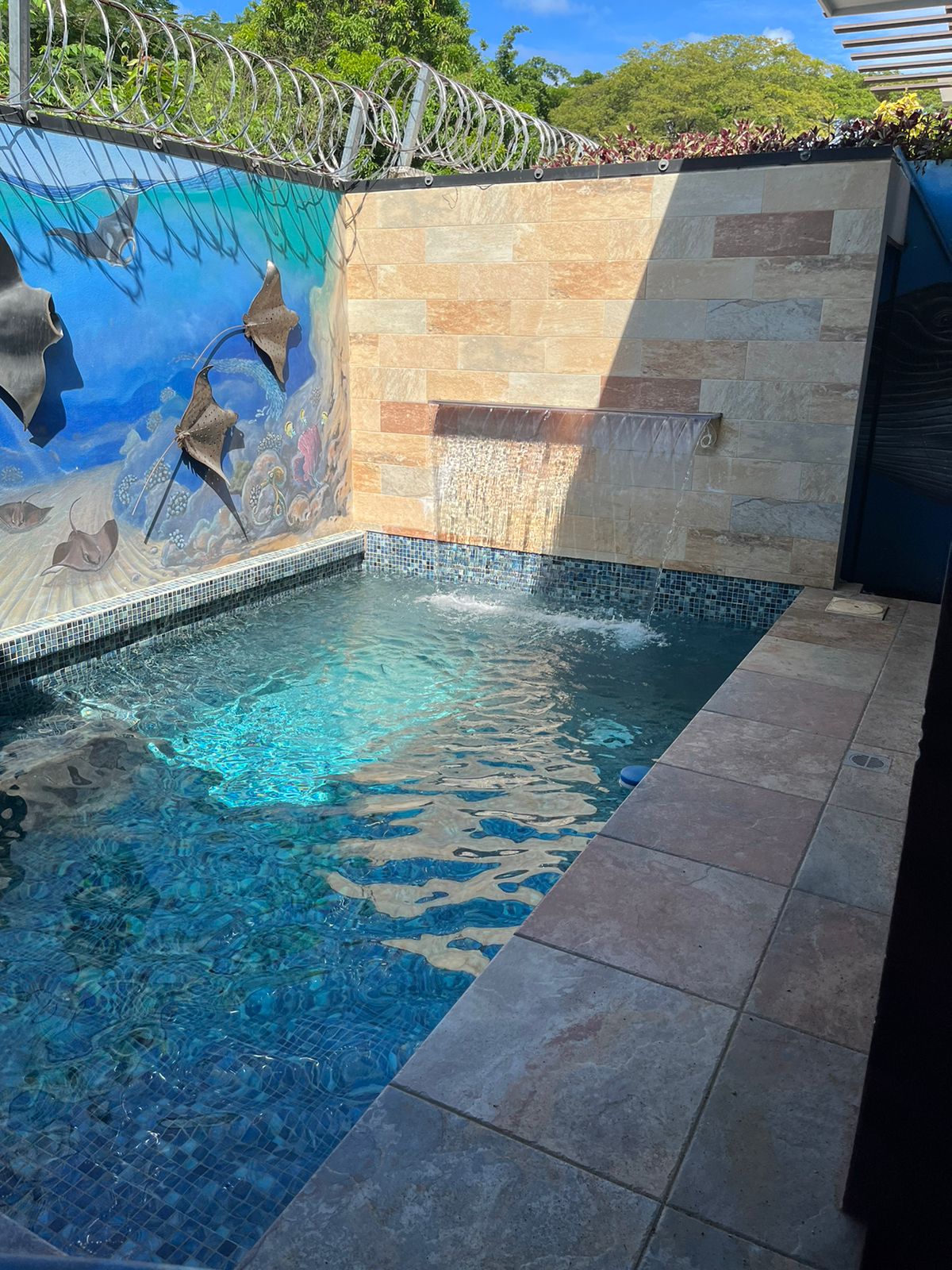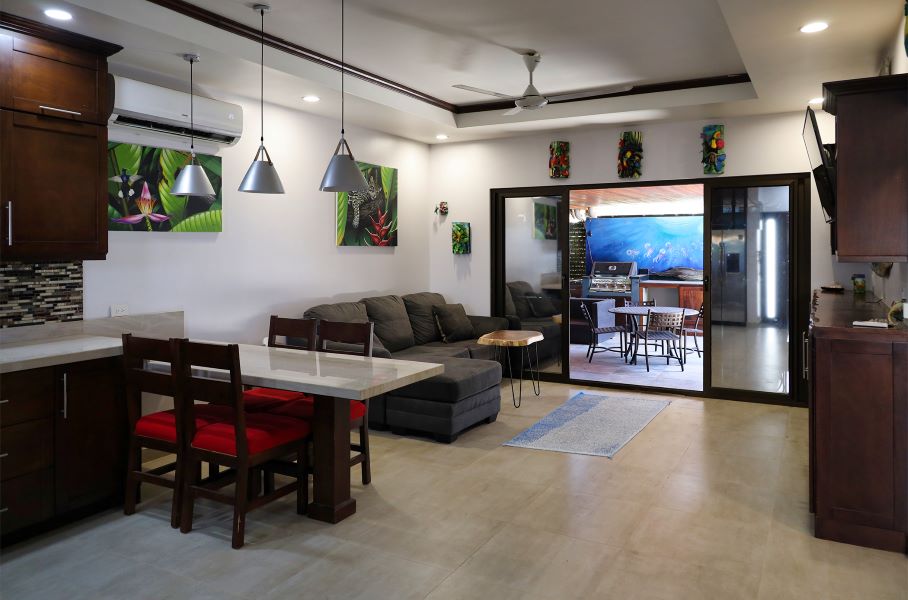 Casa Sunny Side is in an ideal location in Playas del Coco. It is within walking distance of the beach (5 min) and the main road in Coco (10 min). The 2 bed 2 bath house features a back pool/BBQ area, side yard with outdoor shower, front garden, 2 car covered parking. The pool also features a waterfall and the back area has a TV and lounge seating with a dining table. The perfect beach house that can also be used as an income maker via vacation rentals! Price reduced to sell!
