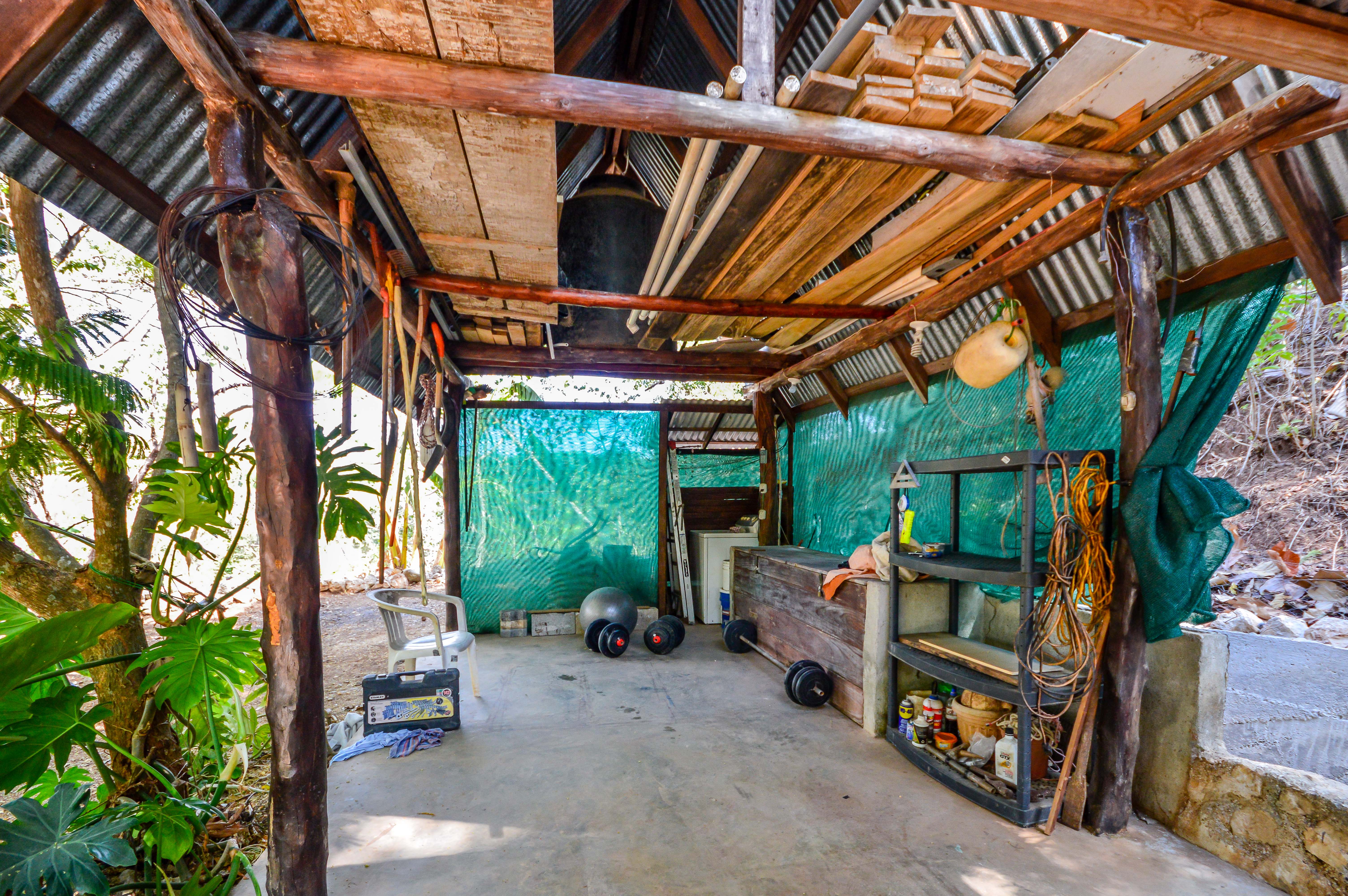 The design of the house seamlessly integrates the indoor space with the outdoor livings areas. The home features beautiful local hardwood details and accents throughout. The master bedroom opens up completely to allow natural light and air into the room. This property additionally features an additional garage with covered parking, a perfect space to store tools and materials.
