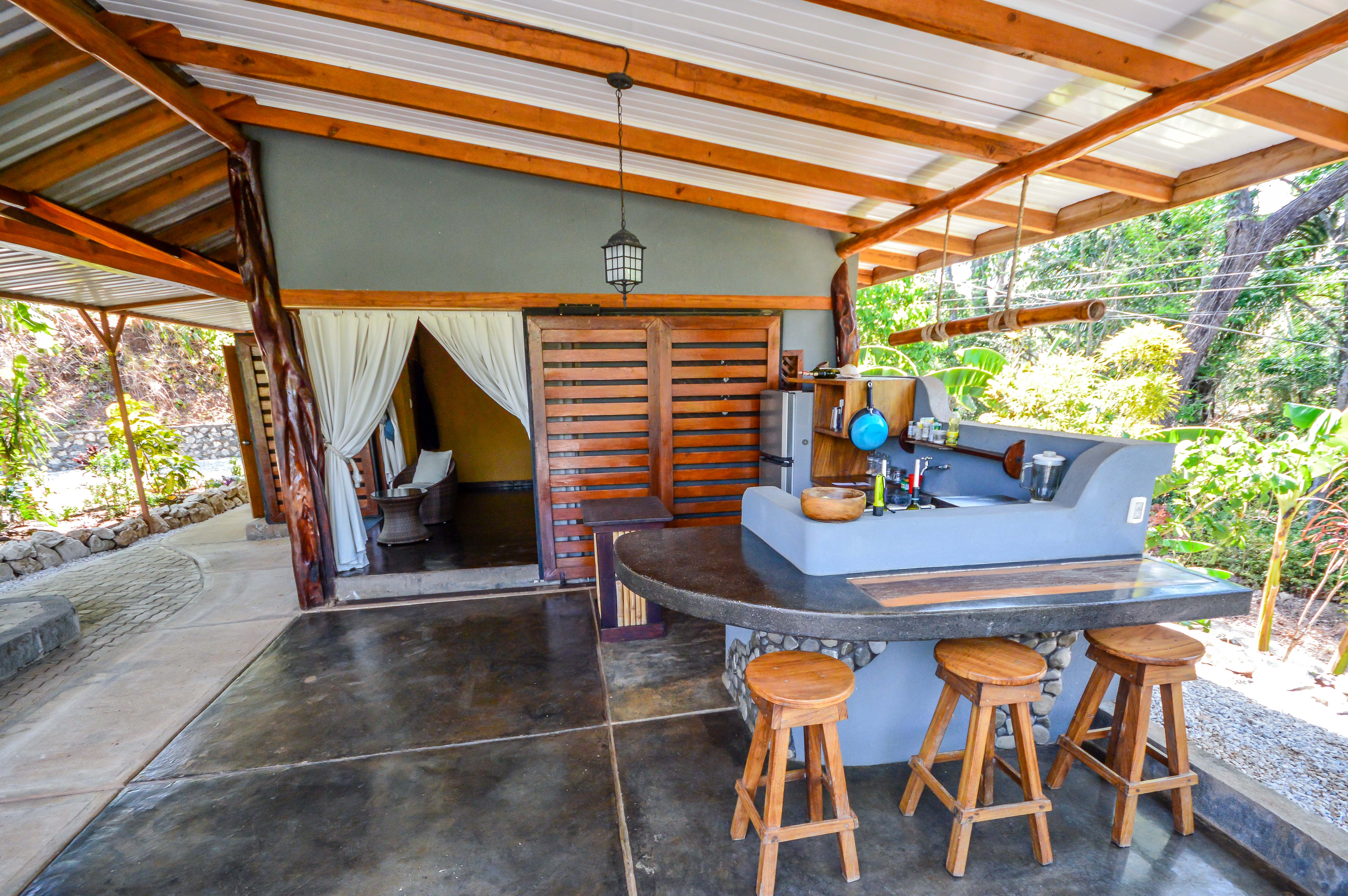 The home is located in the lush and private mountains behind Samara just 3 minutes on a paved road to the beach and downtown.