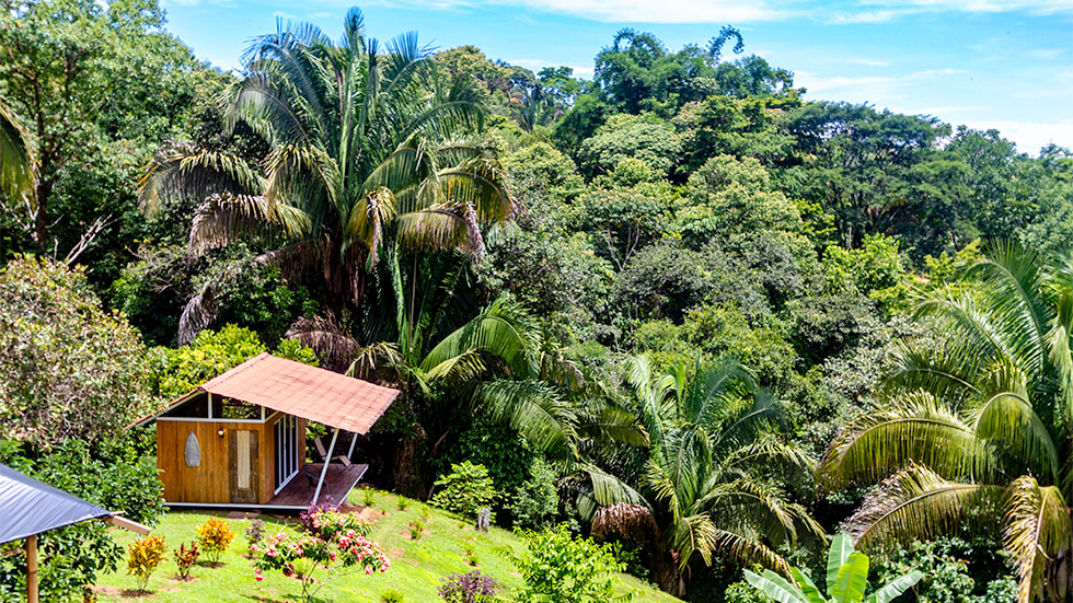This property is strategically tucked away on a natural ridgeline offering a breathtaking view of the ocean and lush jungle landscape. Due to the specific placement of the house, you can enjoy the sunset going into the sea most of the year. What was once a pasture has been reforested to accommodate regional flora and tropical fruit trees such as Mandarina, avocado, banana, cashew, jackfruit, mangosteen, and more. The abundance of the forest below the property also provides corridors for passing wildlife.