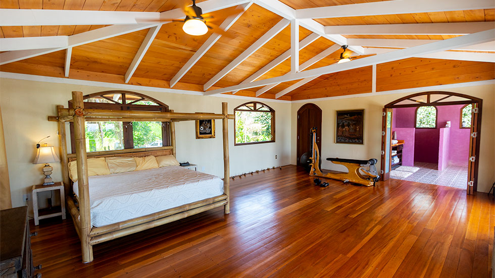 More often than not you may see a family of monkeys hanging out in the palms or toucans resting in a nearby tree. The property has also been manicured to accommodate easy access to the freshwater creek located directly below the home. While spending time on the property you might often hear the sounds of the creek rushing through the valley or the waves crashing from Playa Hermosa providing a soothing soundtrack to your jungle paradise.
