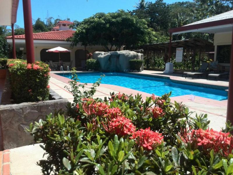 It is located on the Costanera Sur highway, just 150 mt. from the beach and 8 minutes from the Esterillos Este Airport. It is an ideal place to rest and enjoy nature, from the Hotel you can make special tours to different National Parks such as: Manuel Antonio, Carara, among others. It is special for surf lovers. In the Hotel you can enjoy the sun in the pool, it has a Jacuzzi and beautiful green areas. It has: Restaurant, Volleyball court, Souvenir Shop, Internet and Entertainment Room. It has 10 luxury rooms and 11 standard rooms, all equipped with hot water, A / C, cable / TV, telephone and private bathroom. It has security service all night and large private parking for 40 cars.