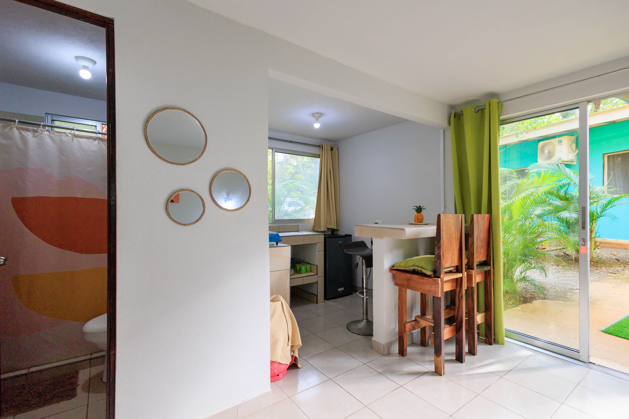 Includes air conditioning, a fully equipped kitchen, a private bathroom, a dining room, and a private terrace for relaxation.