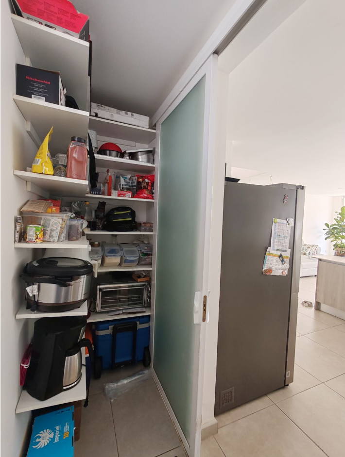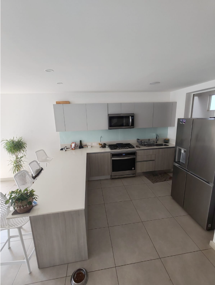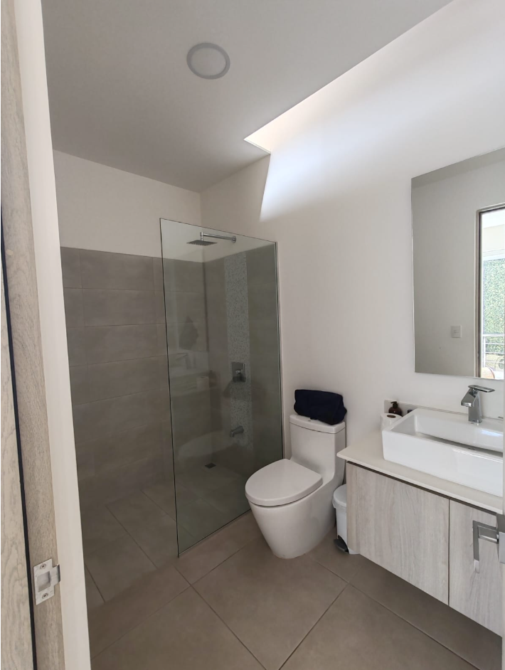 Ground Floor: Spacious patio with a lush garden Open and bright living and dining area Fully equipped kitchen with a microwave, stovetop, and extractor fan Convenient guest bathroom Dedicated laundry area
