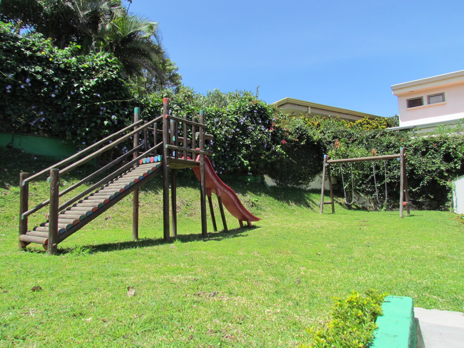 For Sale, Fully Equipped, Ample 3Br, 3.5Ba plus Maids, Corner Townhouse, Gated Community, Escazu. This spacious home is located in a quiet residential area in Guachipelín Escazu, one of the highest gain in the central valley. The homes have views over the central valley. The Distribution: dining room, TV room, 3 bedrooms with walk-in closet and bathroom each. The master bedroom has a Jacuzzi in the bathroom. 3.5 bathrooms, shelves for everyday items, luxury finishes, "Interiors" branded kitchen with quartz top, wooden doors, parquet floors throughout the second floor, private garden, porcelain floors in social areas. Maid's quarters. Separation between the houses are three meters, common area with playground, 2 parking spaces. The house has 290 square meters of construction + 80 square meters of garden. Ready to move in. Bank financing available! OWNER financing available!