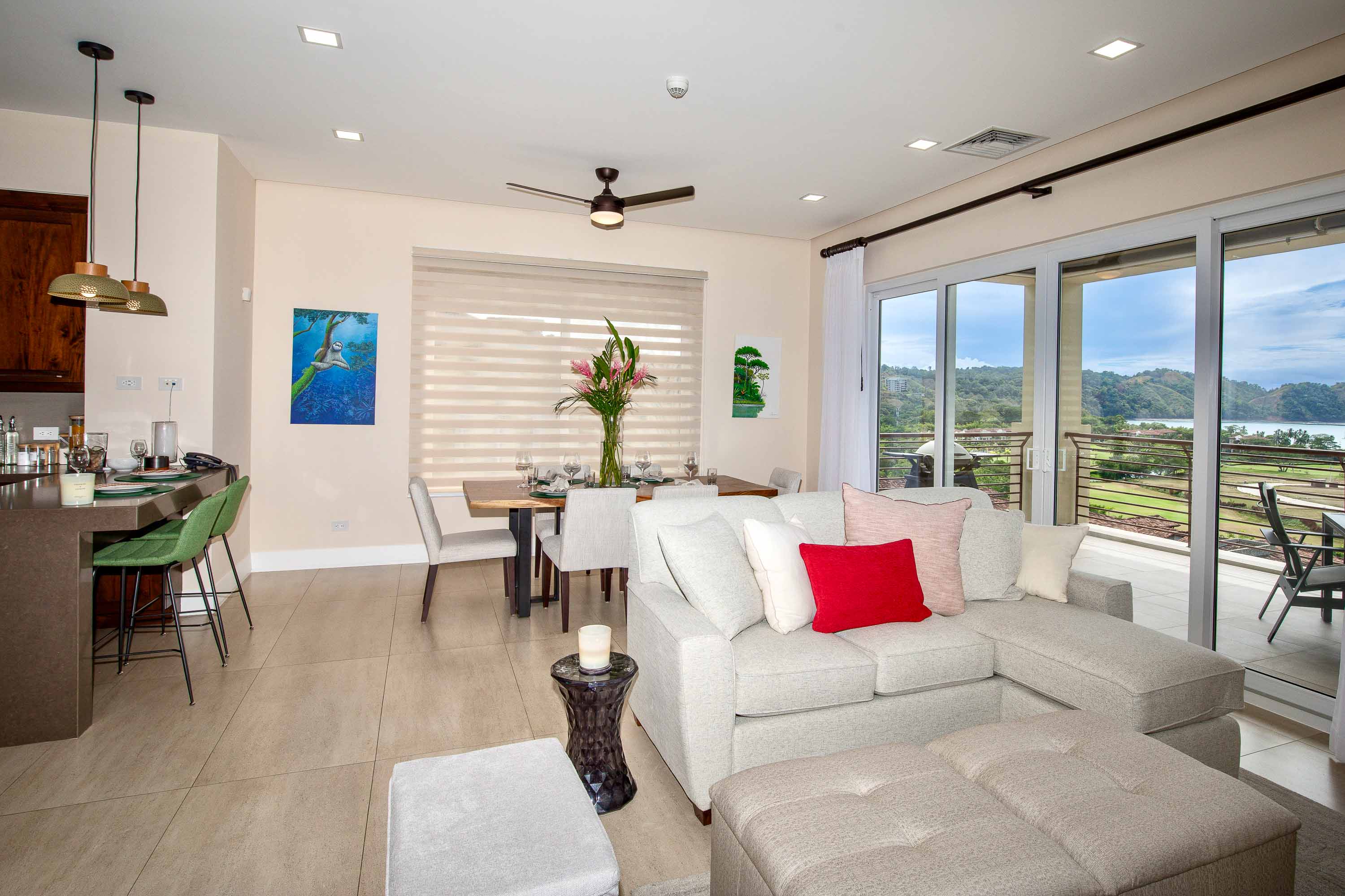 Experience luxury living at its finest with this exclusive Miramar condominium located on the top floor of the highly sought-after Miramar community in Los Sueños. Boasting arguably the best views in the entire resort, this completely renovated 3-bedroom condo offers a panoramic spectacle of the Pacific Ocean, Marina, and the entire resort. Don't miss the chance to inquire about this special property and indulge in the breathtaking vistas that redefine coastal living. This beautifully appointed residence is turnkey, featuring contemporary finishes that elevate its urban contemporary charm while maintaining a warm tropical ambiance. With an open concept floor plan spanning 1,700 square feet, each of the three bedrooms and bathrooms provides a seamless blend of style and comfort. The large terrace and exterior private storage area add to the allure, creating a perfect balance between indoor and outdoor living. Positioned on the exclusive hillside of Vista Los Sueños, Miramar grants you expansive views of the golf course, resort, and the mesmerizing Pacific Ocean.