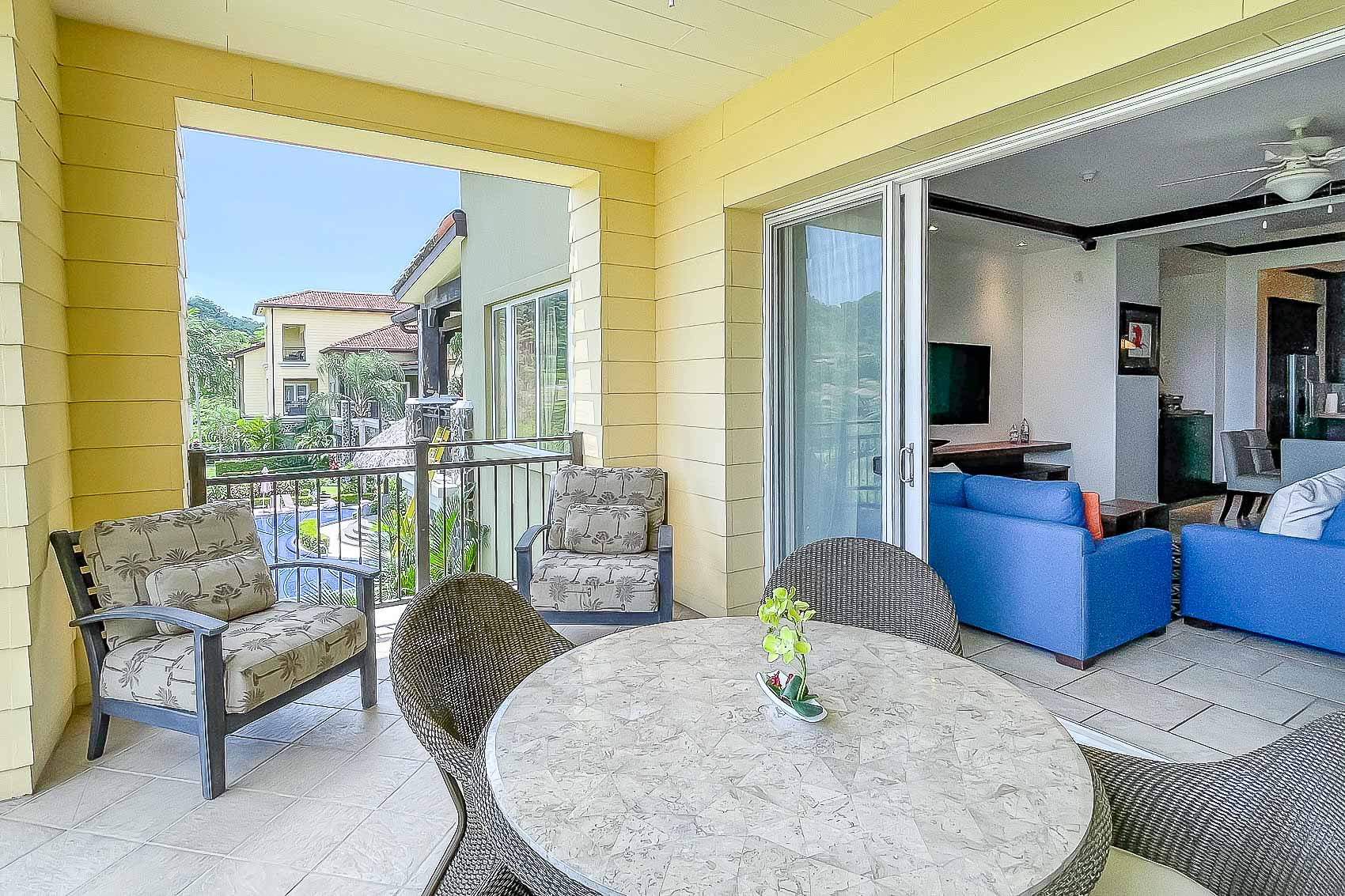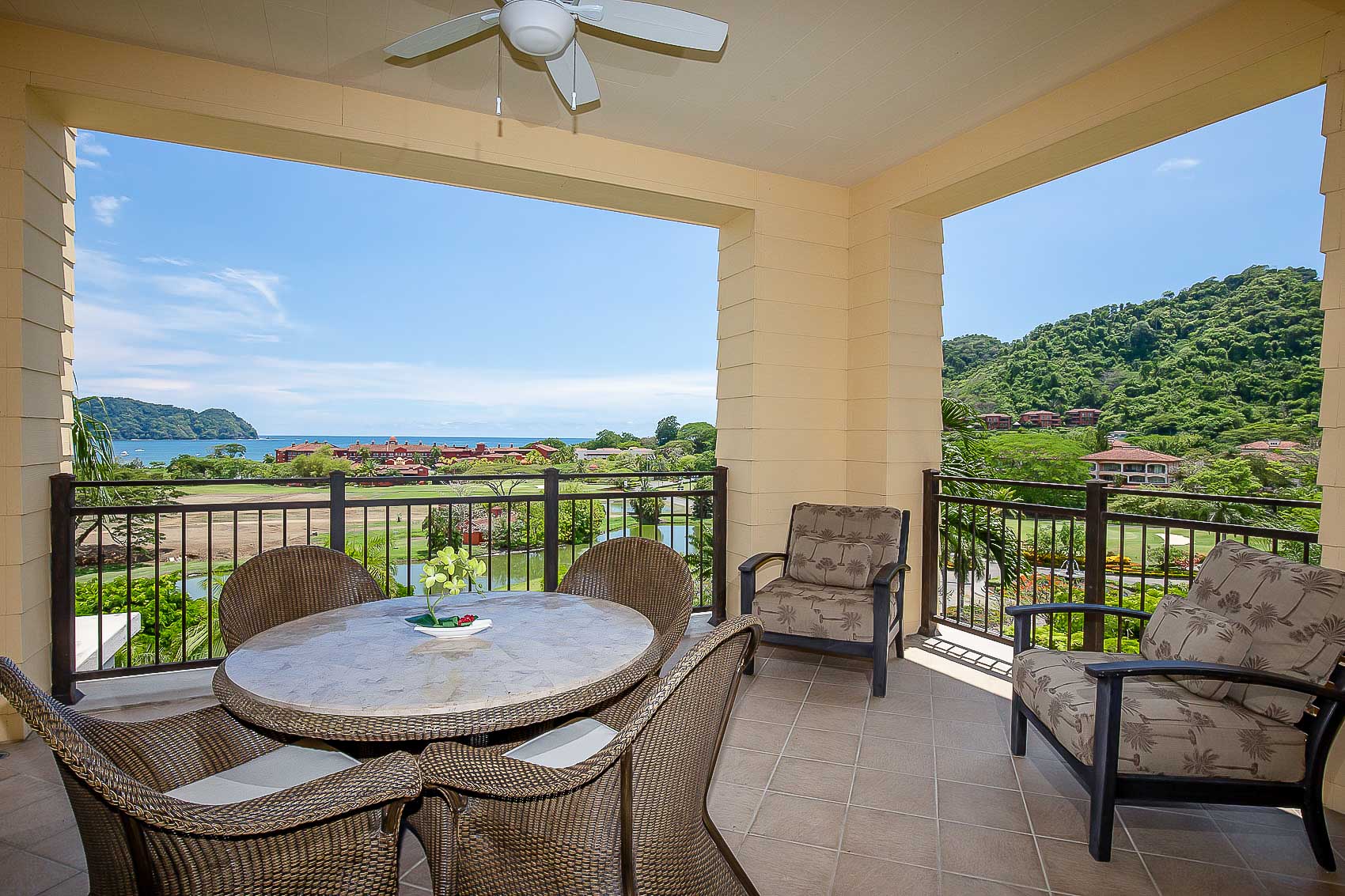 Vista Bahia 3B is surrounded by the beautiful tropical courtyard and water features of the world-renowned Los Suenos Resort. As soon as one nears these magnificent premises, there’s an immediate sense of arrival, a relaxed welcoming to an oasis of a setting.