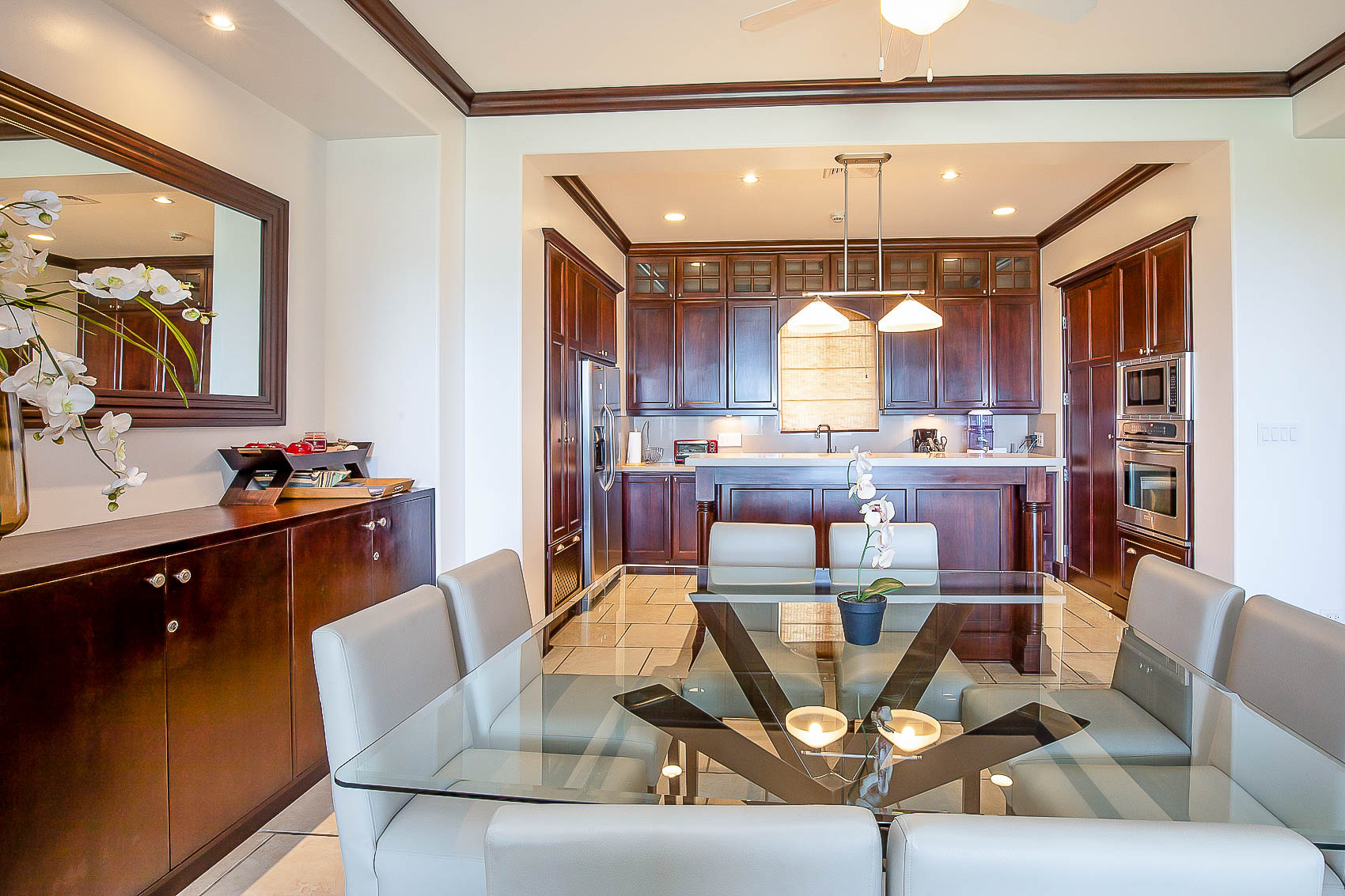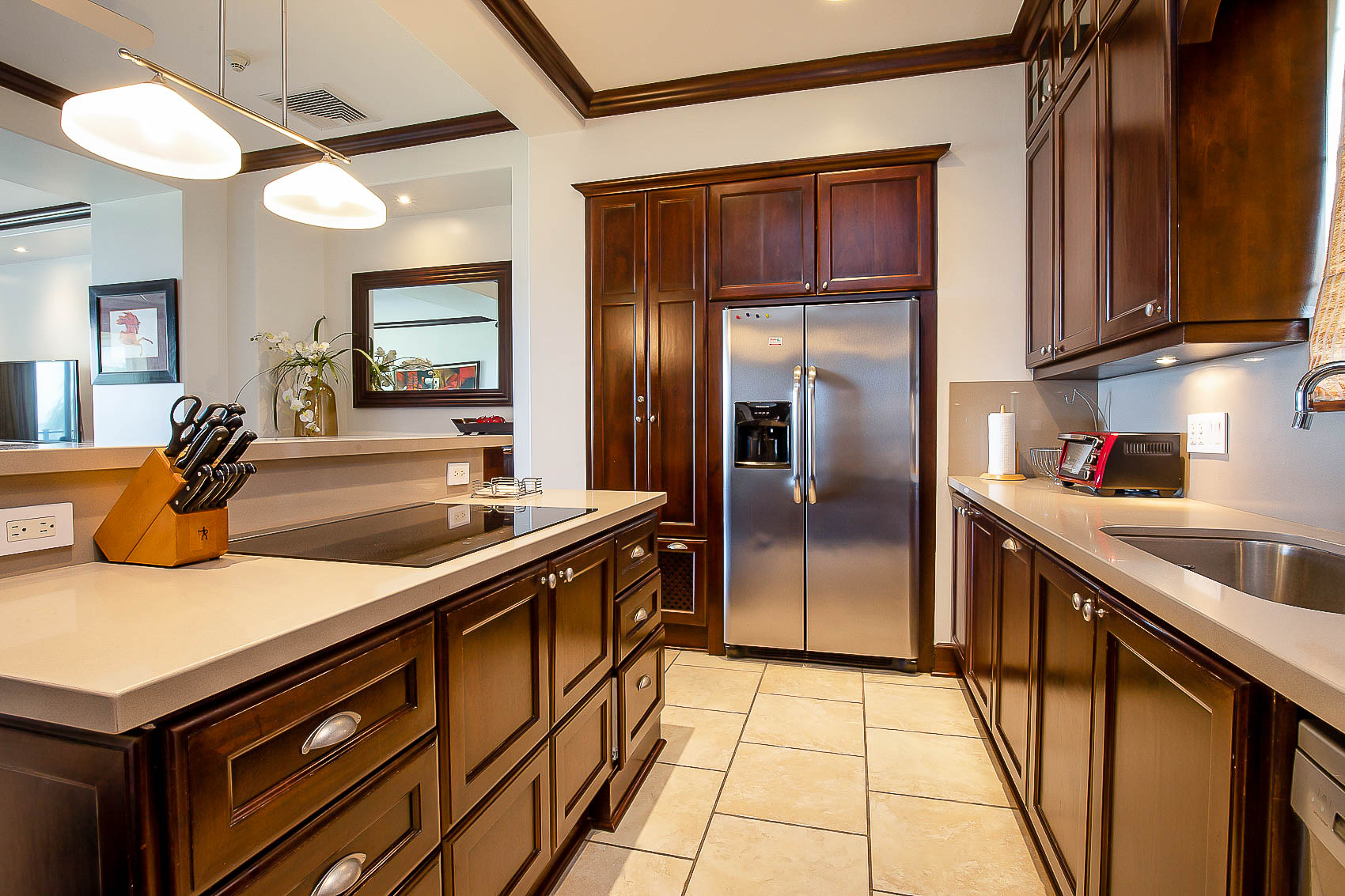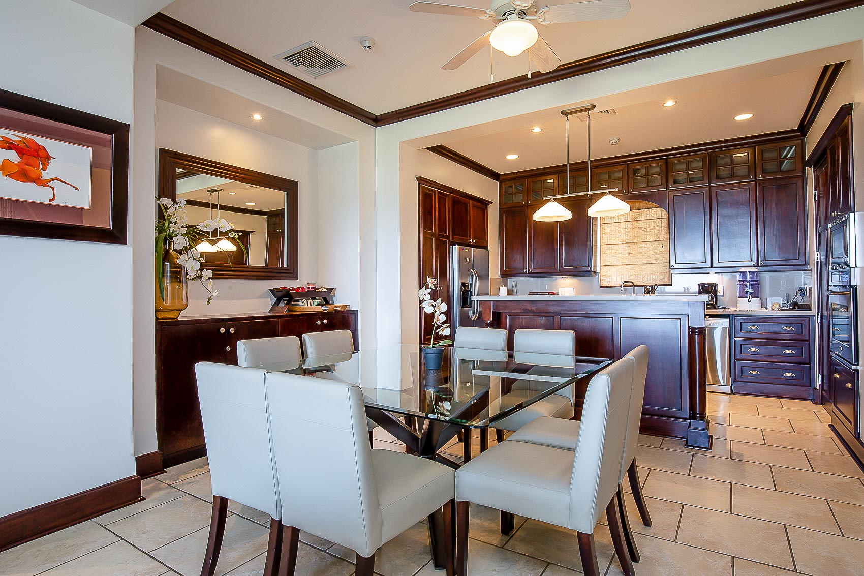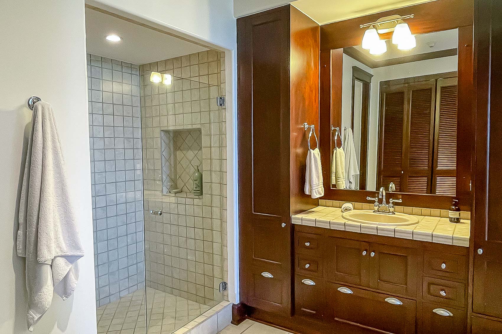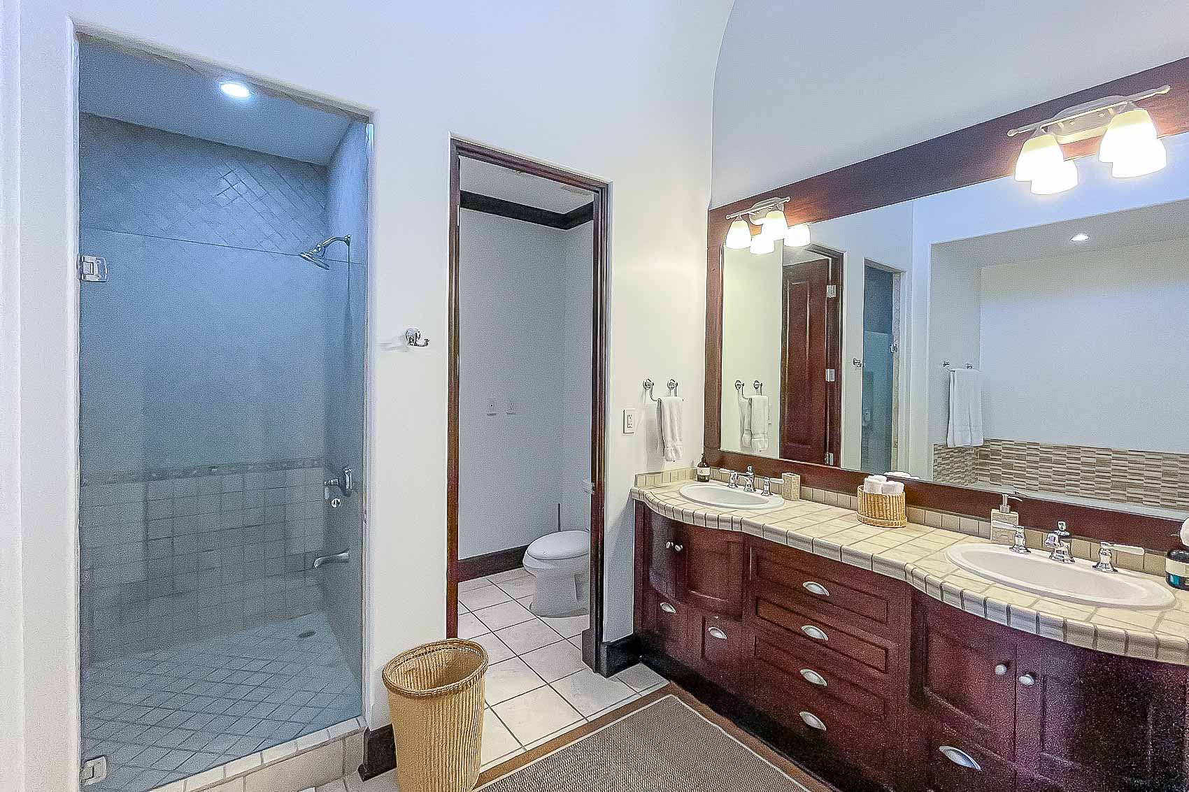Vista Bahia 3B’s floor plans are divided into three bedrooms and three bathrooms, each with spectacular ocean, mountain and resort views, as well as a high-end kitchen, and spacious living and dining areas. The first floor boasts the living area and a guest bedroom, while the second story hosts two additional bedrooms with their own, grand ensuite bathrooms. The master bedroom has its own large ocean view balcony, from which the best sights in the whole resort can be appreciated.
