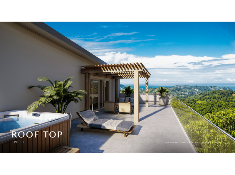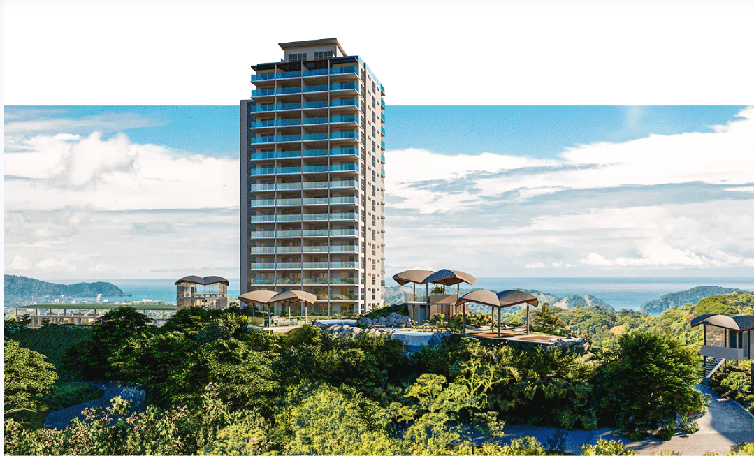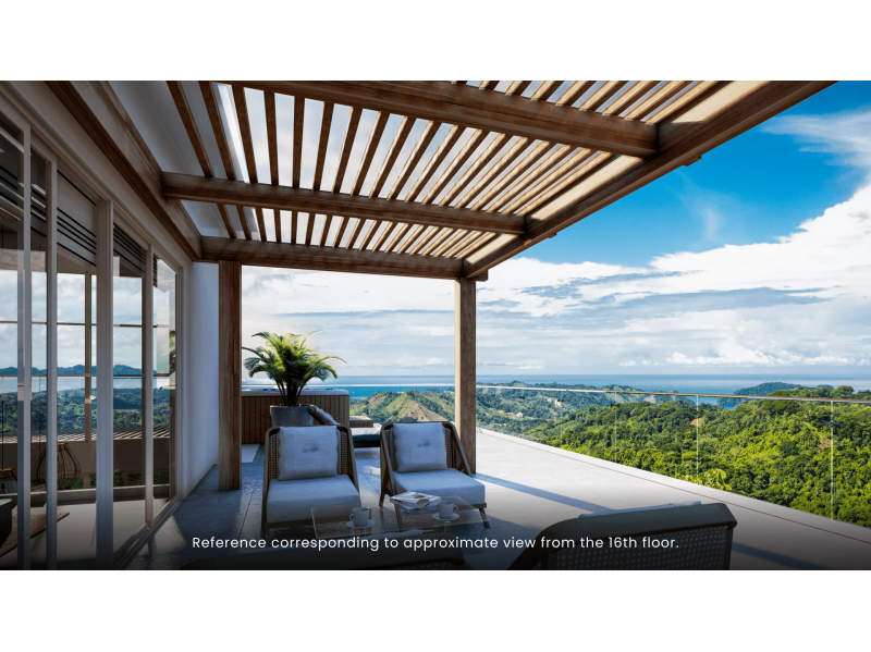Duplex corner apartment with 2 or 3 bedrooms, 3 bathrooms, with mezzanine, a private terrace with pergola and jacuzzi, 2 private parking spaces and 1 warehouse. Surround yourself by a 360° view of miles of coastline and Carara National Park. This project wil feature 64 condominiums among 17 floors with breathtaking views to the bay of Nicoya and Jaco Beach. Every unit is a corner residence with ocean views. The common areas will feature a yoga deck, infinity pool with Jacuzzi, a gym, coworking space, and covered parking. The residences will come with appliances and air conditioners. Furniture is not included. Enjoy surfing and golf, close to Los Sueños Resort and Marina, many hotels, more than 60 restaurants that offer around the world cuisine, bars, supermarkets, banks, health clinics, and all the services you might need to make your life easy and pleasant. Please feel free to reserve your unit today for only $2000, call us for more info...