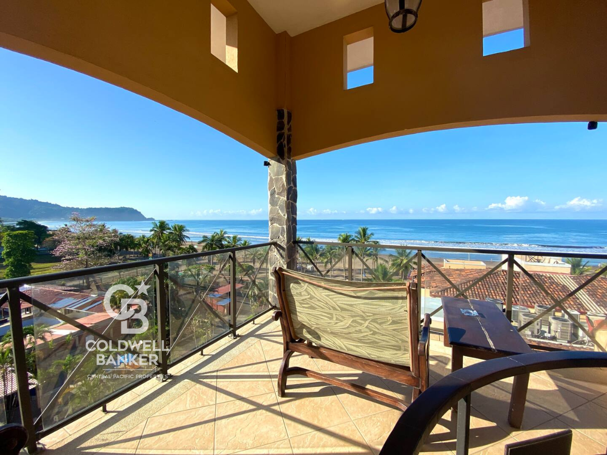 Unique opportunity to purchase direct oceanfront! This top floor condo offers breathtaking views of the ocean and provides a tranquil setting for family enjoyment. You will love the common area swimming pools, just in front of some of Jacos iconic surf. The condo boasts a charming double terrace with ocean views, perfect for indulging in a good book, savoring a glass of wine, and witnessing a magnificent sunset. It's the ideal place for your family to relax and unwind.
