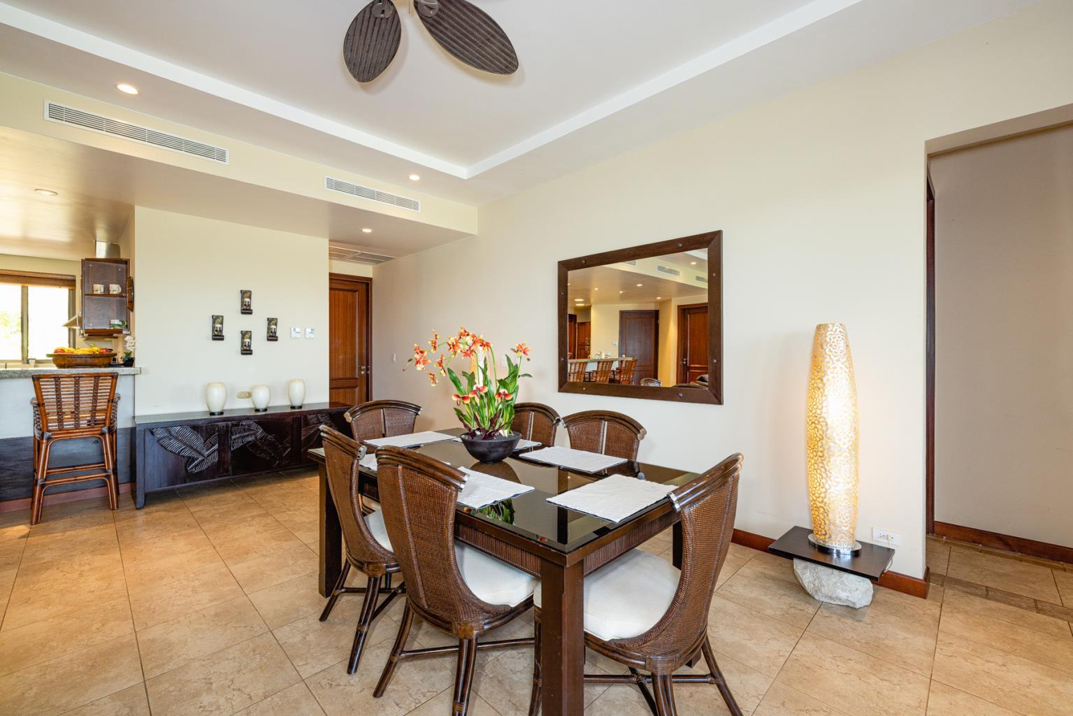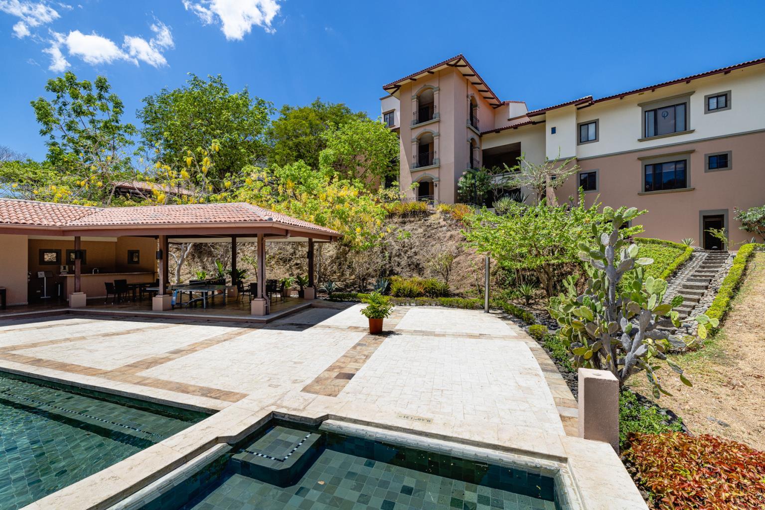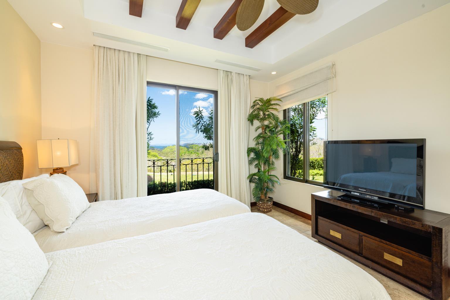Jobo 11 is a lovely ground-floor condominium with three bedrooms, one office, and four bathrooms. A separate door leads into the Master bedroom, which has a spacious bathtub, a comfy large bed that overlooks the rainforest, and a walk-in closet. The separate door will provide separation from the remainder of the unit, providing an alternative to renting the entire condo. Because of its location within the Jobo development, this apartment has access to the common area pool and patio, which overlooks the 12th hole of the golf course, as well as the enjoyment of a covered terrace. This spectacular condo is located within Reserva Conchal, Costa Rica's favorite resort, which will feature an 18-hole golf course, a Westing and a W Hotel, tennis, hiking trails, pickleball, and an amazing 60,000sq feet beach club with a health center, spa, kayaks, stand up paddle boards, bikes, restaurant, and a bar right in front of the magical Conchal beach. TV