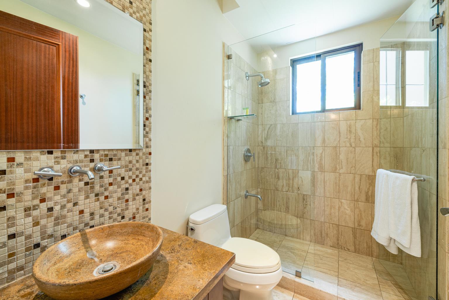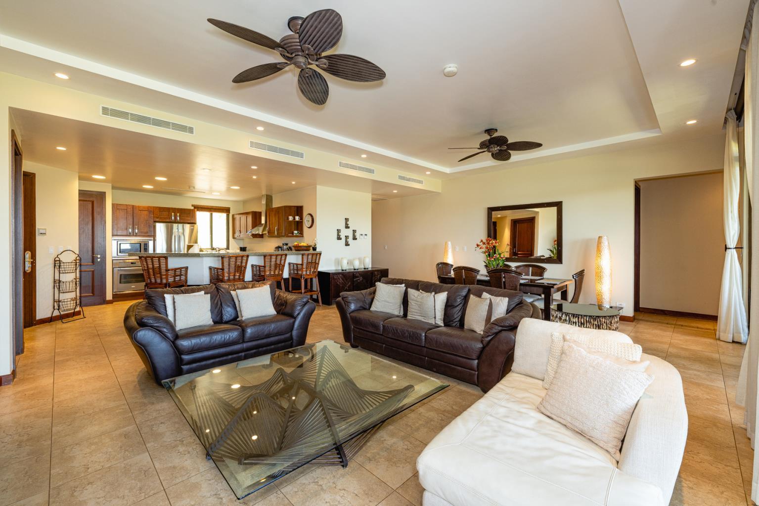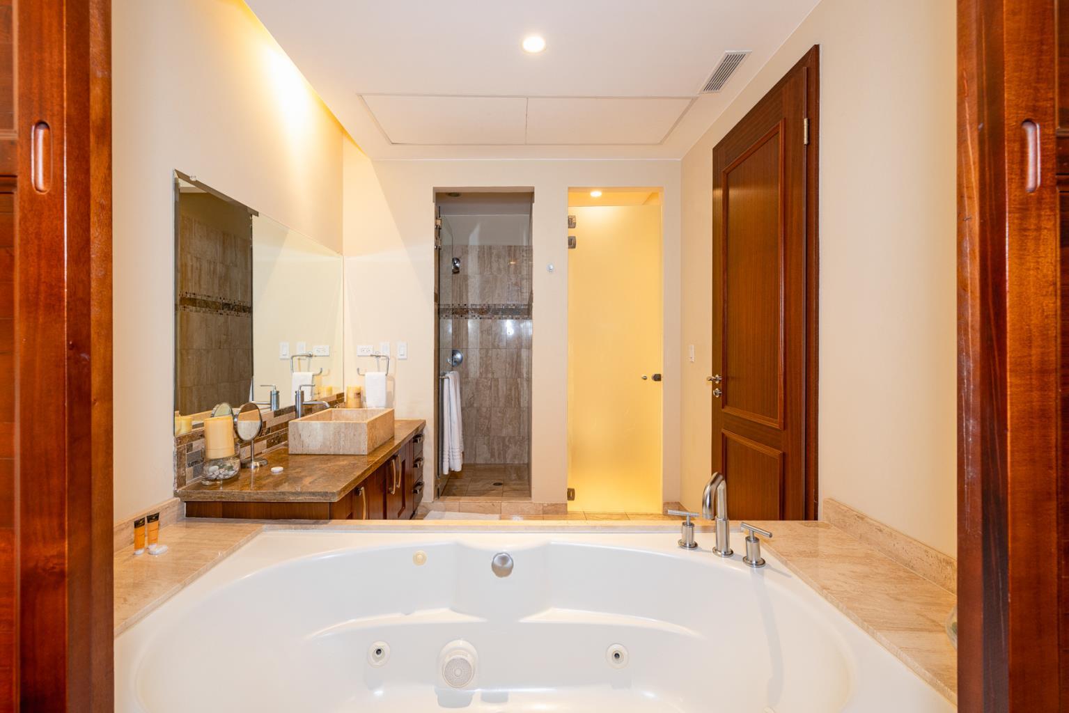 Jobo 11 is a lovely ground-floor condominium with three bedrooms, one office, and four bathrooms. A separate door leads into the Master bedroom, which has a spacious bathtub, a comfy large bed that overlooks the rainforest, and a walk-in closet. The separate door will provide separation from the remainder of the unit, providing an alternative to renting the entire condo. Because of its location within the Jobo development, this apartment has access to the common area pool and patio, which overlooks the 12th hole of the golf course, as well as the enjoyment of a covered terrace. This spectacular condo is located within Reserva Conchal, Costa Rica's favorite resort, which will feature an 18-hole golf course, a Westing and a W Hotel, tennis, hiking trails, pickleball, and an amazing 60,000sq feet beach club with a health center, spa, kayaks, stand up paddle boards, bikes, restaurant, and a bar right in front of the magical Conchal beach. TV