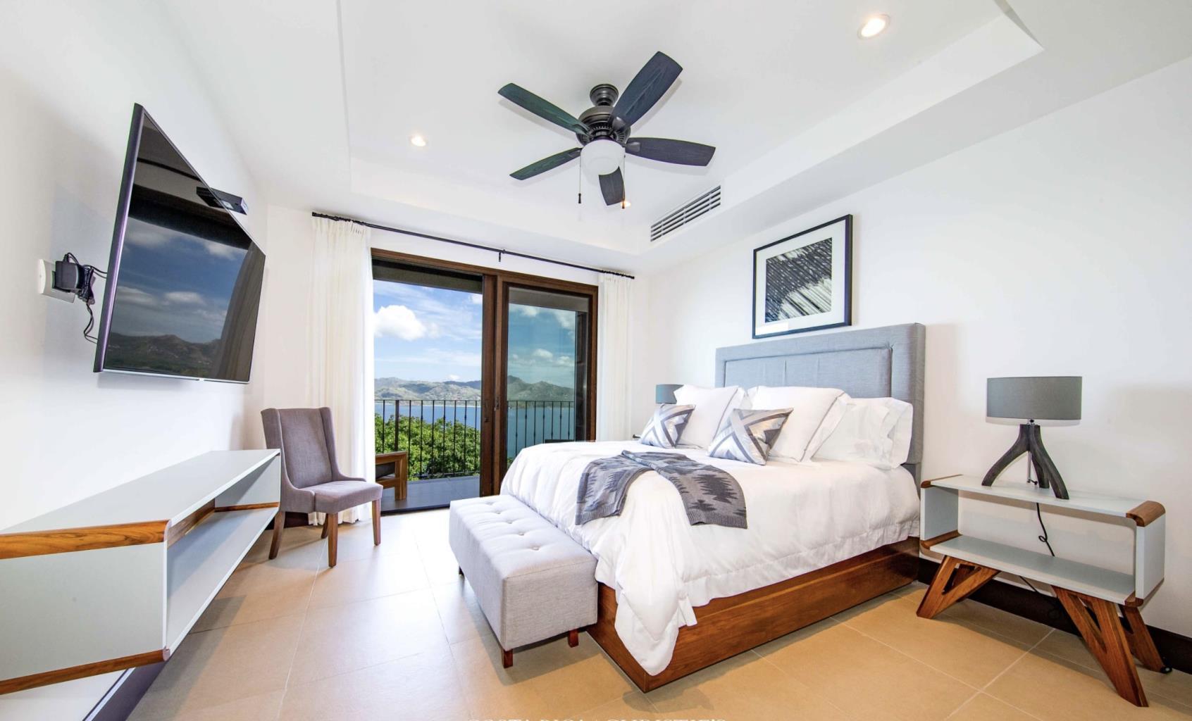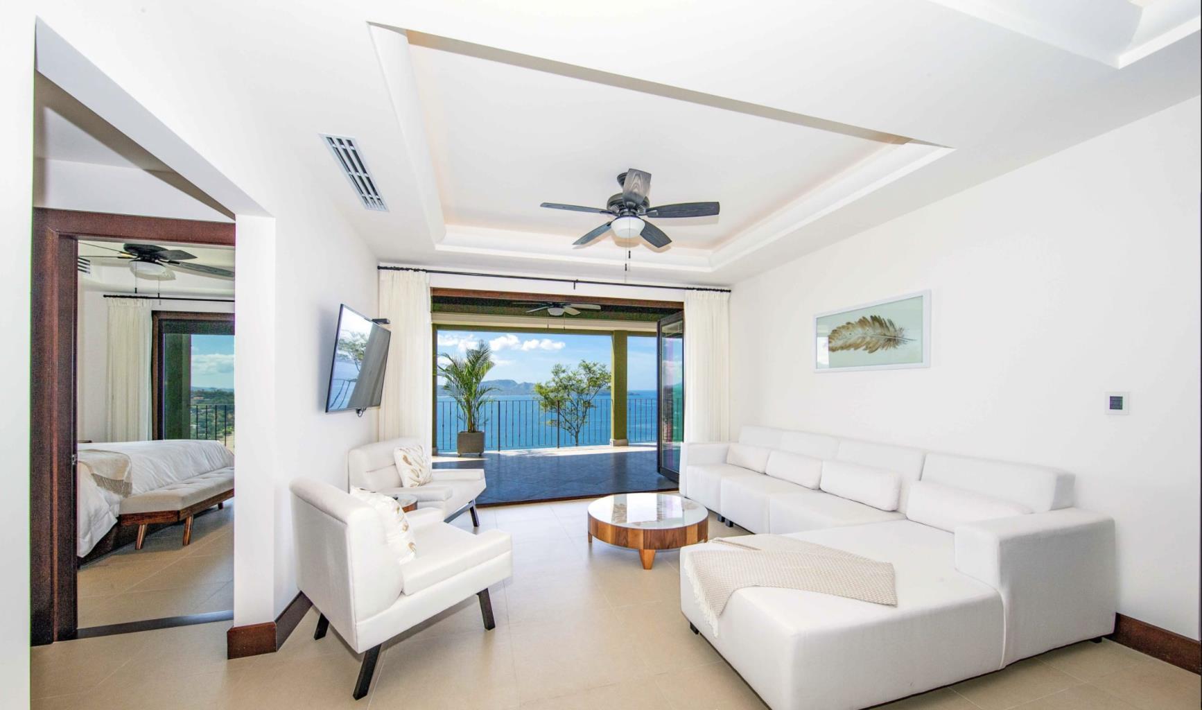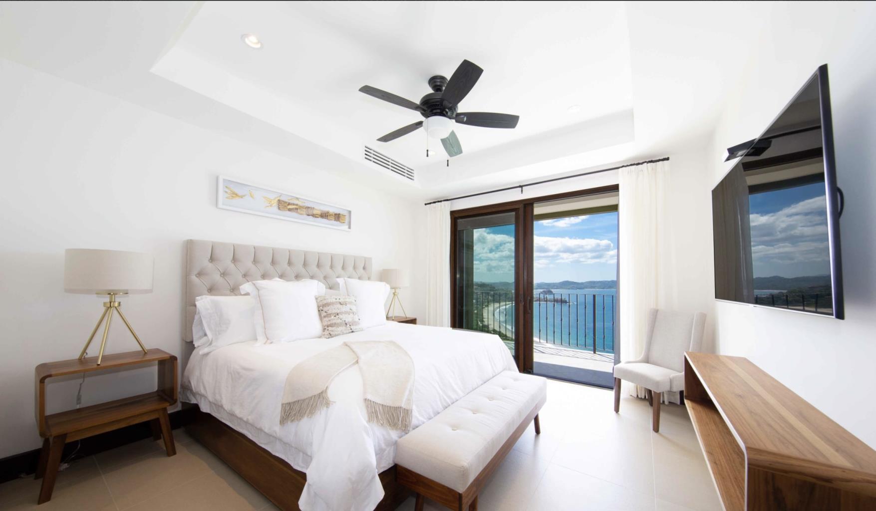 With a fresh white interior, wonderful natural lighting, and fantastic ocean views, this 3 bedroom/3 bath Penthouse is bright and inviting. It is turn-key and fully furnished and is located on the third story of 360 Splendour del Pacifico. There are beautiful ocean views out every window, in addition to wonderful natural light and a clean basic ambience. The main living room is connected to a wide terrace with views of Flamingo Beach and the infinity pool by bi-fold Pella doors that fold entirely open. Unit 309 includes a large living/dining space with panoramic views of mountains, islands, and beaches from sunrise to sunset. The living space flows seamlessly from the kitchen to the dining room to the sunlit living room, making this home both bright and inviting. The fully-equipped kitchen has solid stone countertops, a big side-by-side fridge/freezer, high-end appliances and a breakfast bar for four people. There are three master bedrooms, each with a king-sized bed and its own bathroom. Flat-screen televisions, wardrobe space and A/C units are available in all three bedrooms. Every accommodation provides direct access to an own terrace with fresh coastal breezes and magnificent vistas, in addition to stunning views from within. Each bedroom has its own private bathroom, which is tastefully outfitted with marble vanities, a walk-in shower and complementary toiletries. The master bedroom also has a huge walk-in closet, a relaxing jacuzzi tub and direct access to an outdoor terrace. This unit has easy access to both the saltwater infinity pool and the rooftop balcony. Financing is offered for 50% down, 6% interest for two years, and a balloon payment at the end. There are no prepayment penalty.