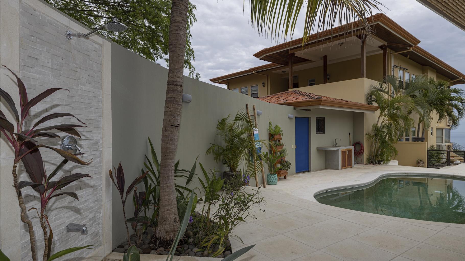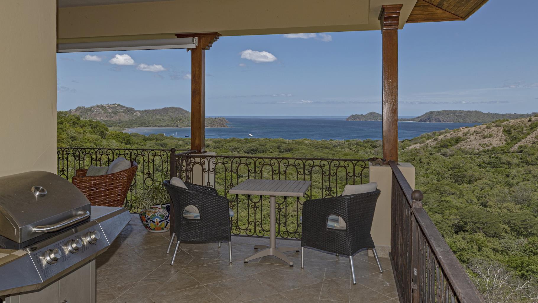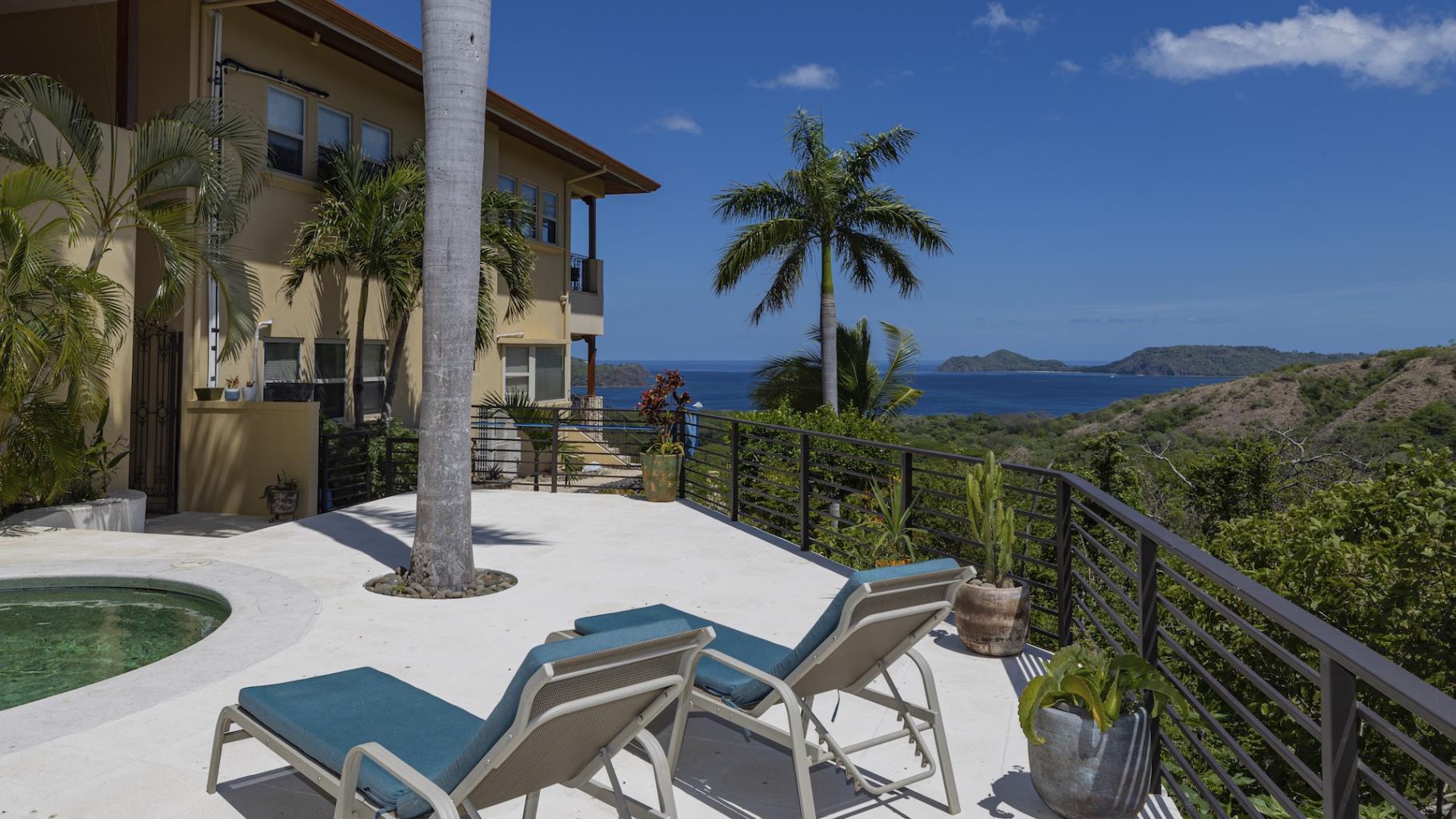Luxury three-bedroom, three-and-a-half-bath penthouse condo with a sumptuous private pool and ocean view terraces. This immaculately kept penthouse condo offers complete solitude, unimpeded panoramic ocean views, a private pool, and limitless ocean view decks. This well-built upper-level condo has 3 bedrooms, 3.5 bathrooms, a beautifully appointed kitchen, separate dining room, and living room, all of which connect seamlessly to the wrap-around covered ocean view terrace, which offers stunning panoramic views from virtually every corner of this unique space. The main bedroom includes an ensuite bathroom and a stunning ocean view, as well as direct access to the patio. The other two bedrooms feature ensuite baths and private woodland views as well. There is a guest toilet and a large utility area with in-unit laundry. On the bottom level, there is a garage and a gated entrance that leads to the private pool and an expansive, recently built terrace with lots of shady sitting area, as well as an ample sunning deck and outdoor shower. This 2,400 square foot beauty is being sold UNFURNISHED and is part of the elite 11 unit Bay Point condo project hidden inside the quiet grounds of the Vistas del Pacifico gated neighbourhood, which features an excellent ocean view common pool and tennis court. This magnificent location is located high on a hill in Playa Panama and offers one of the most private settings in the entire Papagayo area. Built by North Americans to exceed the most discriminating buyer's expectations. It is only a few minutes by car to Playa Panama or a few more minutes to Playa Hermosa or Playas del Coco, where you can find a fantastic selection of local restaurants, a large range of shopping options, medical clinics and hospitals, and all services you require. Only 20 minutes to Guanacaste International Airport (LIR) and another 15 minutes to Liberia, Guanacaste's provincial capital. Bring your furniture and make your move to your dream location now!