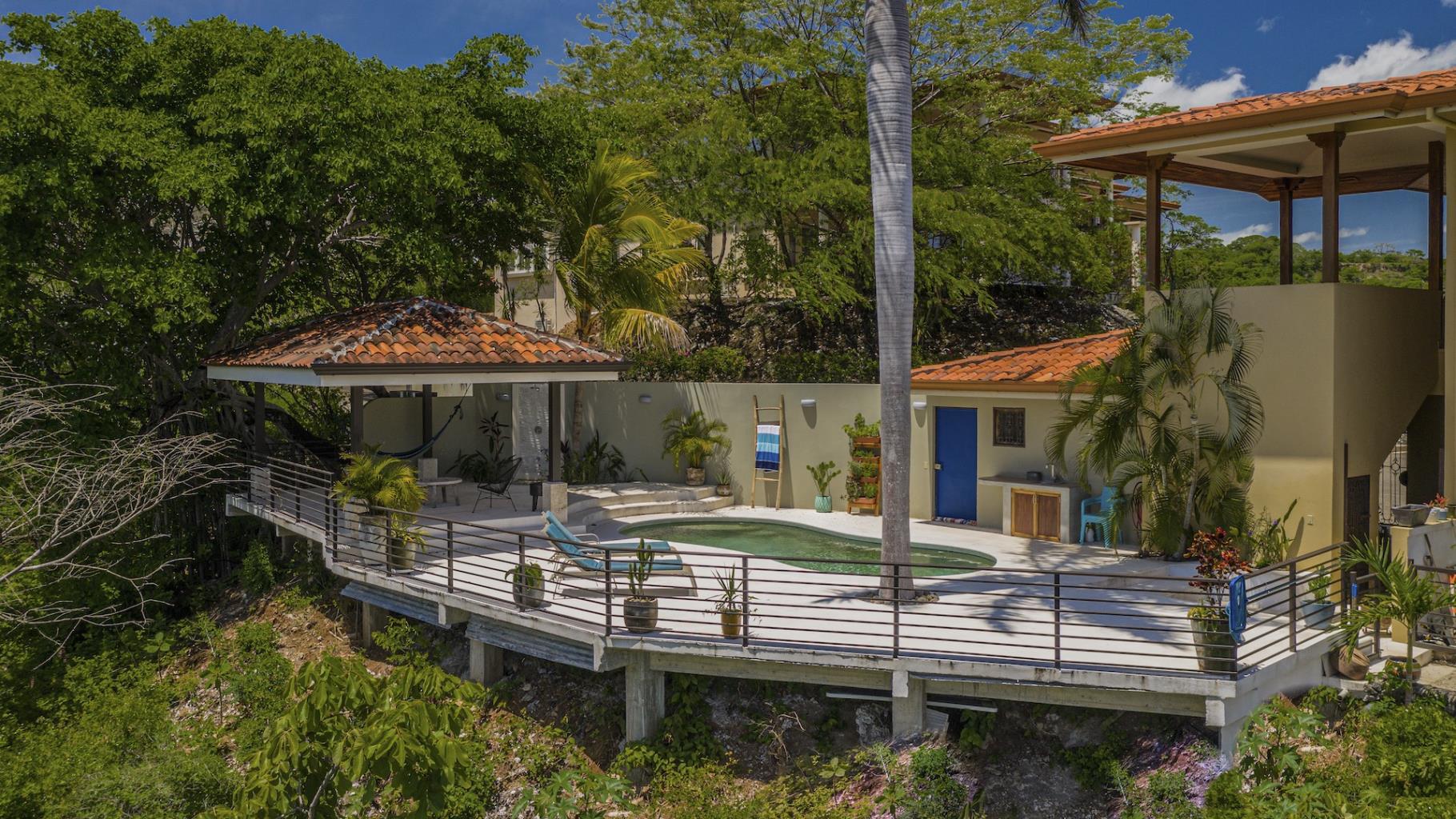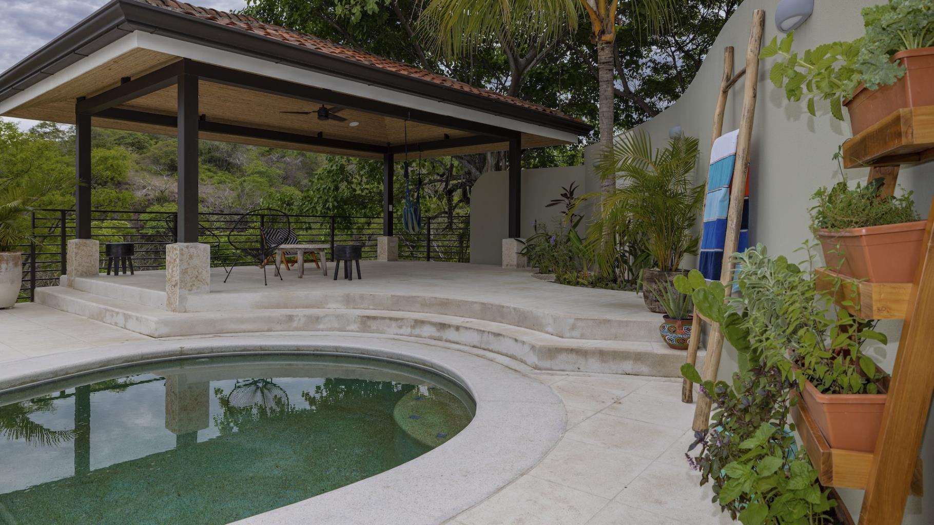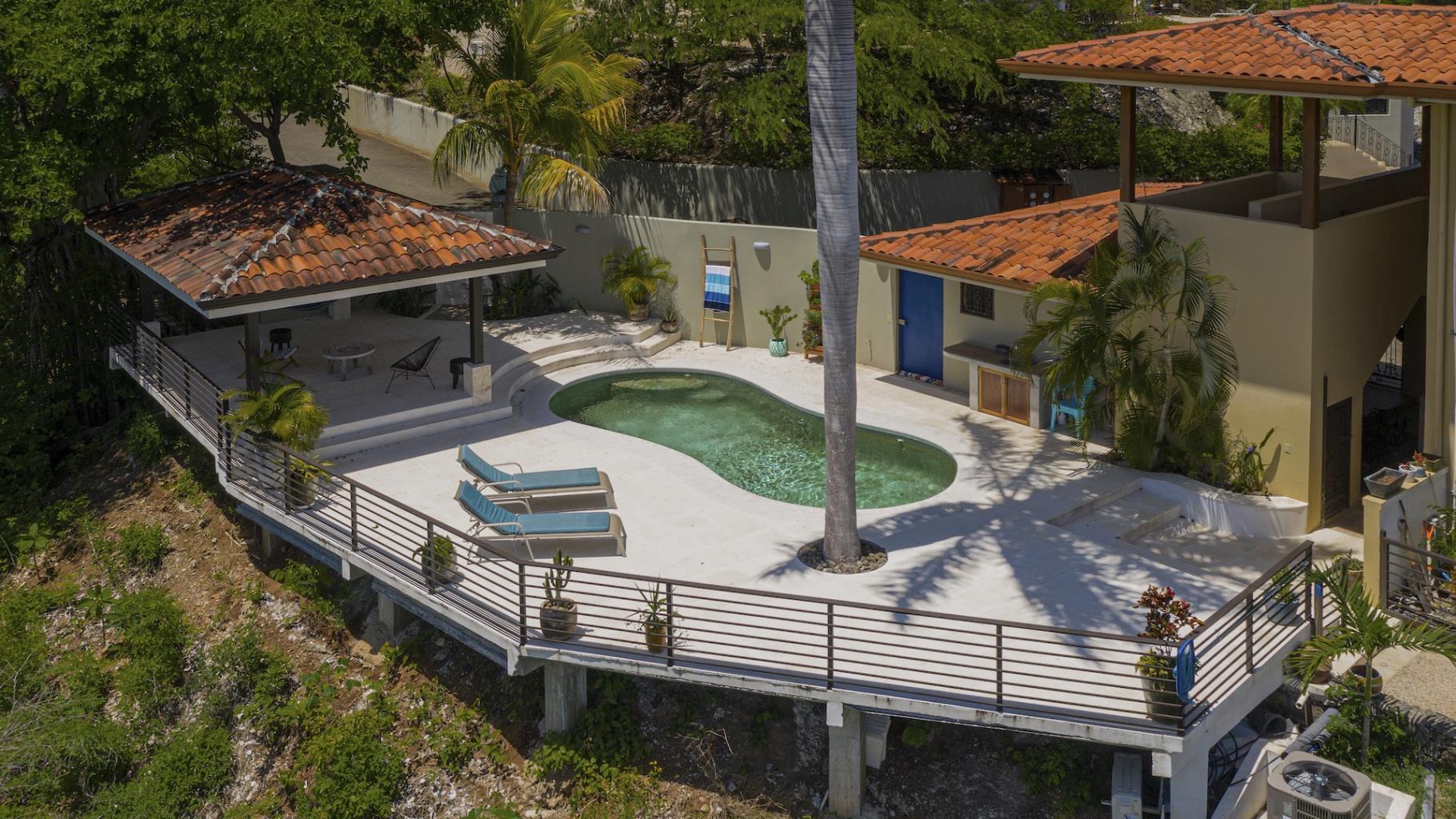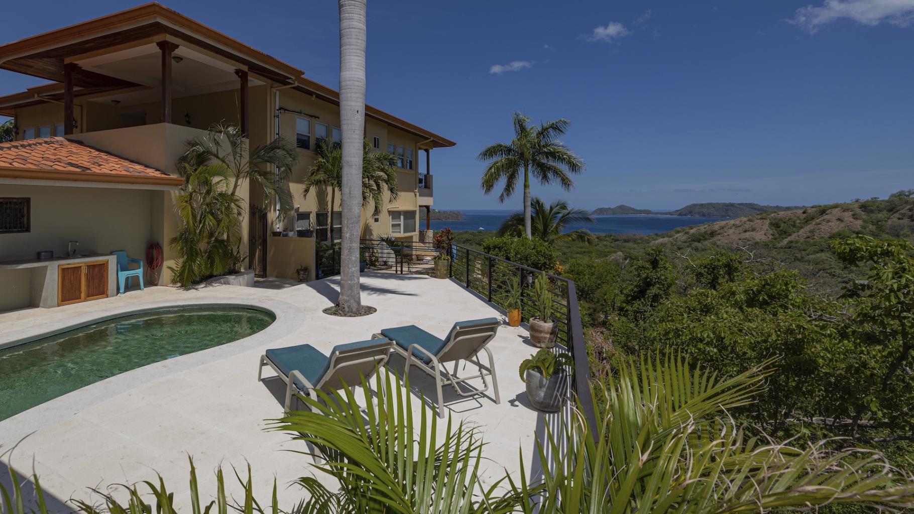 Luxury three-bedroom, three-and-a-half-bath penthouse condo with a sumptuous private pool and ocean view terraces. This immaculately kept penthouse condo offers complete solitude, unimpeded panoramic ocean views, a private pool, and limitless ocean view decks. This well-built upper-level condo has 3 bedrooms, 3.5 bathrooms, a beautifully appointed kitchen, separate dining room, and living room, all of which connect seamlessly to the wrap-around covered ocean view terrace, which offers stunning panoramic views from virtually every corner of this unique space. The main bedroom includes an ensuite bathroom and a stunning ocean view, as well as direct access to the patio. The other two bedrooms feature ensuite baths and private woodland views as well. There is a guest toilet and a large utility area with in-unit laundry. On the bottom level, there is a garage and a gated entrance that leads to the private pool and an expansive, recently built terrace with lots of shady sitting area, as well as an ample sunning deck and outdoor shower. This 2,400 square foot beauty is being sold UNFURNISHED and is part of the elite 11 unit Bay Point condo project hidden inside the quiet grounds of the Vistas del Pacifico gated neighbourhood, which features an excellent ocean view common pool and tennis court. This magnificent location is located high on a hill in Playa Panama and offers one of the most private settings in the entire Papagayo area. Built by North Americans to exceed the most discriminating buyer's expectations. It is only a few minutes by car to Playa Panama or a few more minutes to Playa Hermosa or Playas del Coco, where you can find a fantastic selection of local restaurants, a large range of shopping options, medical clinics and hospitals, and all services you require. Only 20 minutes to Guanacaste International Airport (LIR) and another 15 minutes to Liberia, Guanacaste's provincial capital. Bring your furniture and make your move to your dream location now!
