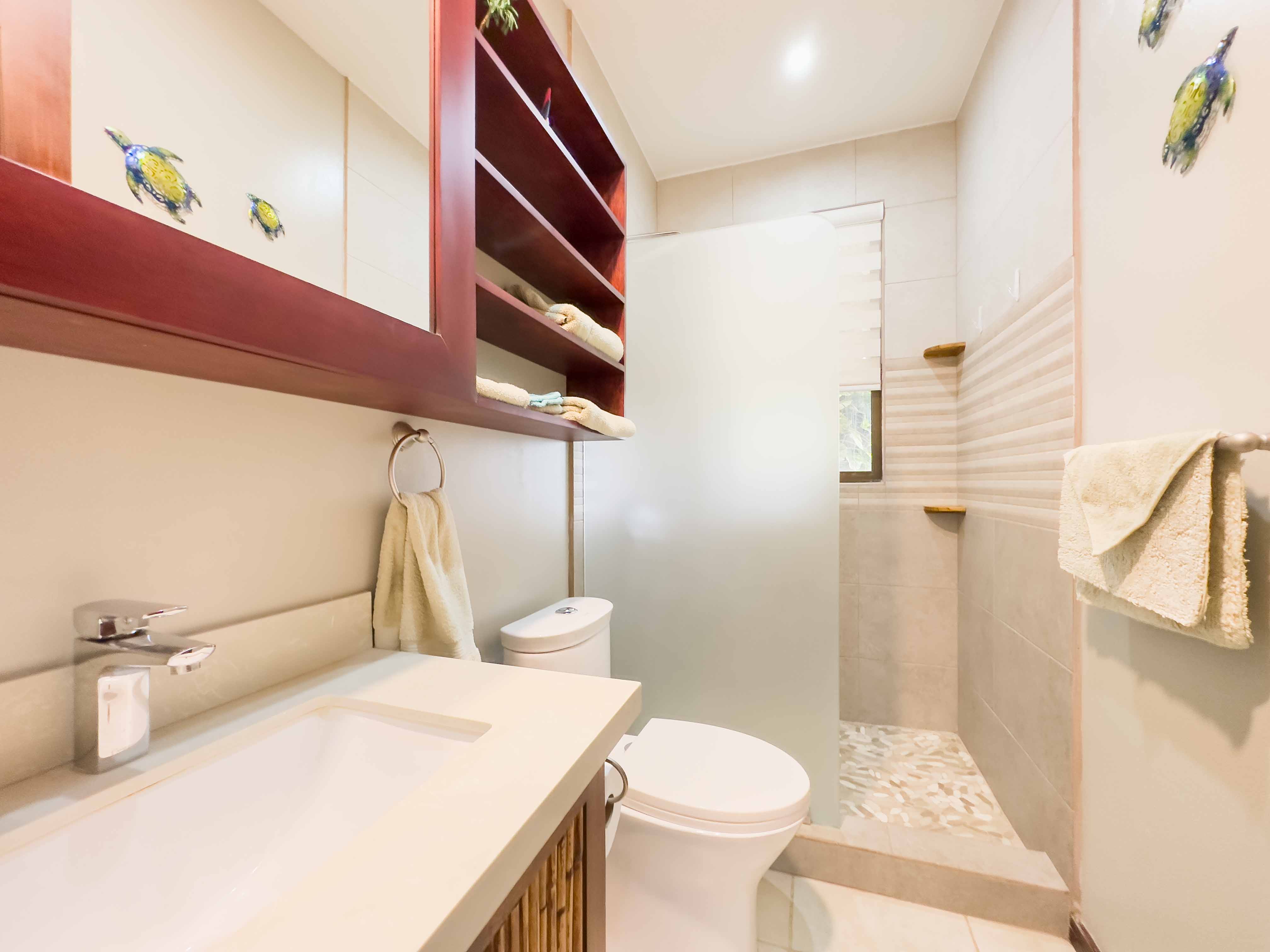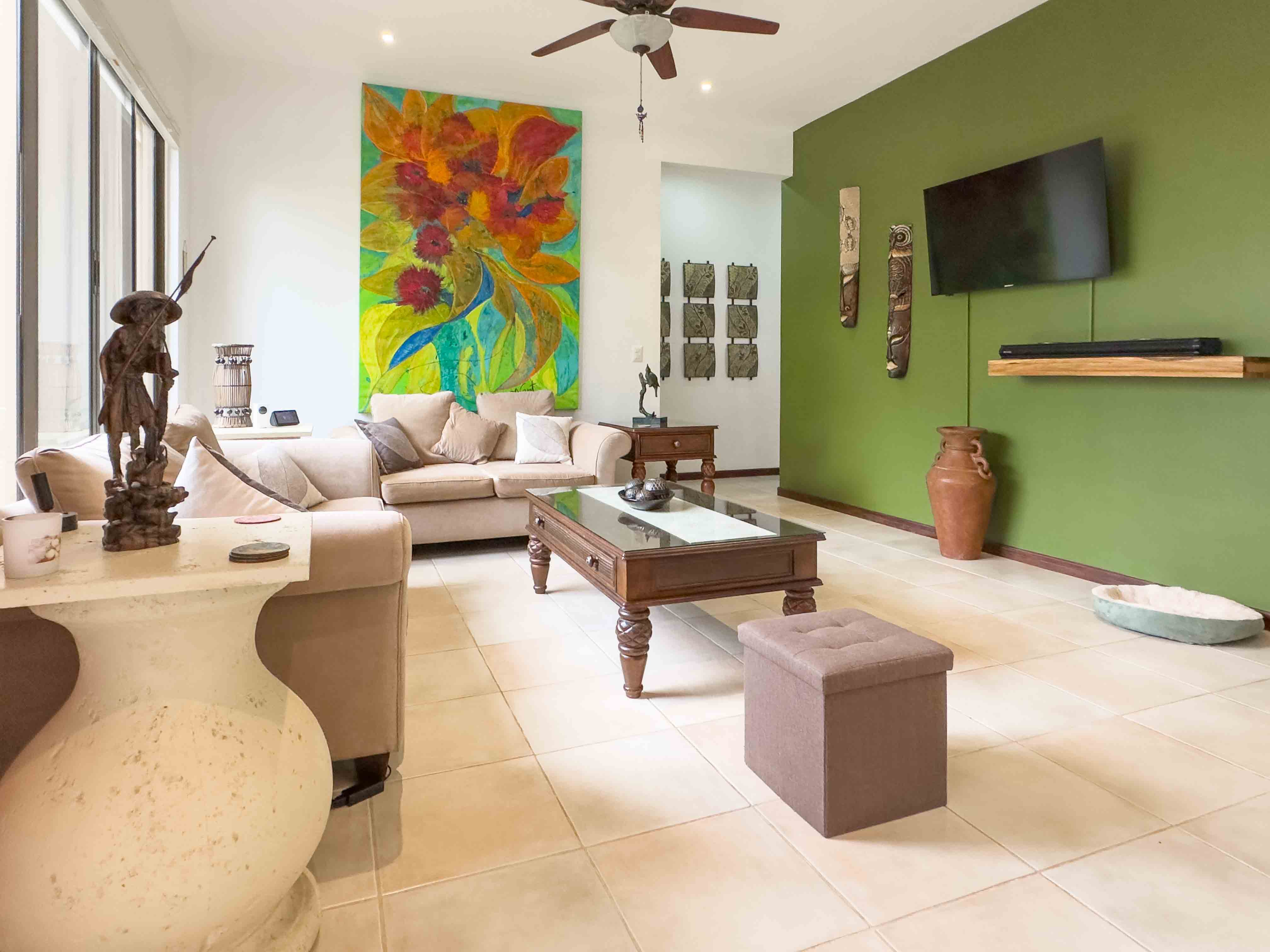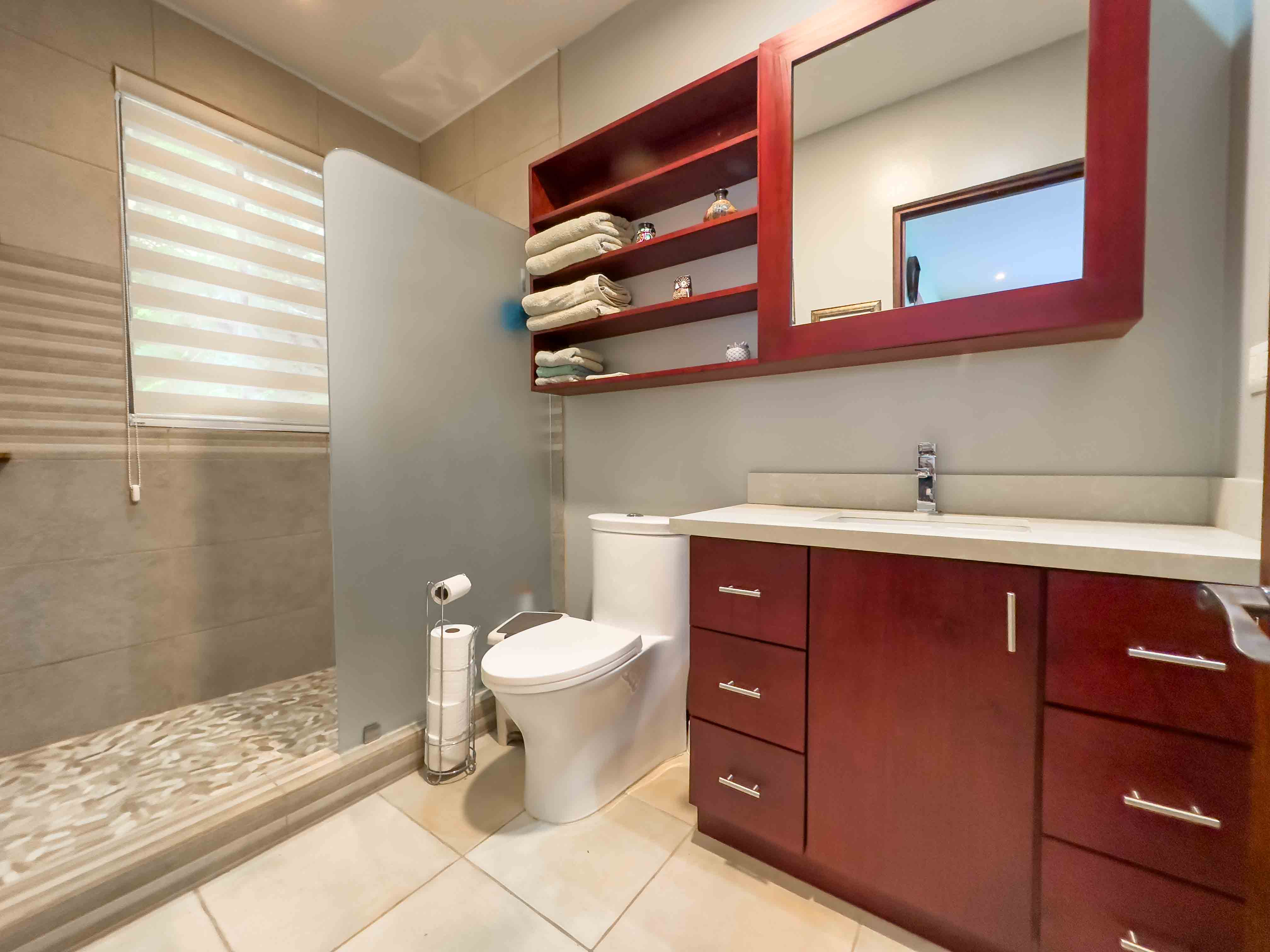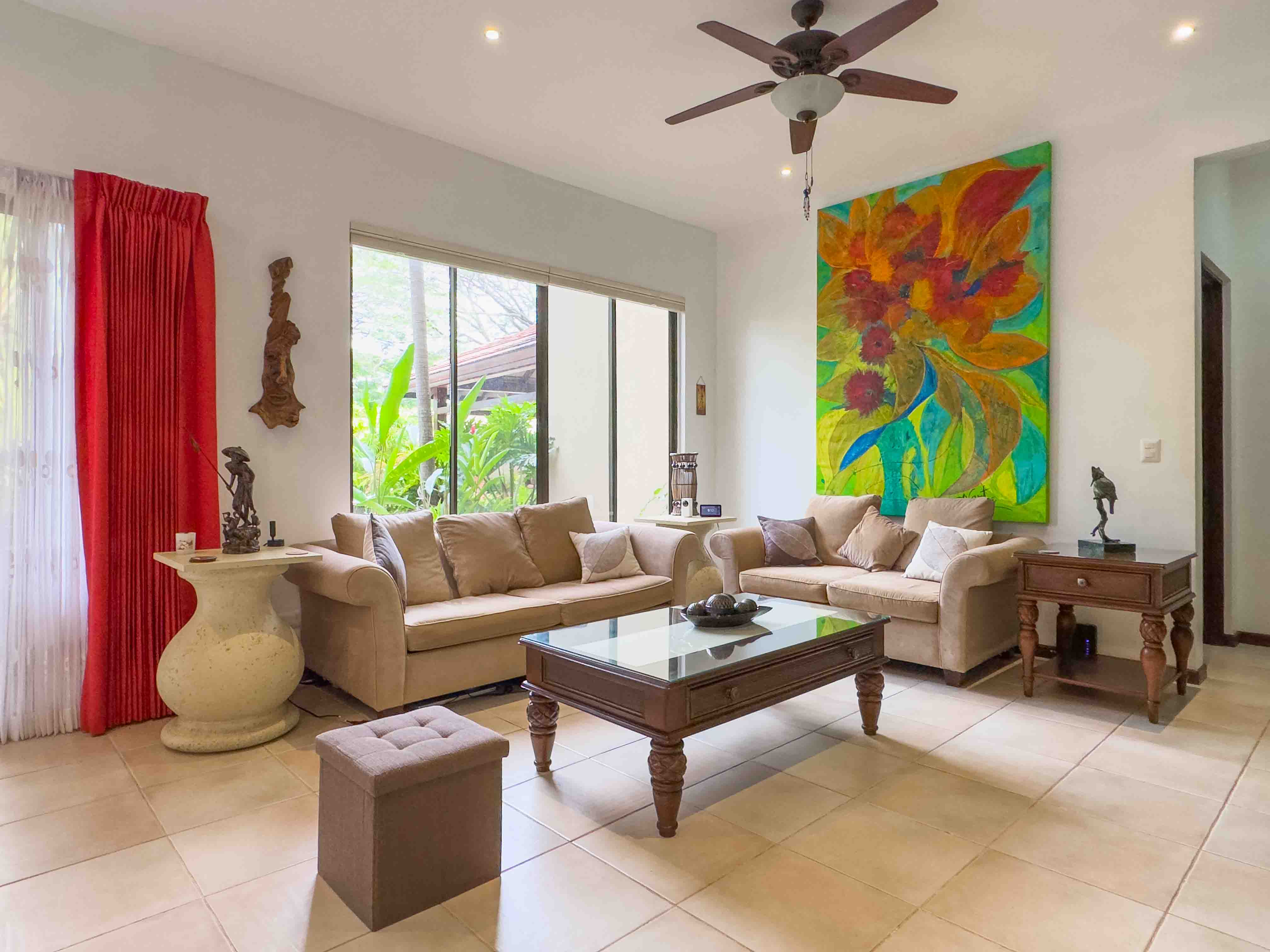Sombras which translates to "Shades" is surrounded by beautiful big trees that are often visited by Howler Monkeys, Iguanas, hummingbirds, and White-throated magpie-jay just to name a few of the beautiful birds, and lush gardens with tropical flowers. Two swimming pools with comfortable sun lounge chairs and a rancho area with a bathroom.