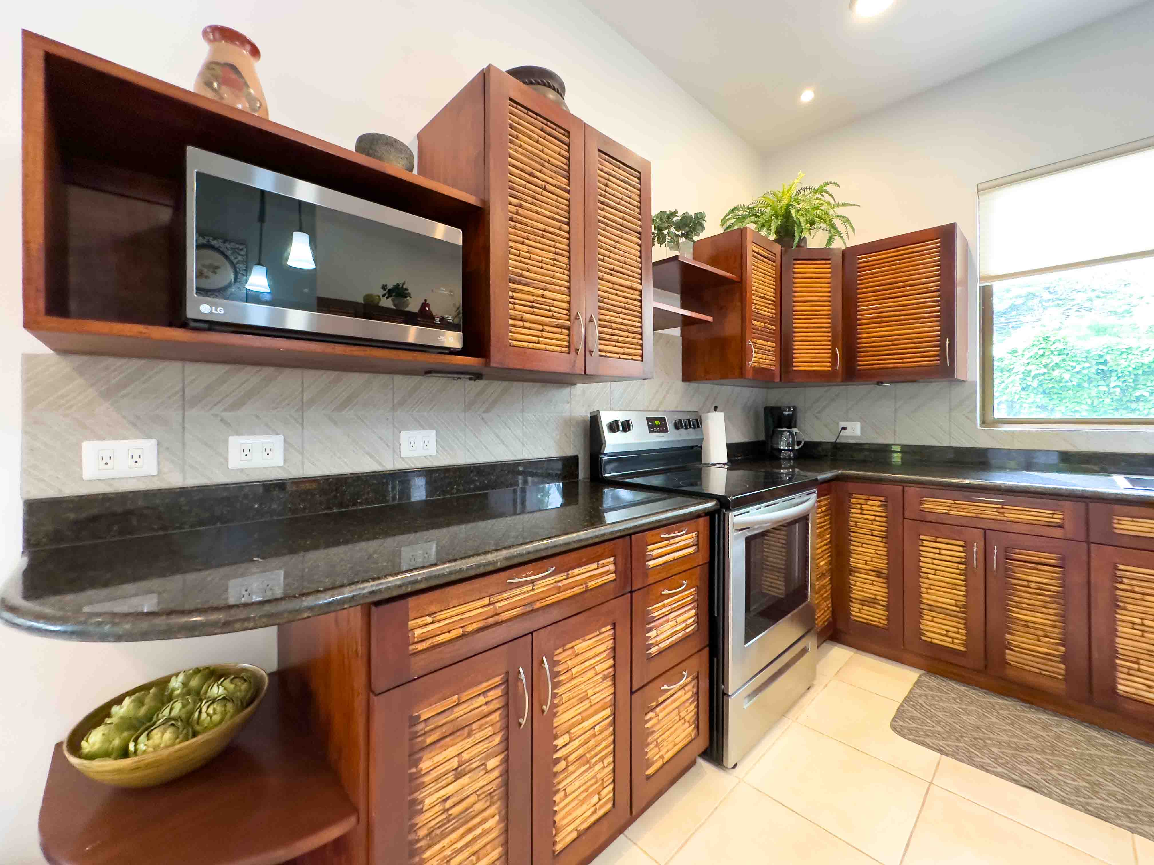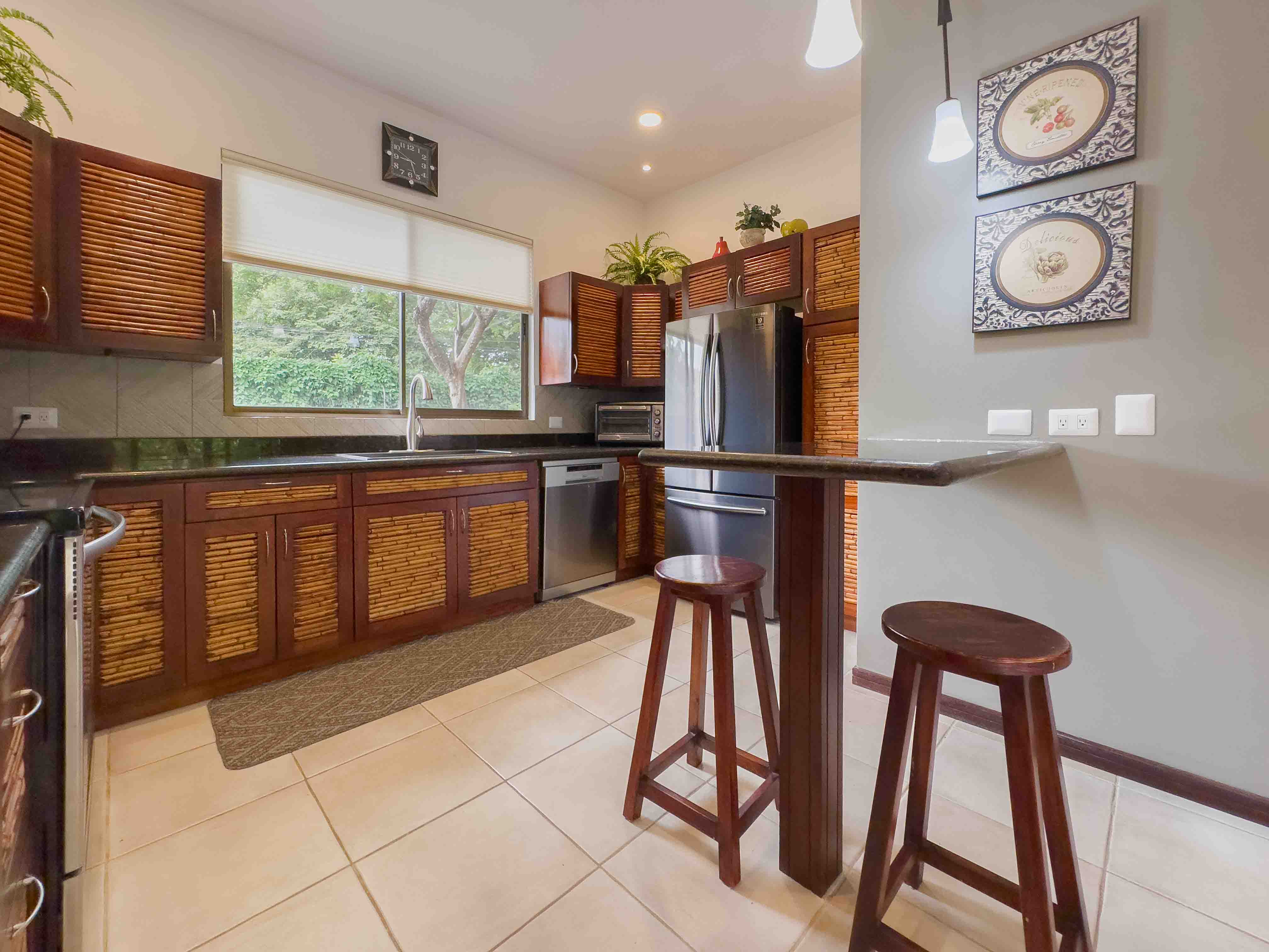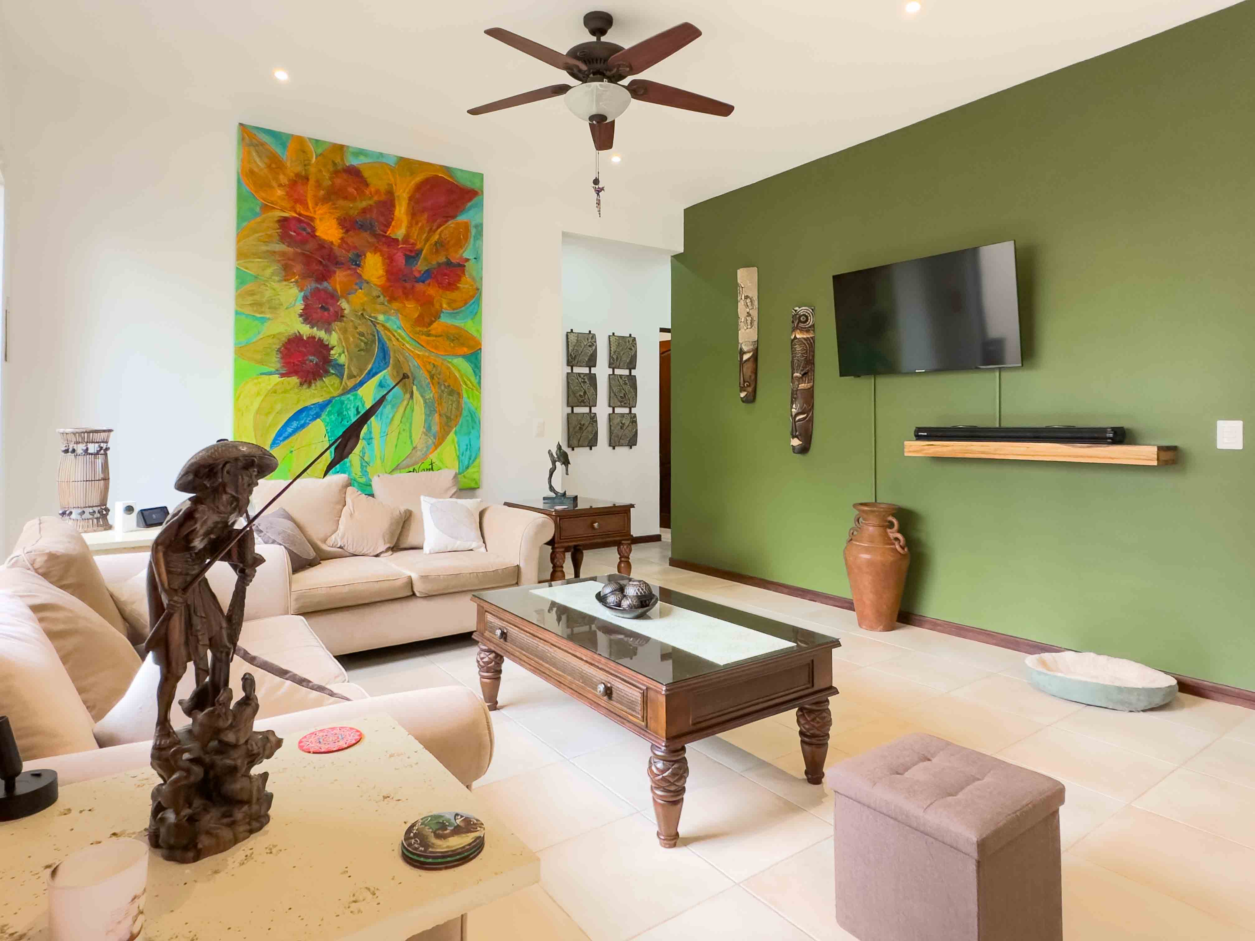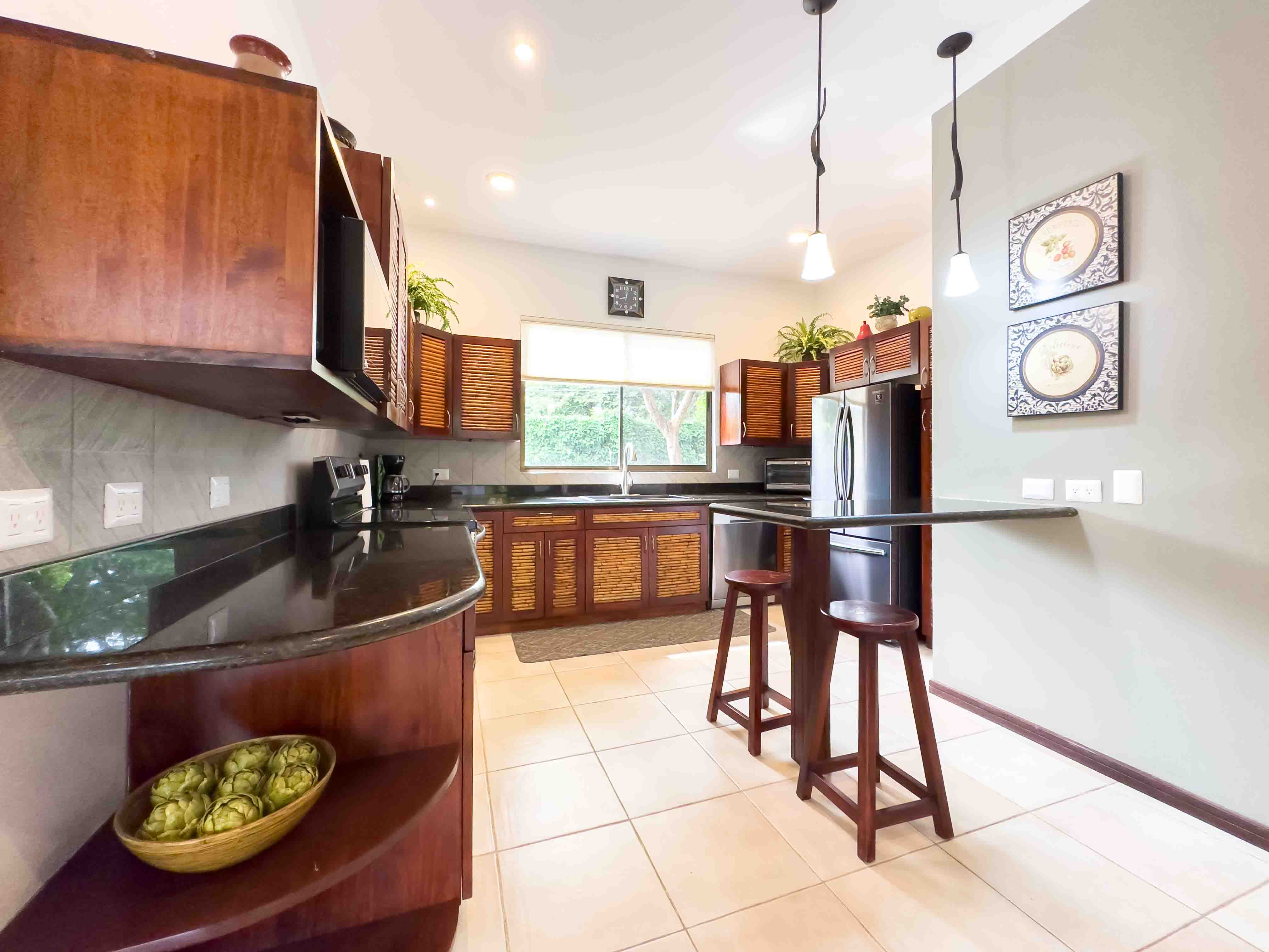 Sombras which translates to "Shades" is surrounded by beautiful big trees that are often visited by Howler Monkeys, Iguanas, hummingbirds, and White-throated magpie-jay just to name a few of the beautiful birds, and lush gardens with tropical flowers. Two swimming pools with comfortable sun lounge chairs and a rancho area with a bathroom.