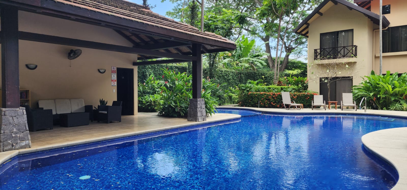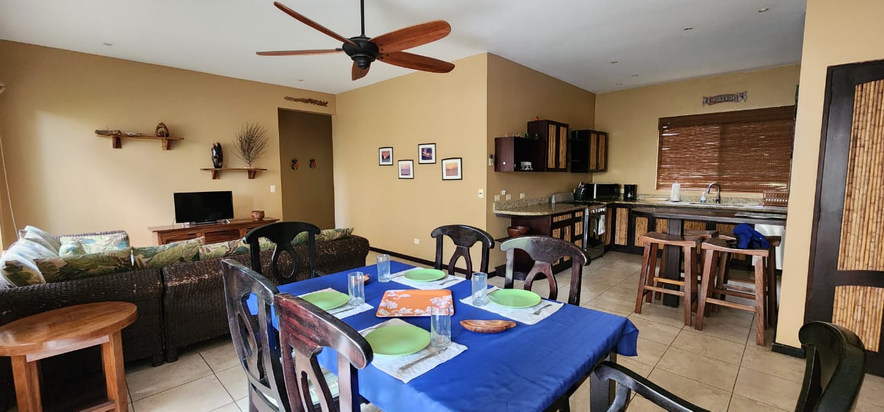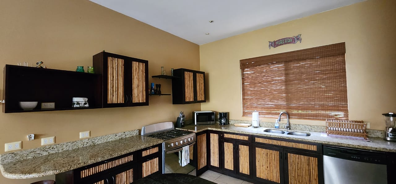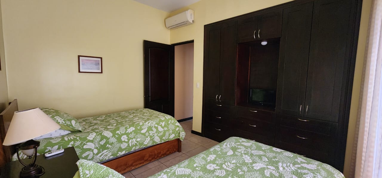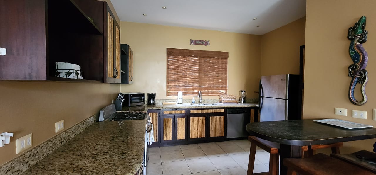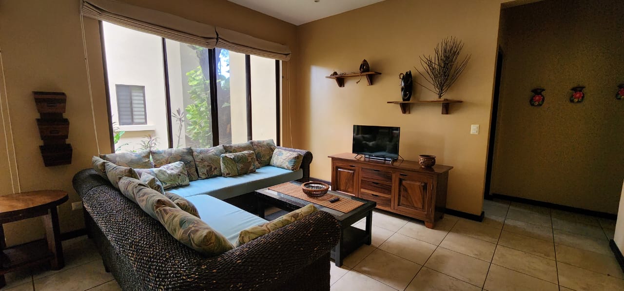 Experience the elegance of Sombras "The Shades," an exquisite main-level condo just one block from the beach, designed by renowned architect Ronald Zurcher. This exclusive, fully furnished 3-bedroom, 2-bathroom condo offers the perfect blend of convenience and luxury, situated just a short stroll from both the beach and downtown Playas del Coco. The master suite features a king-sized bed and en-suite bathroom, while the second bedroom has a queen bed, and the third is appointed with two twin beds. The open-concept living, dining, and kitchen area is ideal for entertaining or unwinding, complete with in-suite laundry, cable TV, and internet. Located within a gated community with 24-hour security, Sombras provides a serene and intimate setting, with only 26 luxury units. Just steps away from the pool, this main-level condo offers easy access to morning or sunset beach walks and amenities such as air conditioning, a balcony, and parking. The fully equipped kitchen, vaulted ceilings, and spacious balcony with a built-in grill enhance the comfort and luxury of this exceptional vacation retreat. The Homeowners Association (HOA) fees are $1,646.70 per quarter, equating to $548.67 per month.