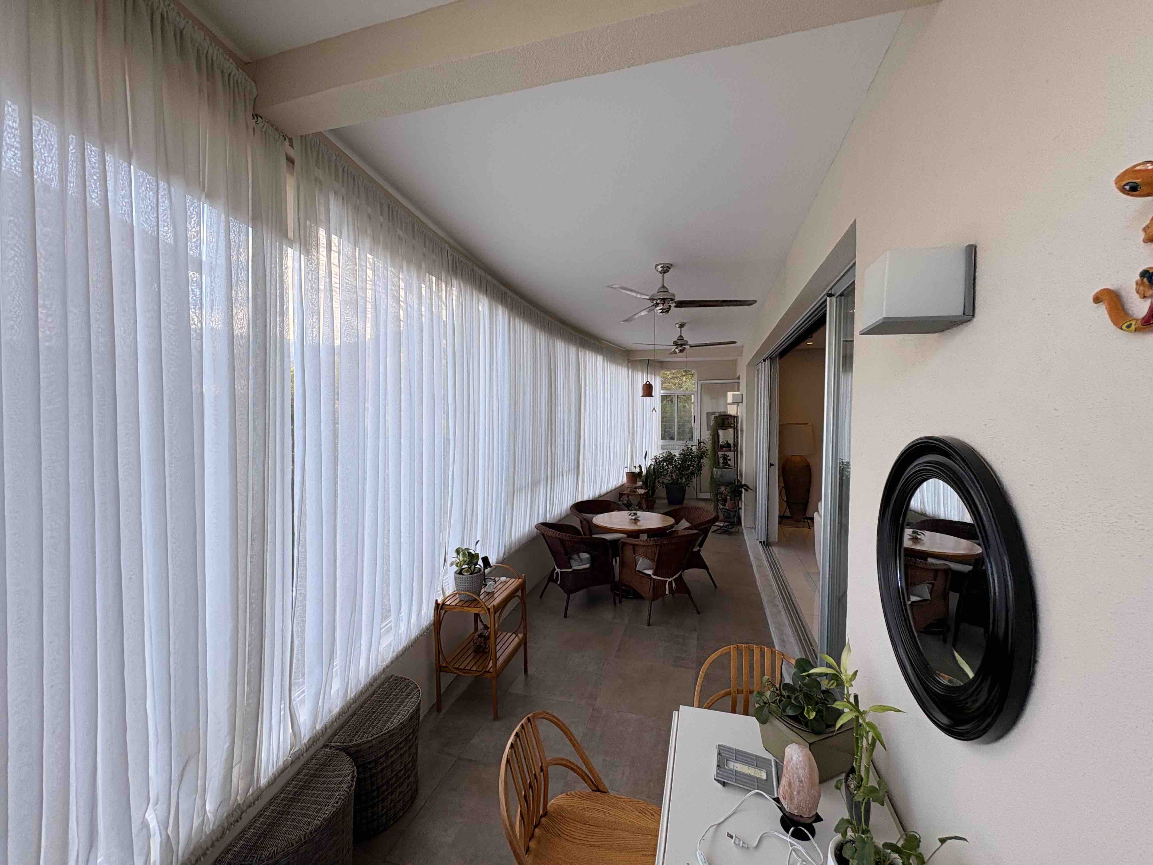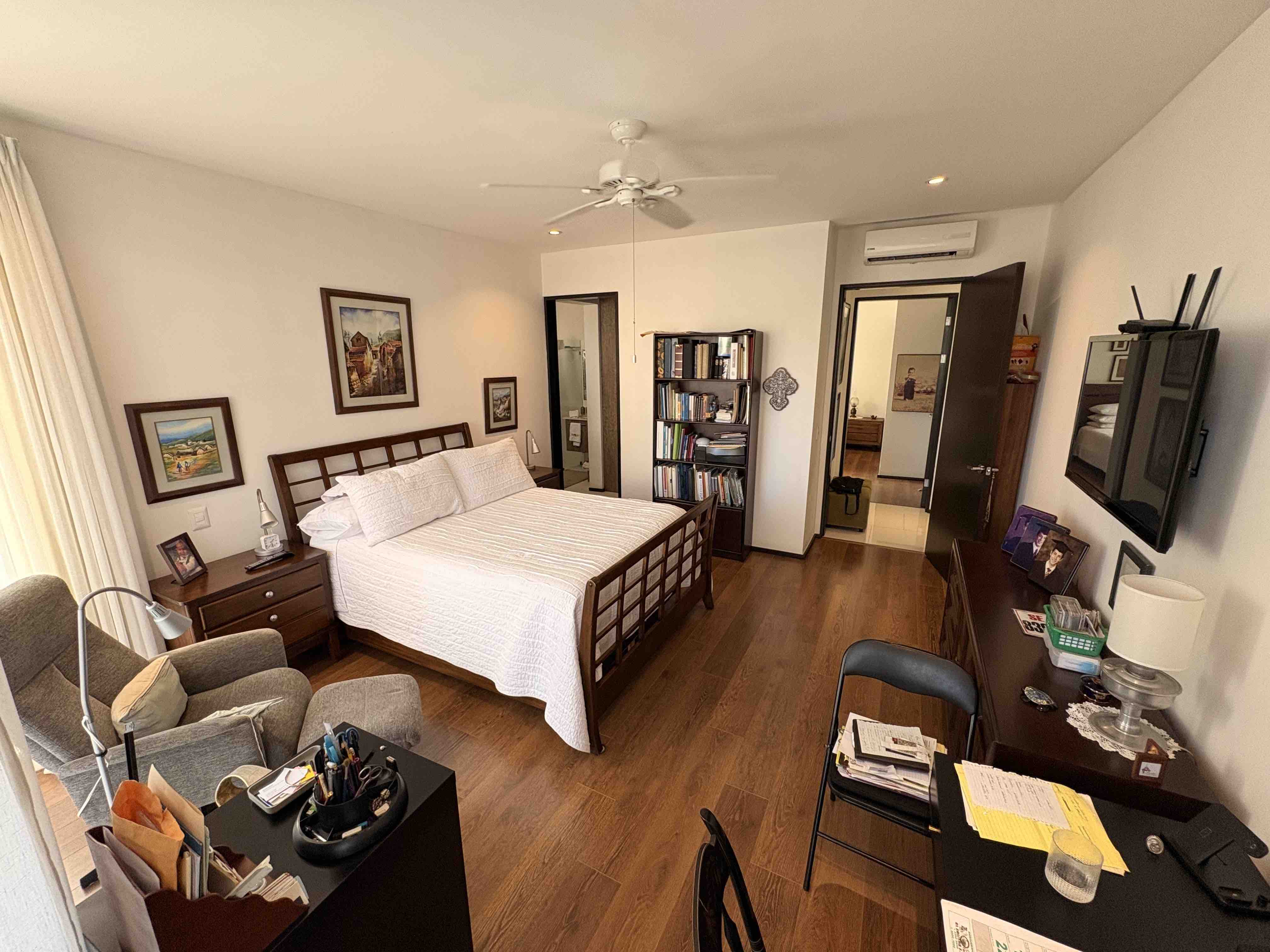 The apartment is delivered with window treatments, ceiling fans, air conditioning, and appliances, ready to move in. Includes 2 parking spaces and a storage unit.