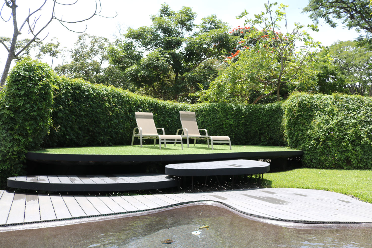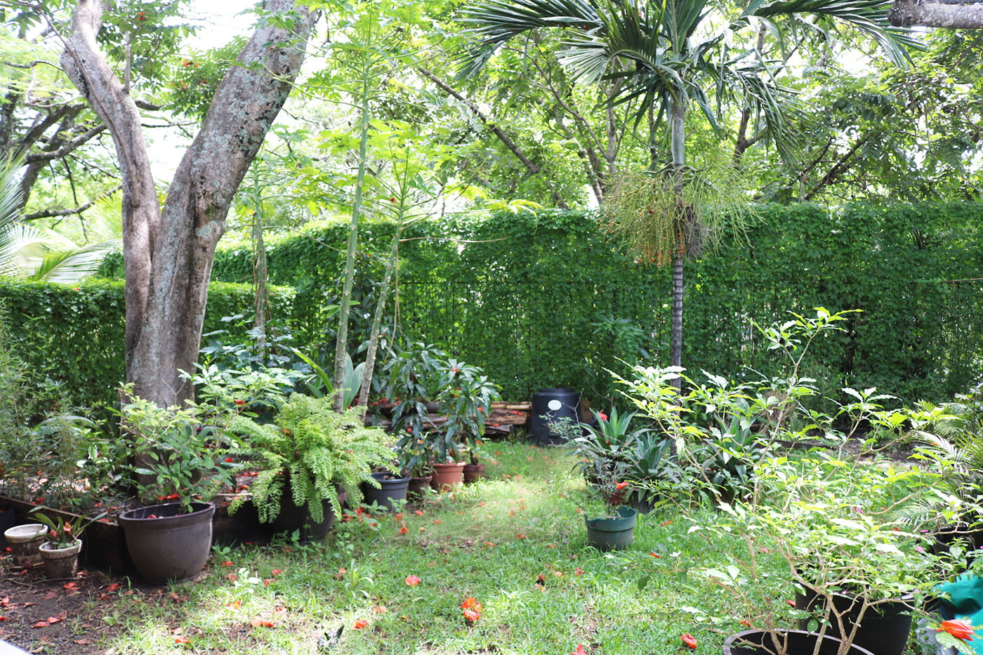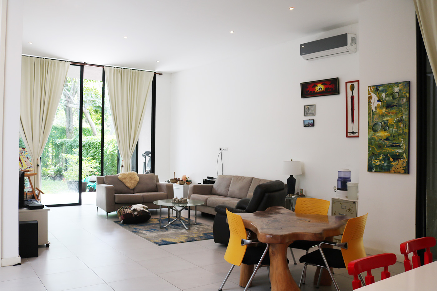 The house is ONE FLOOR, 2,530 sq ft (235 m2) construction, contemporary design and beautiful finishes. Kitchen, living room and dining room, open, with good spaces and distribution and high ceilings, windows and sliding doors that allow the breeze and natural light to run through the house all day. Several internal patios and a backyard, well decorated, with zacate, beautiful plants and mature trees. Each room has its own private bathroom and closet, the master bedroom has a very spacious walk-in closet, its own private bathroom and access to the garden.