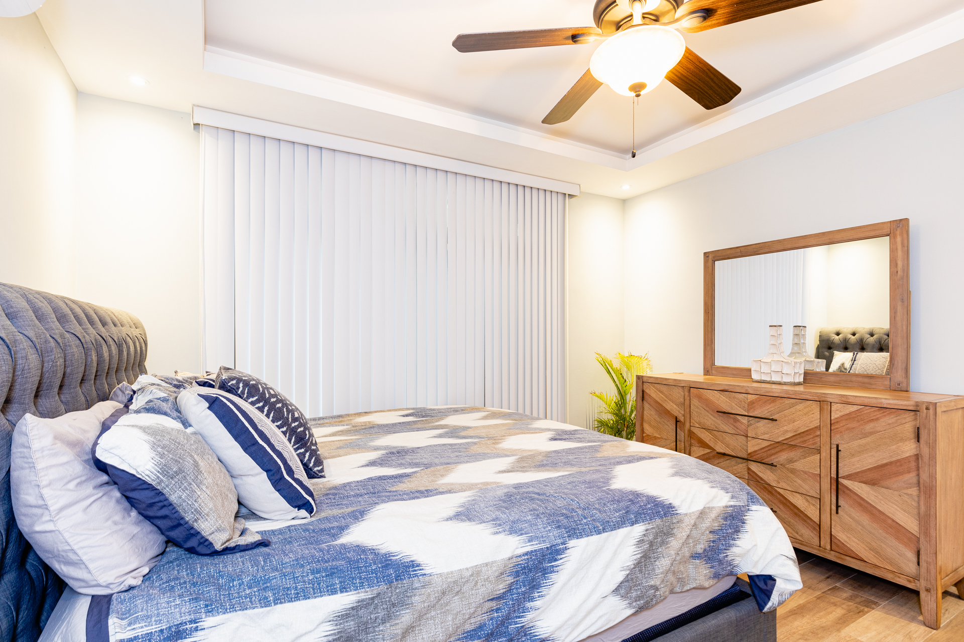 The 3 bedrooms are well sized making this an ideal rental property or a family home. The master has a spacious en suite bathroom and walk in closet with high quality finishes throughout and comes with fitted wardrobes. The second bedroom shares a bathroom with the third bedroom and both are comfortably furnished for a home or high quality rental allowing for multiple guests.