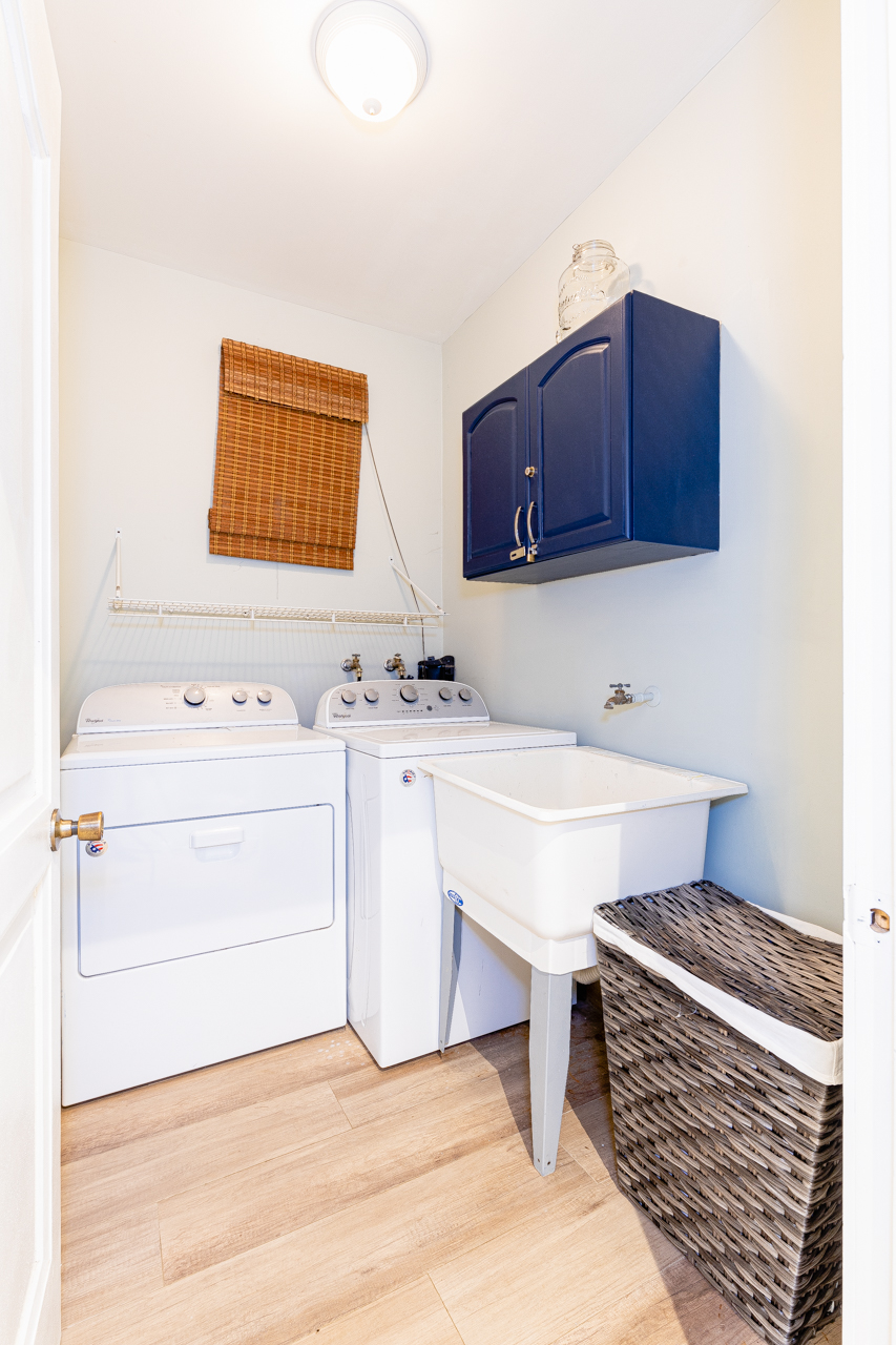 The home is well sized at just over 1500 square feet and has been designed to enable to owners/renters to maximize this space. As you enter the home you are welcomed by a spacious open yet cozy feeling kitchen and living space. The kitchen is fully equipped incorporating a microwave, a large fridge, ample storage and a full size oven and stove top. The living area has comfortable seating in fort of the flat screen TV, storage and a dining table for 6 people.