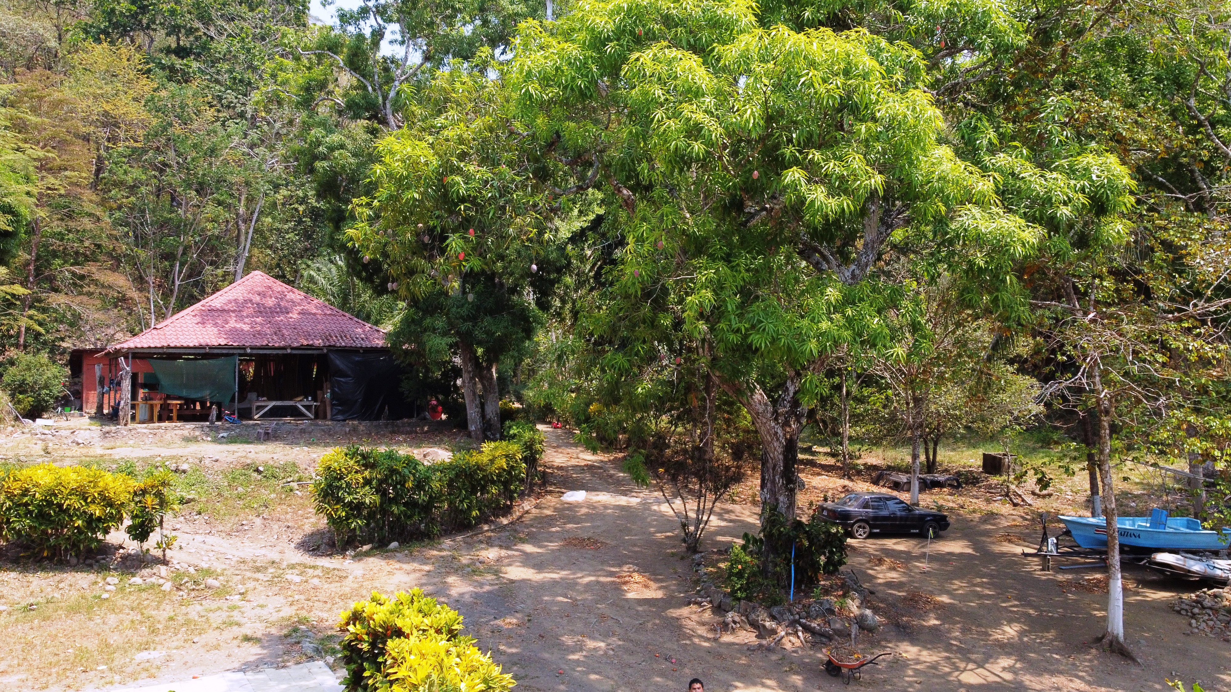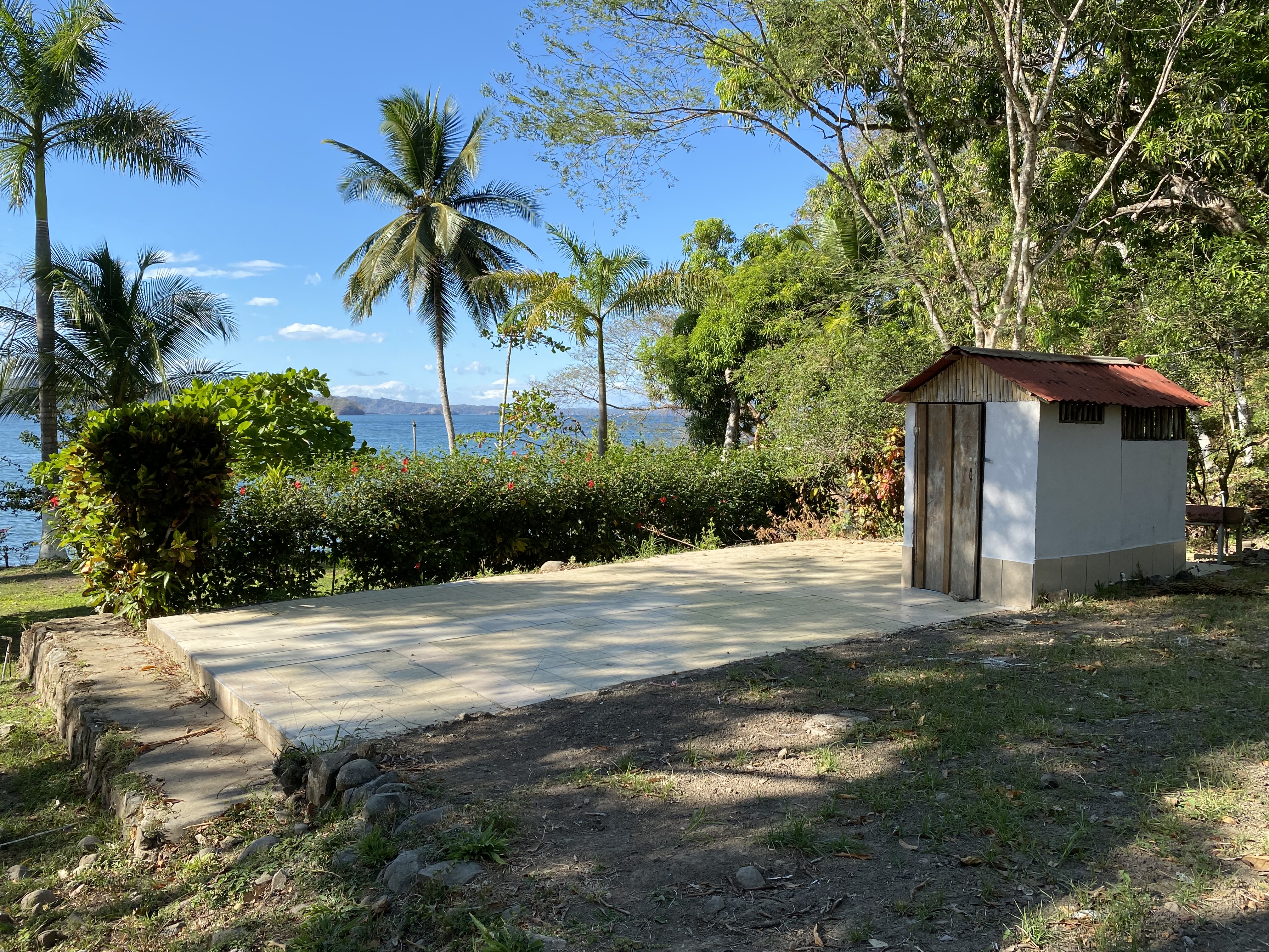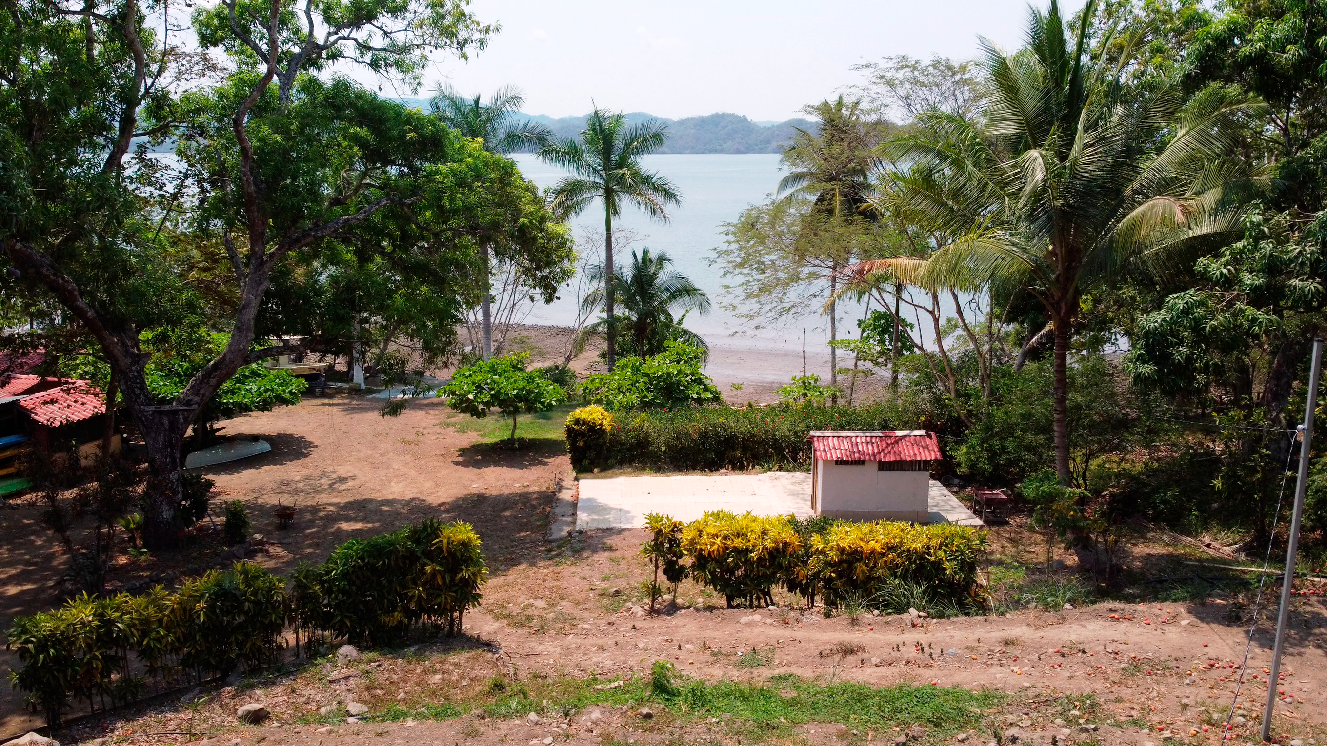 BEST Beachfront Property Available! 10 Acres – Private Estate or Boutique Eco Hotel $680,000 We are offering a rare Beachfront 10 Acre Property that borders the calm waters of the Gulf of Nicoya and is just 10 minutes to the town of Paquera. This property is an ideal location for a Private Beachfront Estate or an Eco Hotel. The gentle rise of the property allows for panoramic ocean views for future homes or cabinas. This is a family property that has been used for camping, celebratory events, water sports and a beautiful ‘get away’ for several decades for the whole family, just 10 minutes from town. A cement boat ramp provides for boat tours and fishing trips. On this very private location, you can enjoy SUP riding, kayaking, swimming, snorkeling, fishing and is the site of the Bioluminescence tours that pass by just in front every evening. The entry road is very private and lined with mature hibiscus and banana plants. There is a fruit orchard as well as dozens of mango trees aroung the property. Also included is a 220-tree cacao plantation. During the dry season, the plants and fruit trees are irrigated by the excellent well. In the lower part of the property there is a large container used as a bodega and a caretakers home. Next to that is a large rancho used for a wood workshop and storing cut wood. On the site of the original house is a cement pad and a bath with shower. Across from this pad there is another container-type bodega and two cabinas next to the beach with an outdoor kitchen. Alltogether there are 3 Bedrooms and 3 Baths, two kitchens, two bodegas and a rancho. • Workers house with kitchen and full bath • Large Workshop / Wood storage Rancho • 2 Large Container-type Bodegas • Cement pad with Bathroom/Shower • 2 Cabinas • Outdoor Kitchen • Excellent well • Boat Ramp • Dozens of fruit trees • Cacao Plantation • Private Entry • 5 Minutes to the Ferry • 10 Minutes to Paquera • Calm waters of the Gulf of Nicoya • Panoramic View Lookout Spot