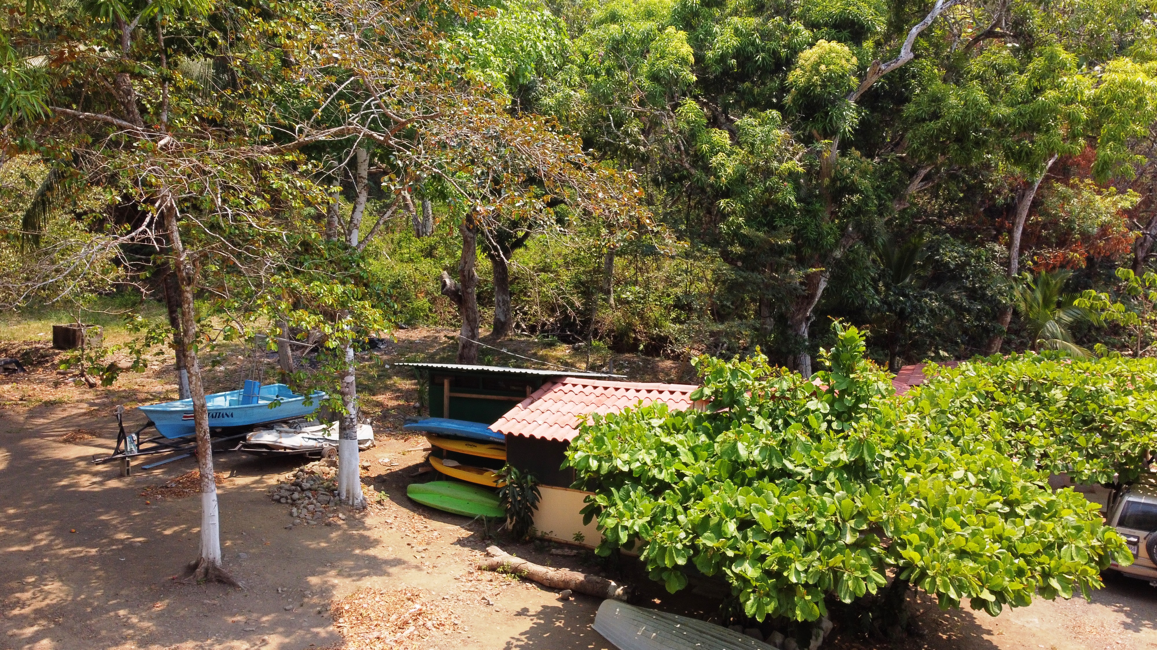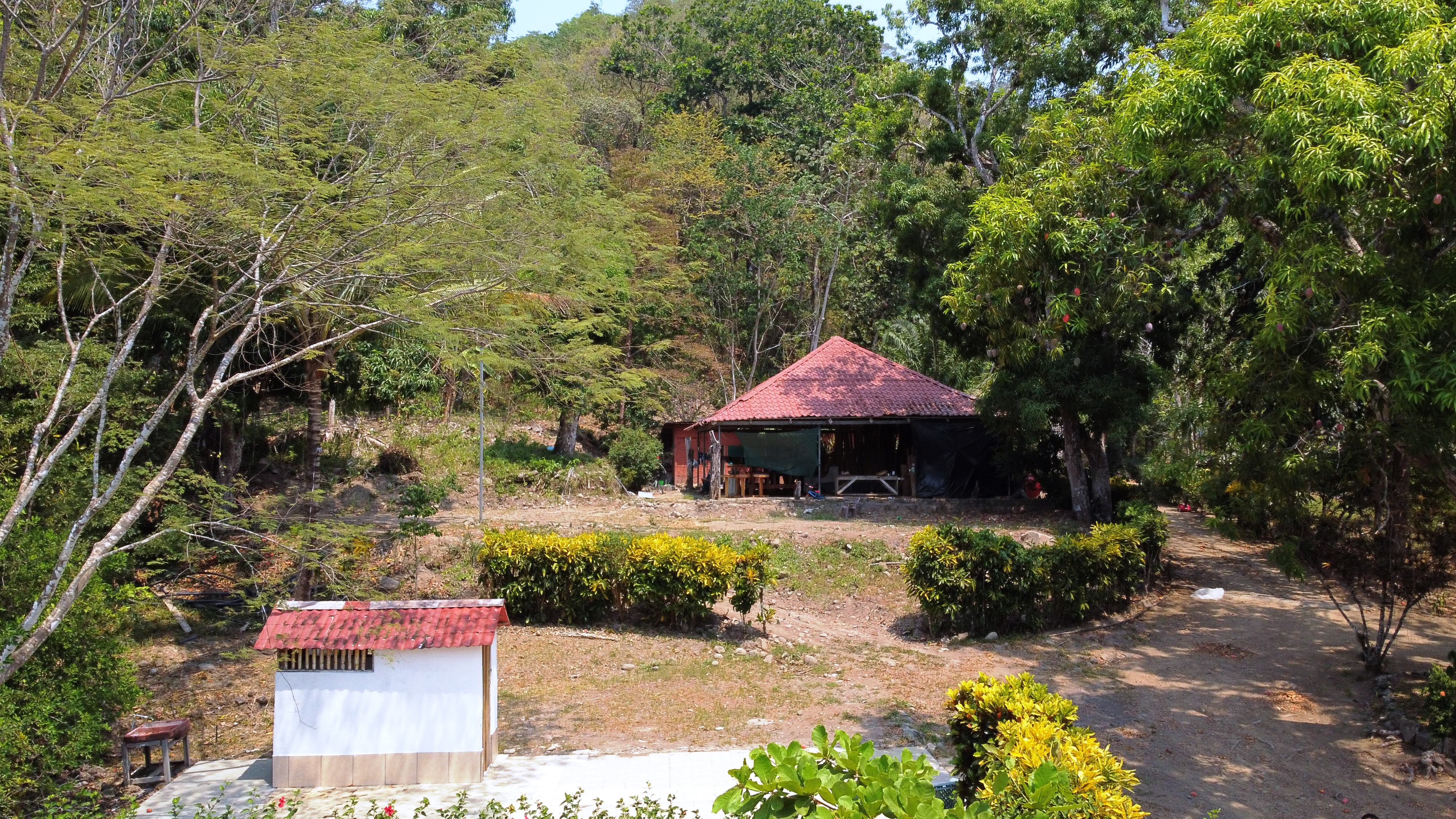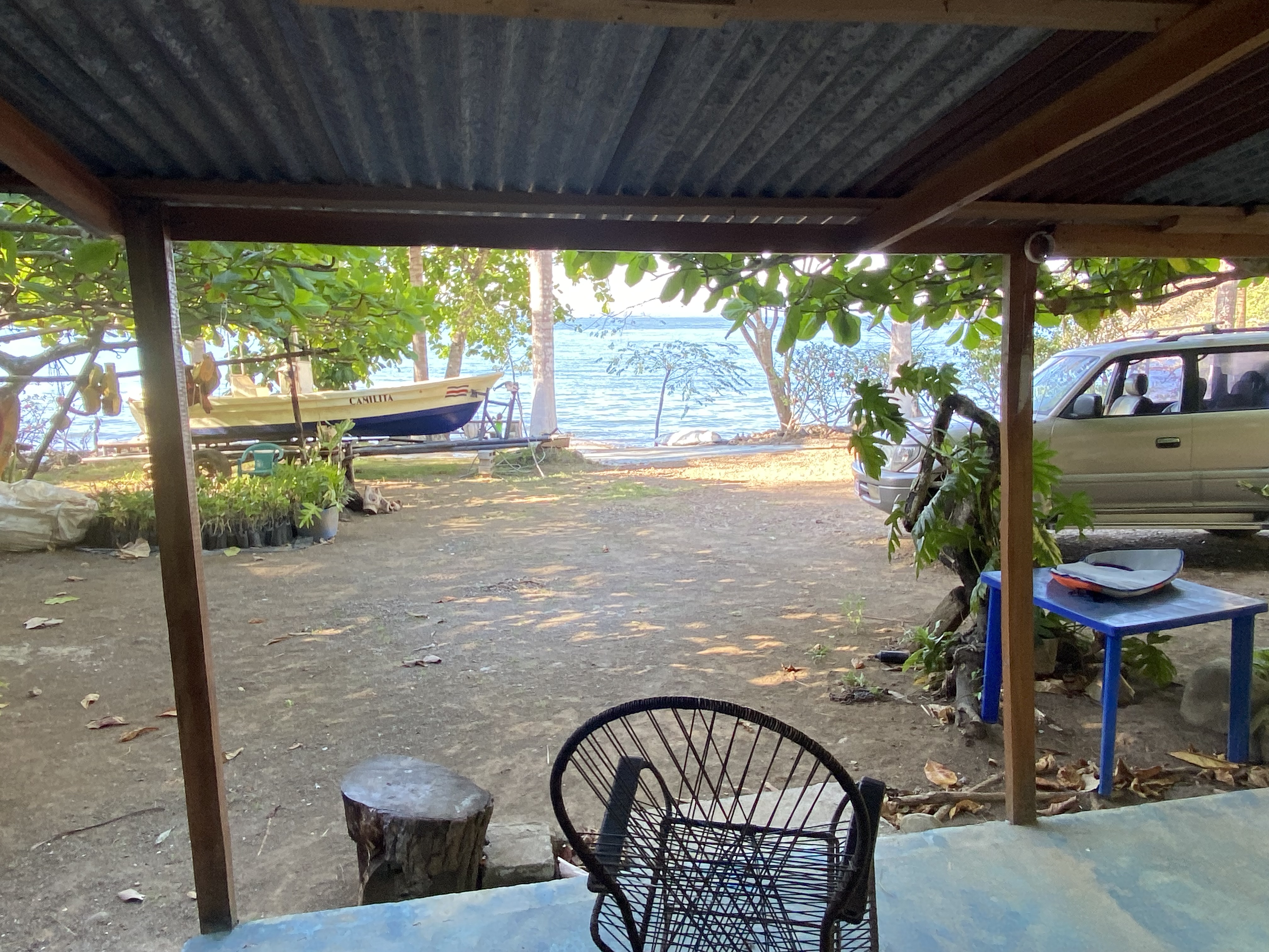 BEST Beachfront Property Available! 10 Acres – Private Estate or Boutique Eco Hotel $680,000 We are offering a rare Beachfront 10 Acre Property that borders the calm waters of the Gulf of Nicoya and is just 10 minutes to the town of Paquera. This property is an ideal location for a Private Beachfront Estate or an Eco Hotel. The gentle rise of the property allows for panoramic ocean views for future homes or cabinas. This is a family property that has been used for camping, celebratory events, water sports and a beautiful ‘get away’ for several decades for the whole family, just 10 minutes from town. A cement boat ramp provides for boat tours and fishing trips. On this very private location, you can enjoy SUP riding, kayaking, swimming, snorkeling, fishing and is the site of the Bioluminescence tours that pass by just in front every evening. The entry road is very private and lined with mature hibiscus and banana plants. There is a fruit orchard as well as dozens of mango trees aroung the property. Also included is a 220-tree cacao plantation. During the dry season, the plants and fruit trees are irrigated by the excellent well. In the lower part of the property there is a large container used as a bodega and a caretakers home. Next to that is a large rancho used for a wood workshop and storing cut wood. On the site of the original house is a cement pad and a bath with shower. Across from this pad there is another container-type bodega and two cabinas next to the beach with an outdoor kitchen. Alltogether there are 3 Bedrooms and 3 Baths, two kitchens, two bodegas and a rancho. • Workers house with kitchen and full bath • Large Workshop / Wood storage Rancho • 2 Large Container-type Bodegas • Cement pad with Bathroom/Shower • 2 Cabinas • Outdoor Kitchen • Excellent well • Boat Ramp • Dozens of fruit trees • Cacao Plantation • Private Entry • 5 Minutes to the Ferry • 10 Minutes to Paquera • Calm waters of the Gulf of Nicoya • Panoramic View Lookout Spot
