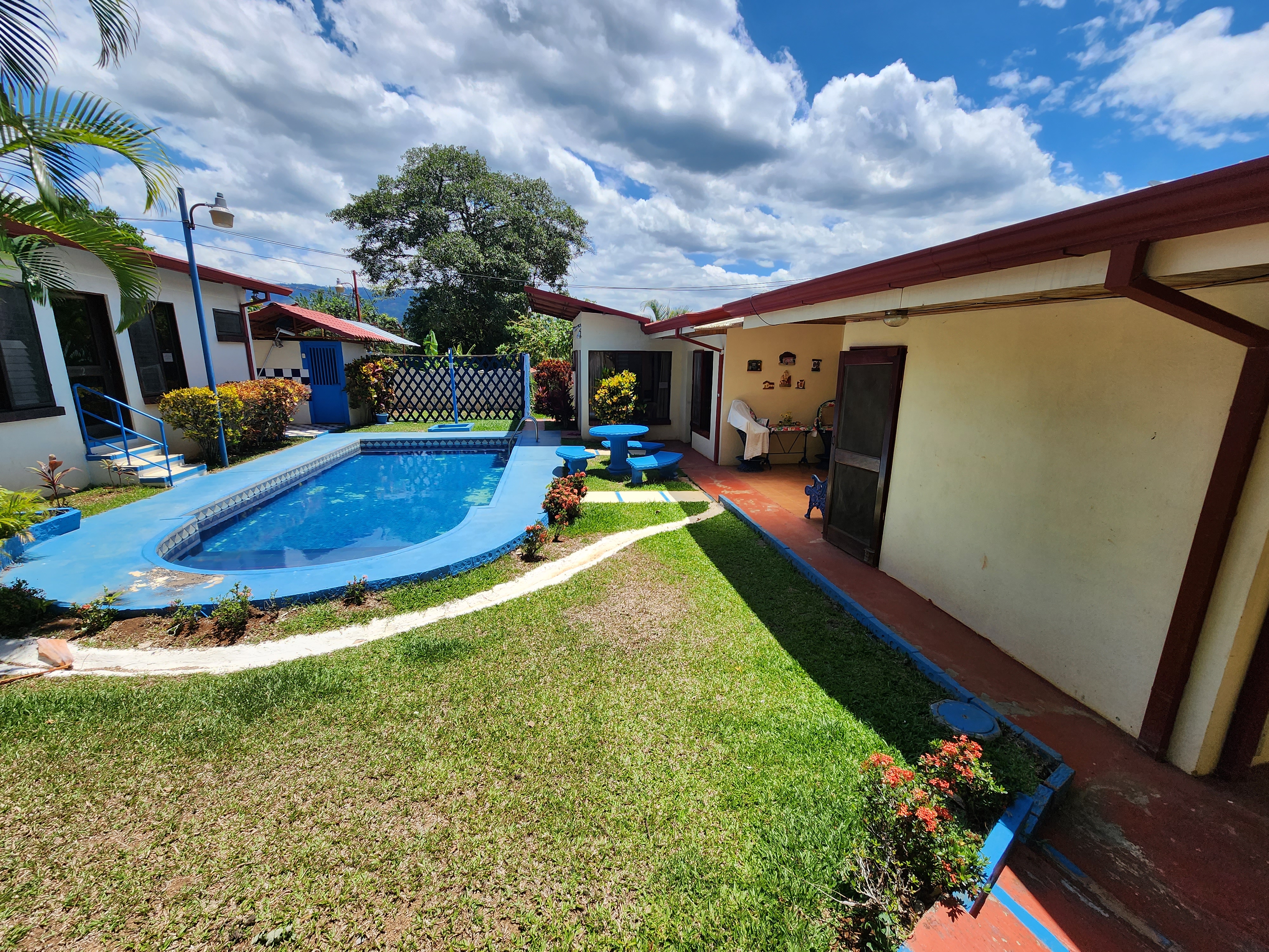 This property is located in an area of high interest. It has a main house with 3 rooms, two of these rooms were divided to be rented separately, although they can easily be reintegrated into the house. The house is in very good general condition, it has a very well preserved wooden ceiling. There is a swimming pool and a car port for 2 vehicles. On the property, 4 small rooms were also built for rent, which are an extra on the property if you are interested in getting some income. It is located 5 minutes from the center of Atenas.