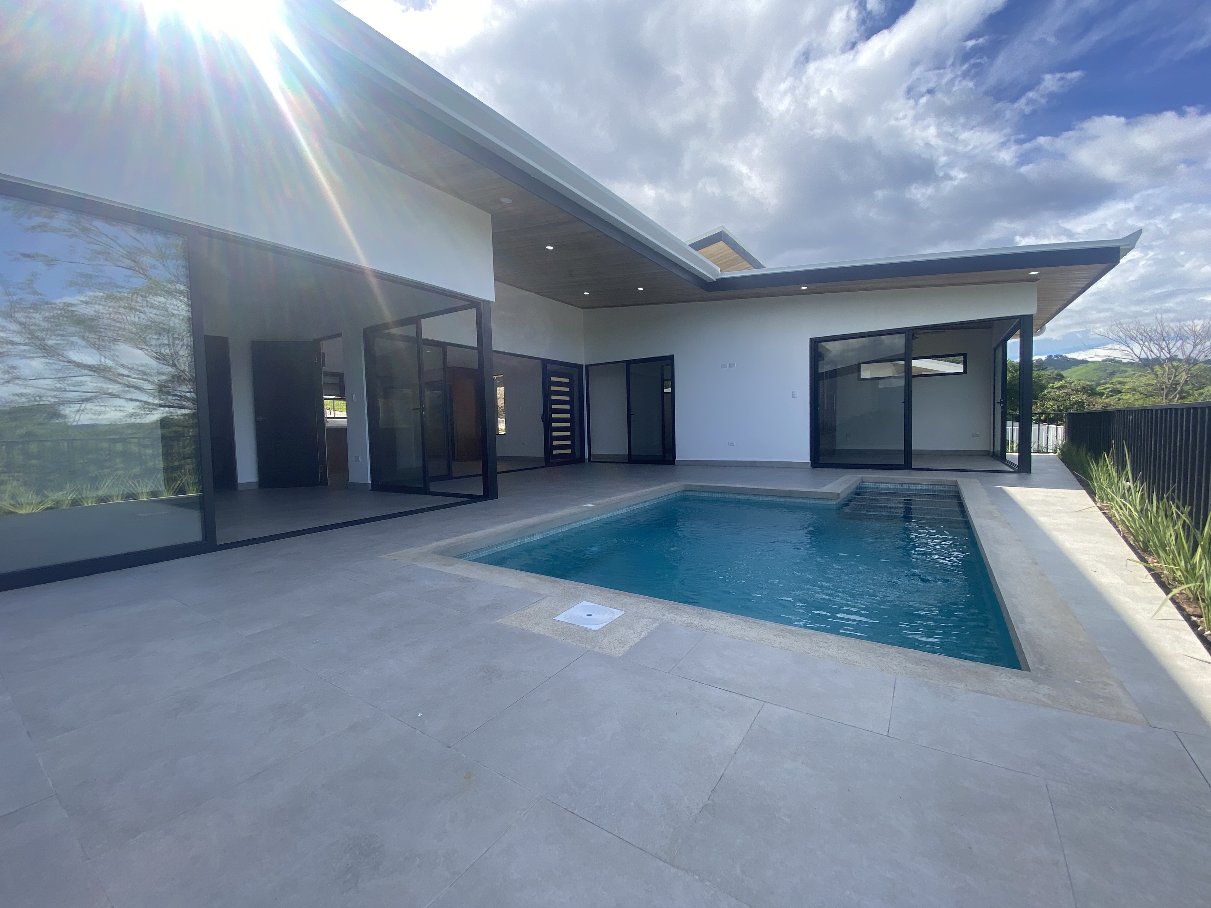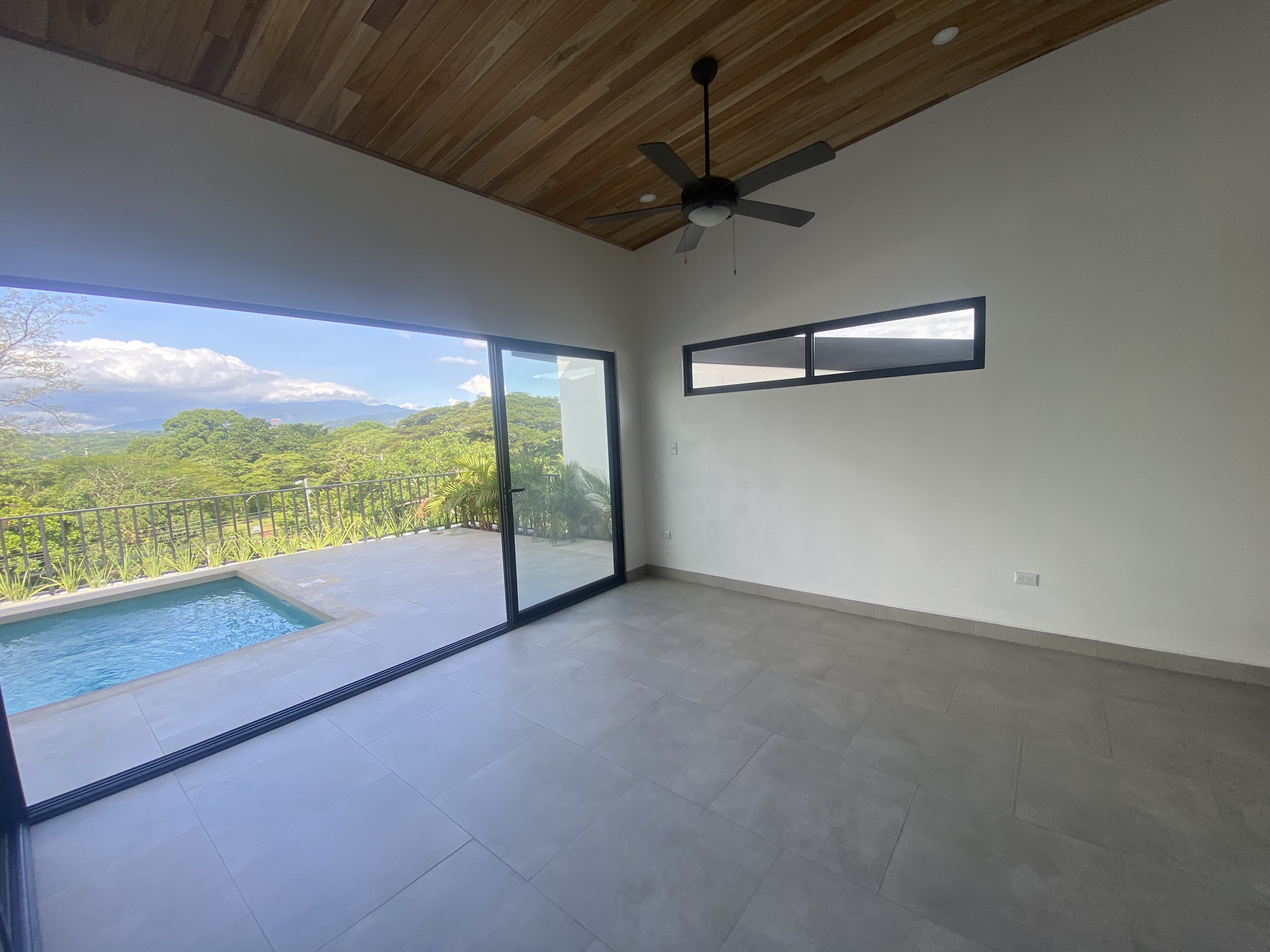 Property Features • 3 bedrooms, 2 bathrooms • Spacious master suite with walk-in closet • Gourmet kitchen with Guanacaste cabinetry and quartz countertops • Open living and dining area • Large bay windows with mountain views • Terrace with pool and pool room • Covered carport and laundry area • Partially fenced for privacy