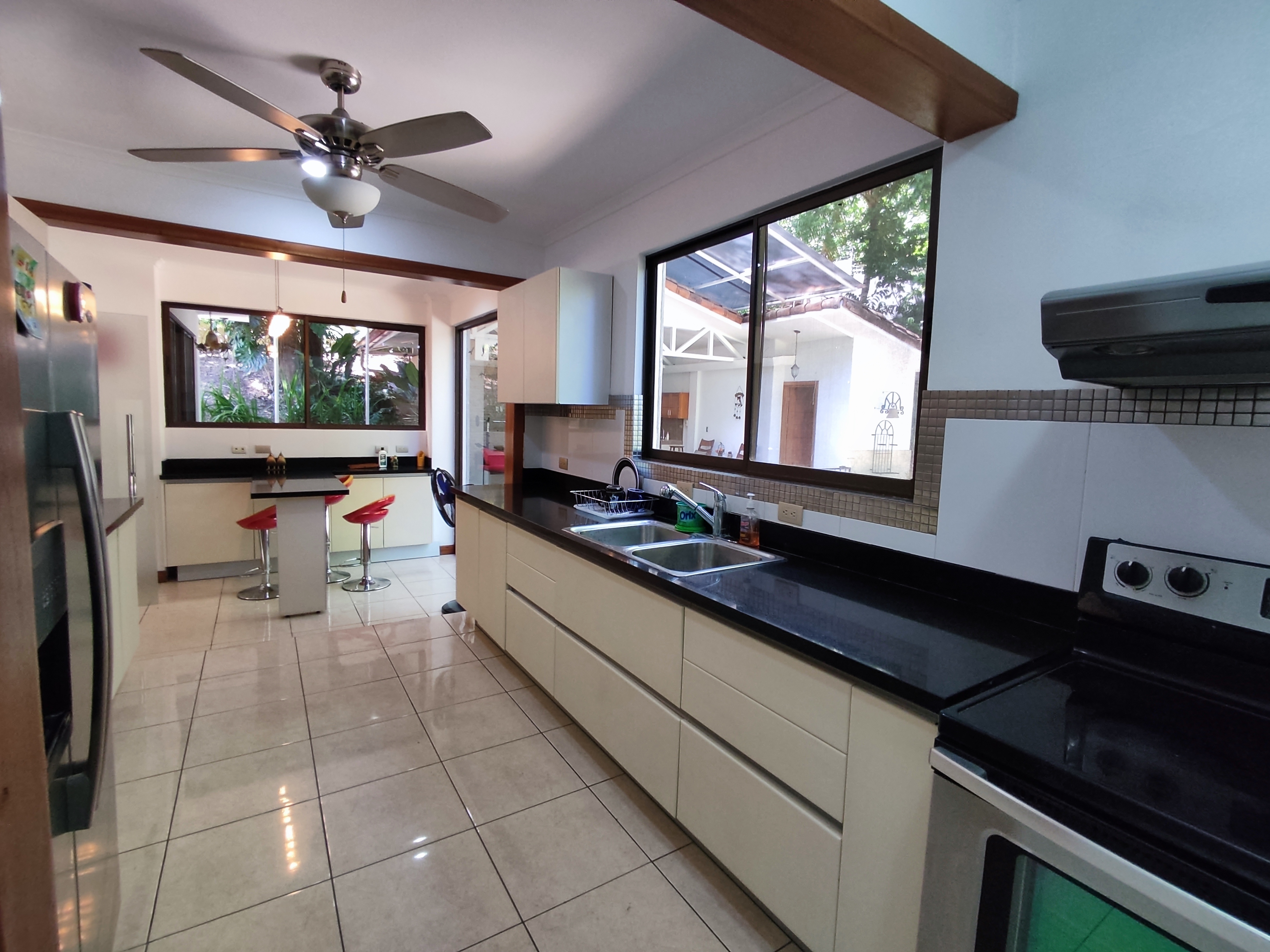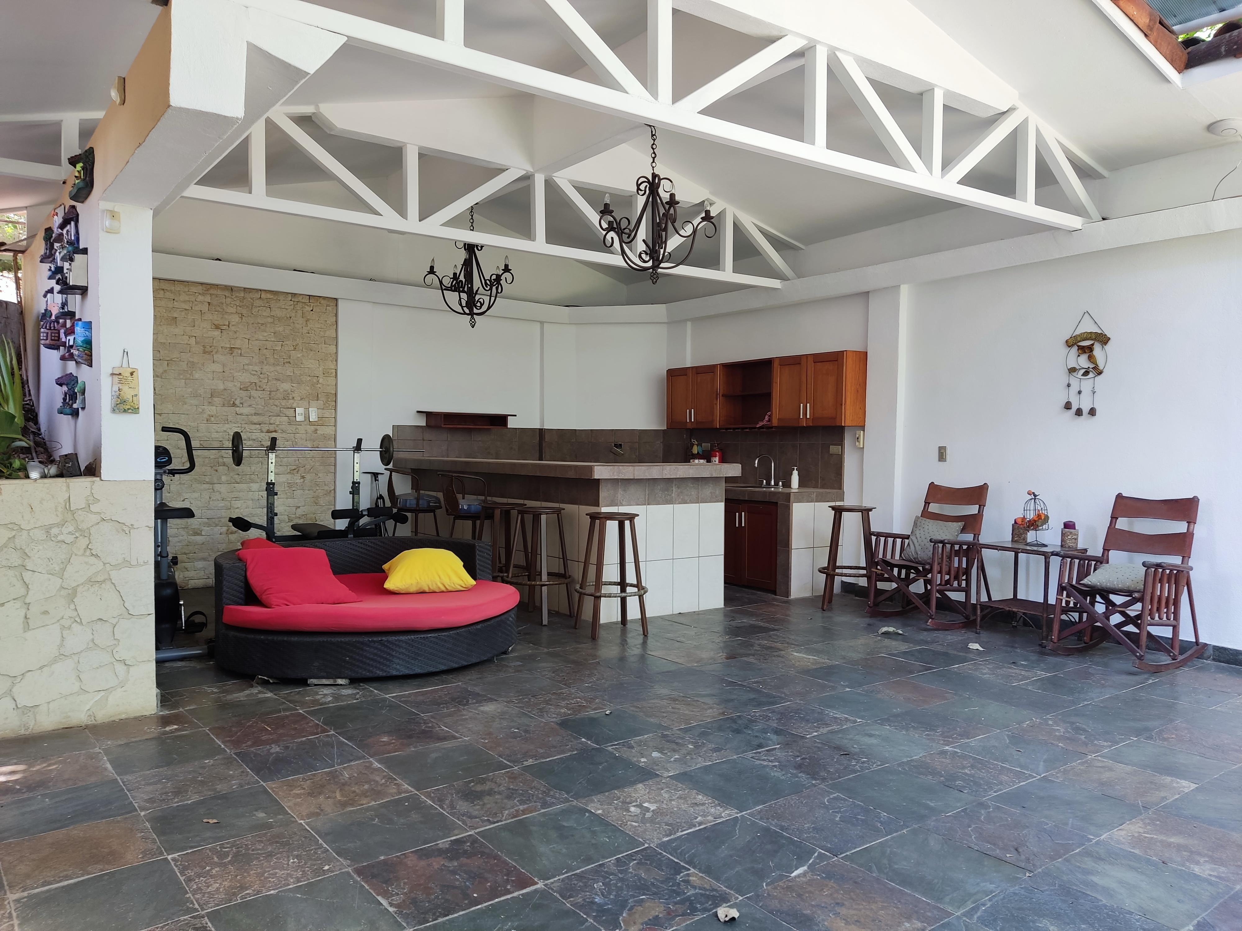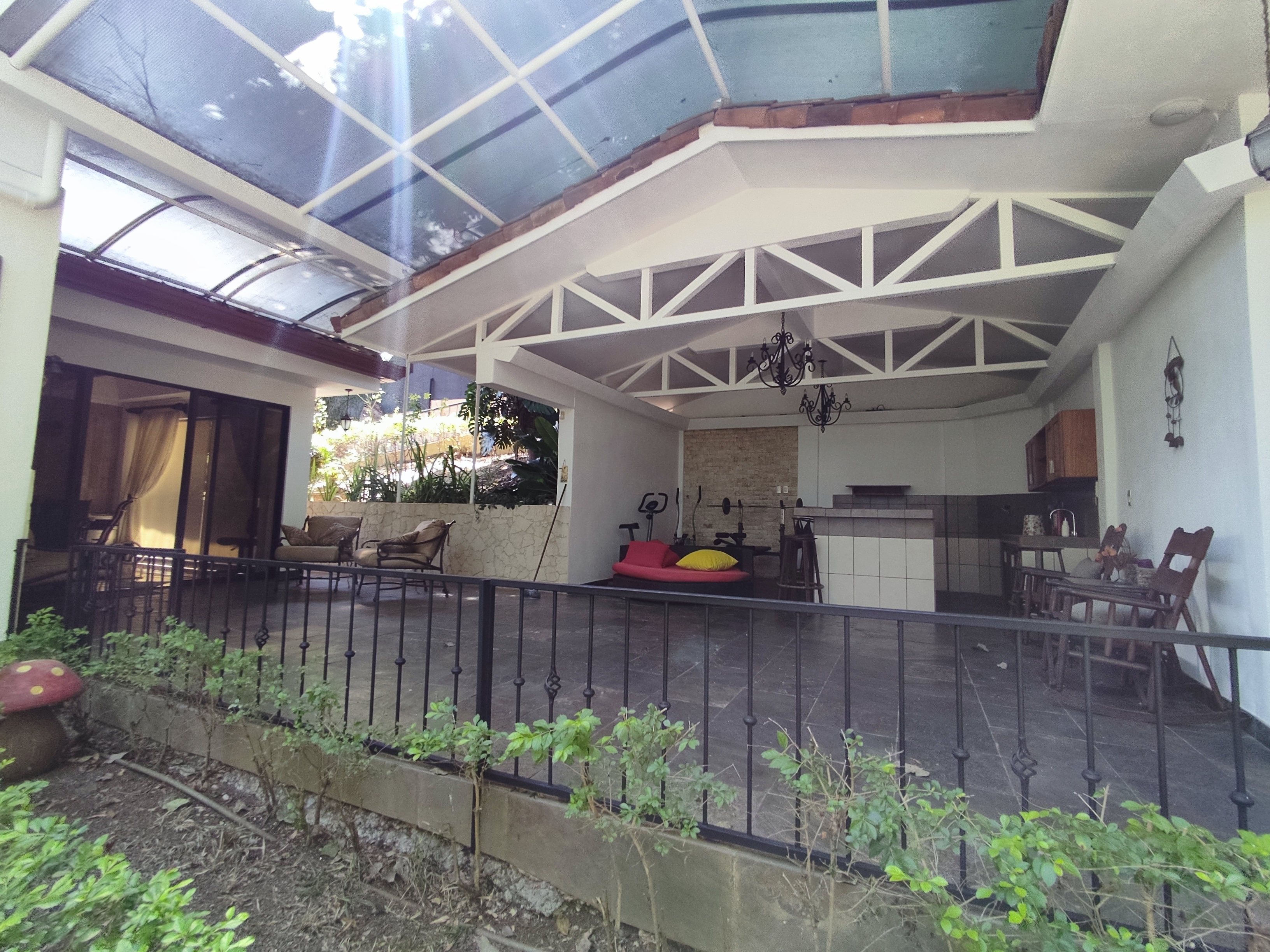 The semi-underground level offers a bodega, laundry, and a small apartment ideal for rental income or staff accommodation. The outdoor area features a swimming pool, mature fruit trees, and a covered living space perfect for enjoying Costa Rica’s climate.