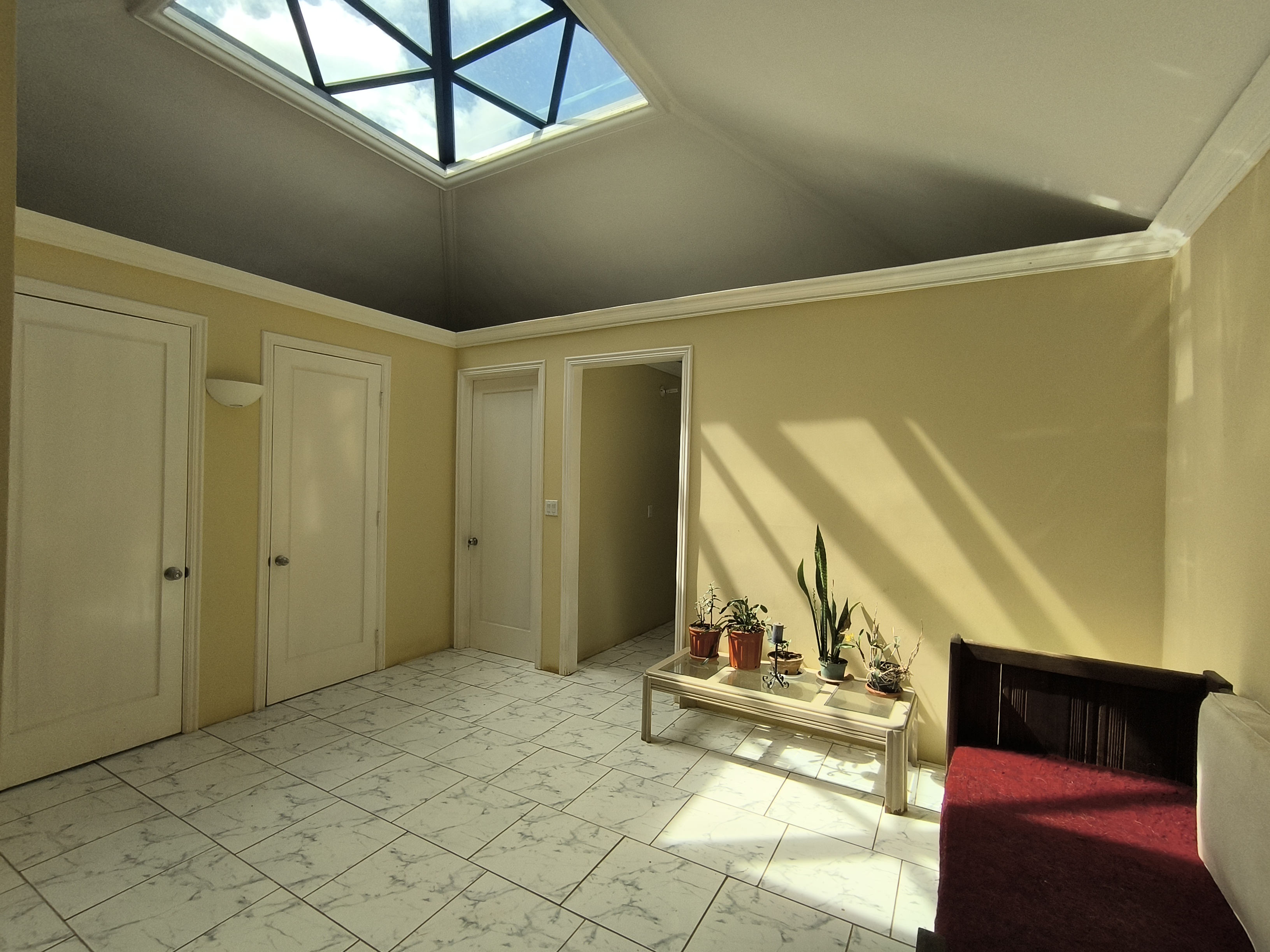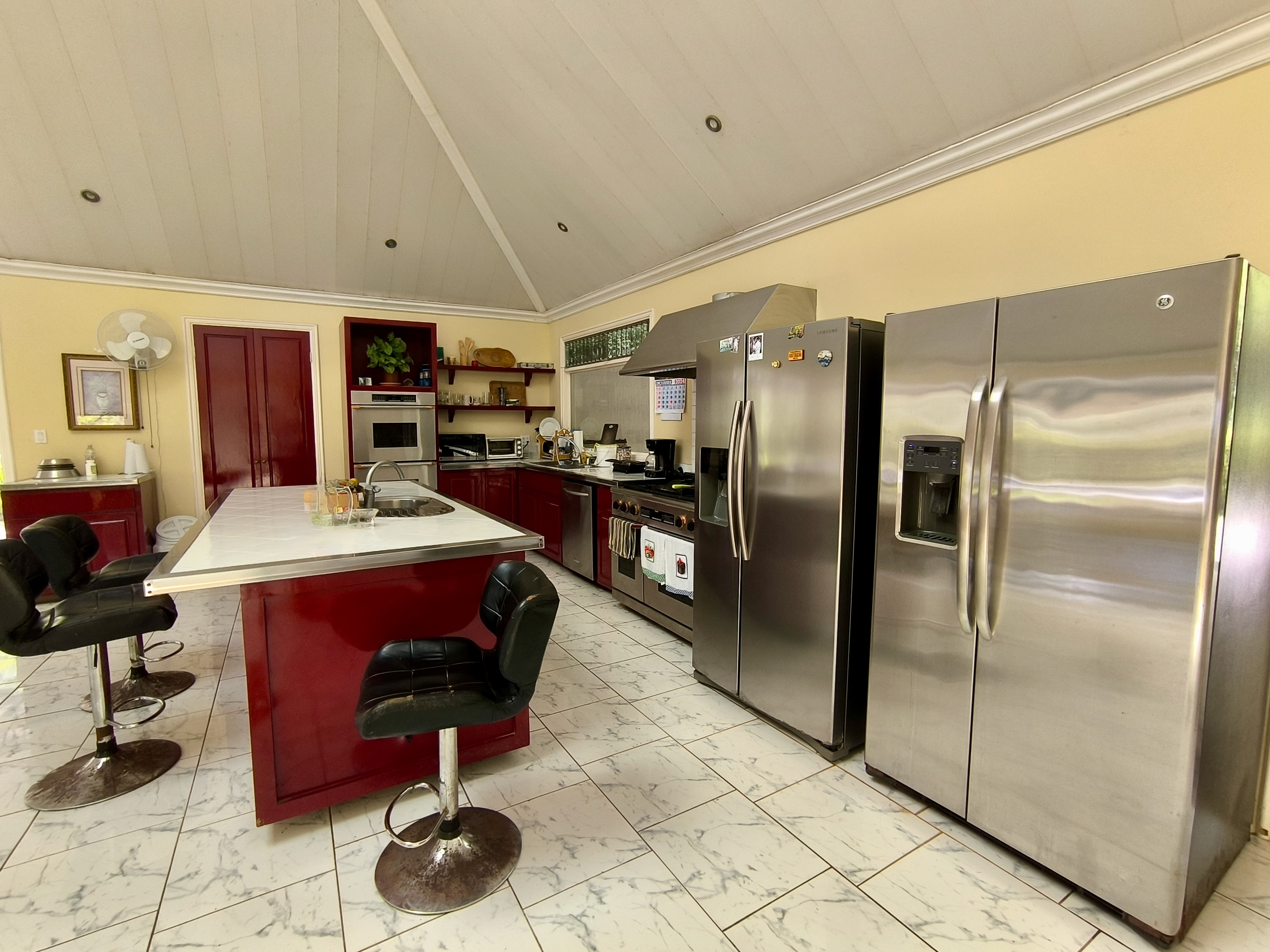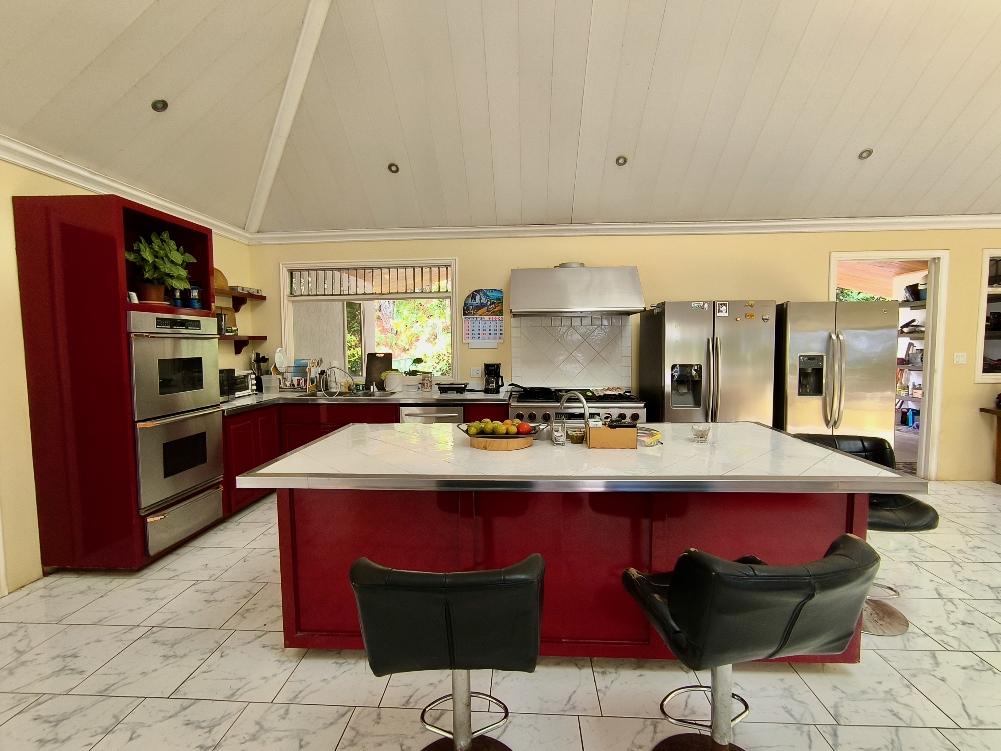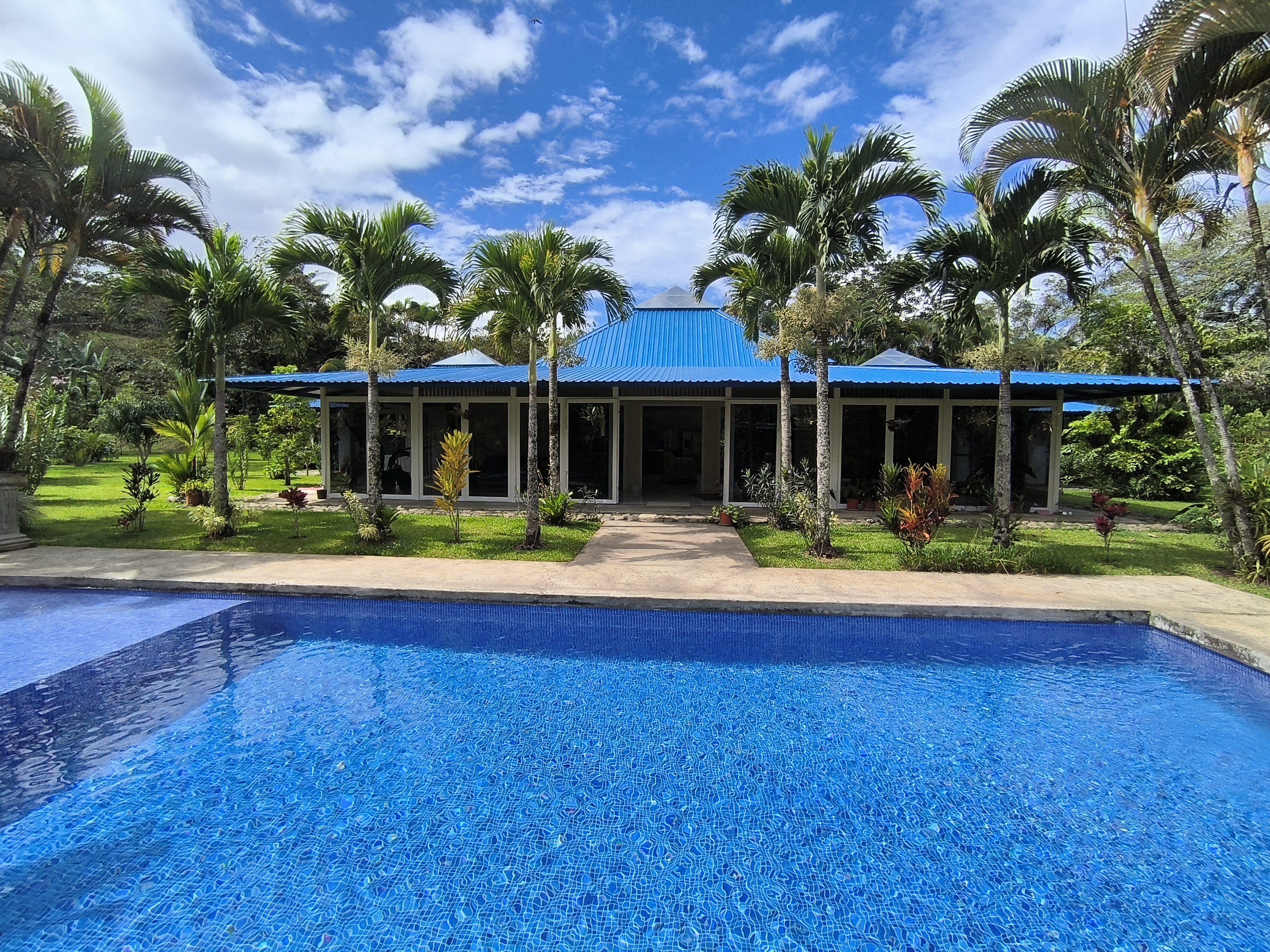 Property Features: • Single-story house in a private community of six homes • Master bedroom with en-suite bathroom and walk-in closet • Two guest bedrooms sharing one bathroom • Spacious open-plan living area with skylight and large sliding doors • Expansive terrace with views of the swimming pool and jacuzzi • 11m x 5m swimming pool and jacuzzi • 7,000 m² landscaped garden with fruit trees and tropical plants • Covered carport for three vehicles • Option to purchase adjacent property